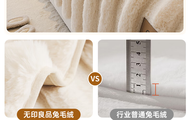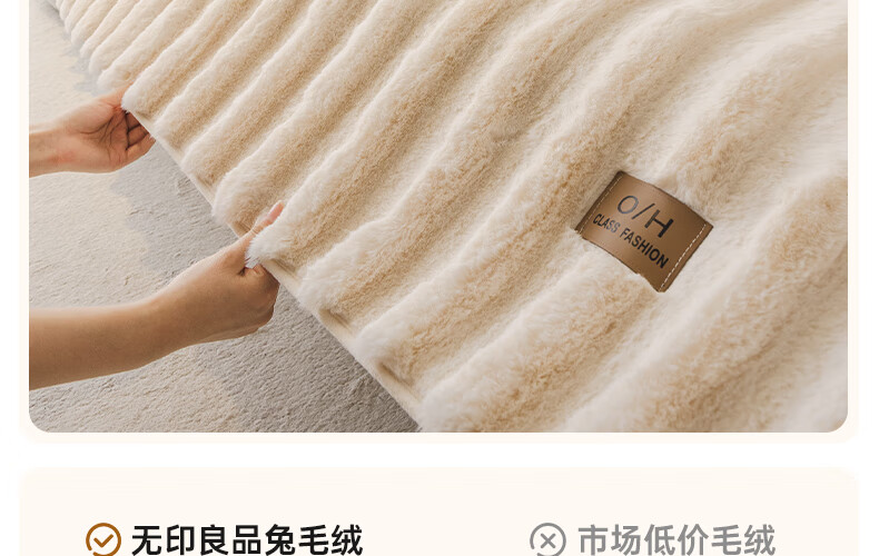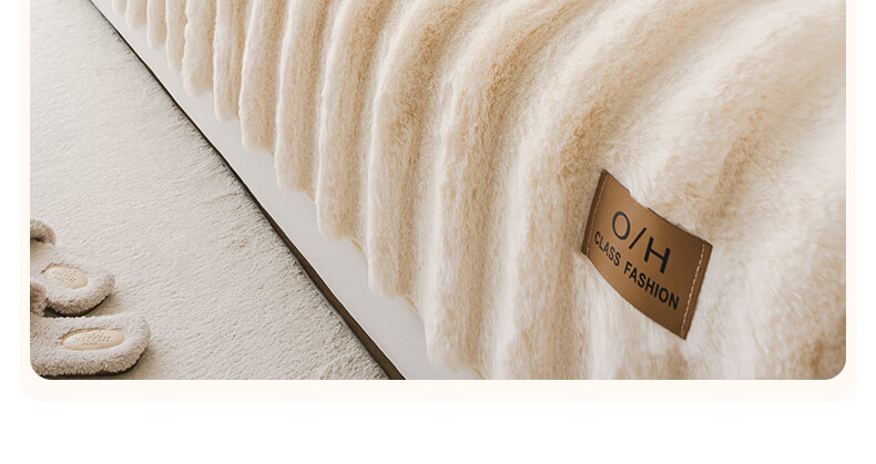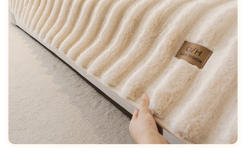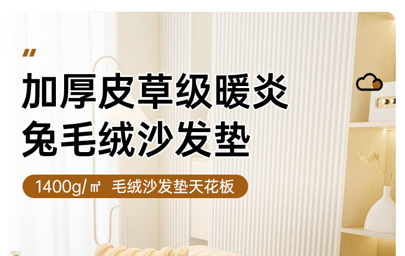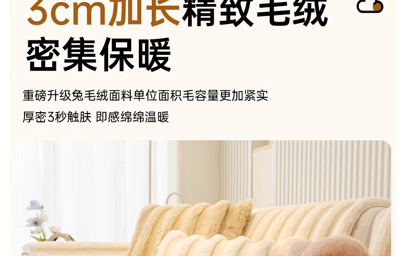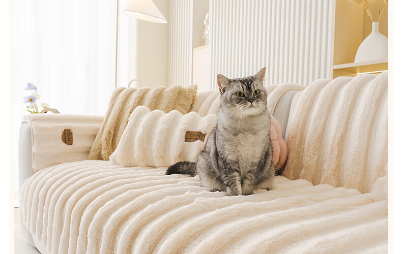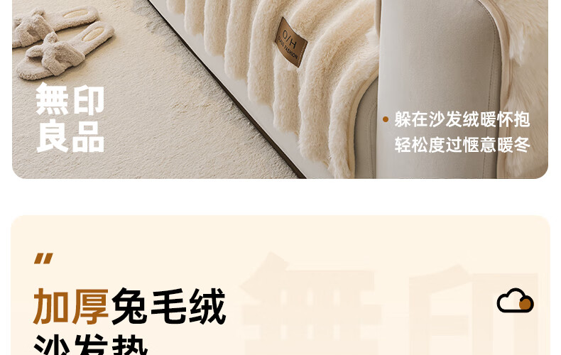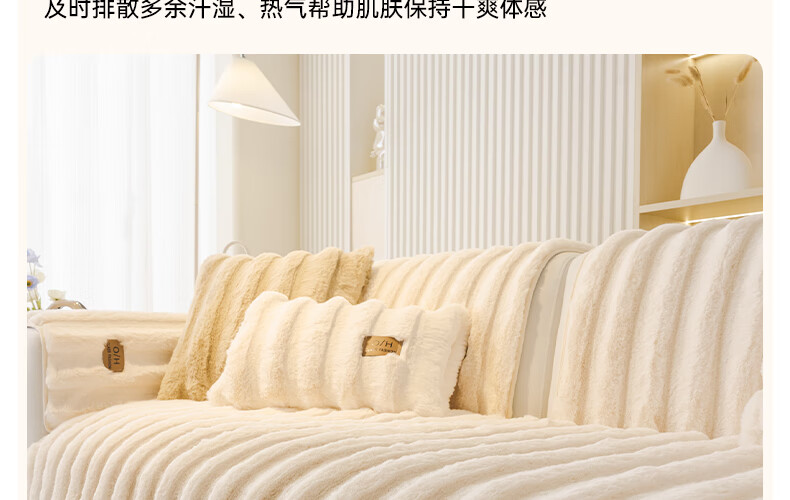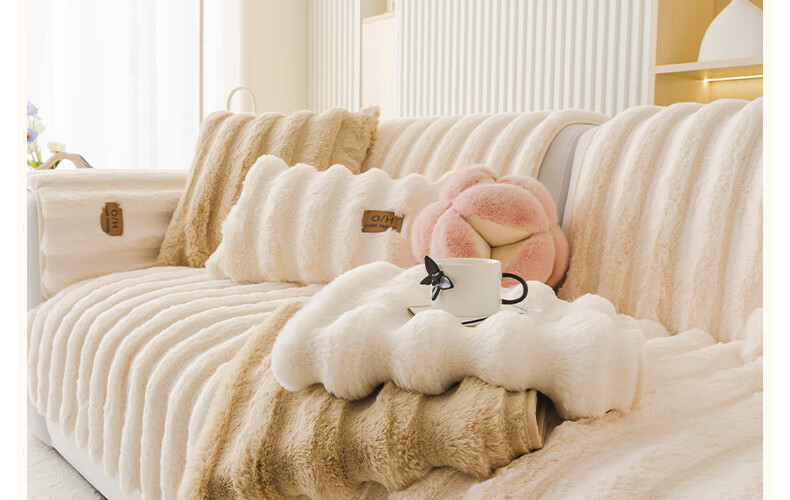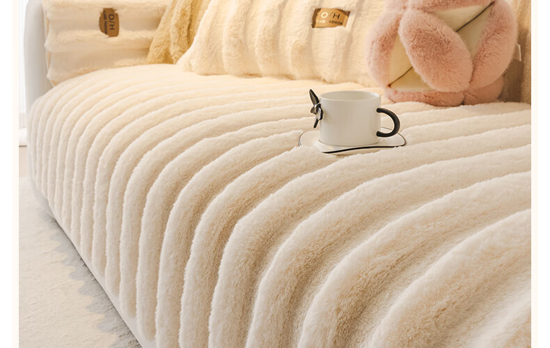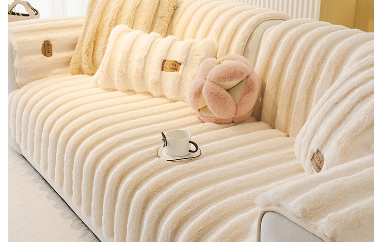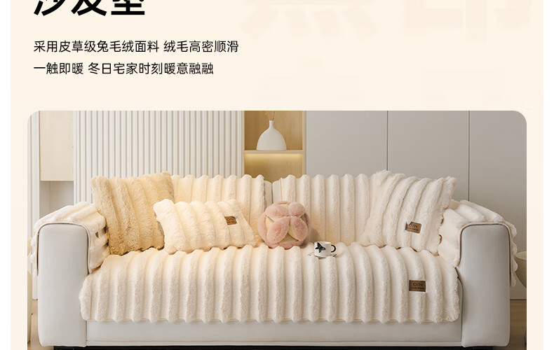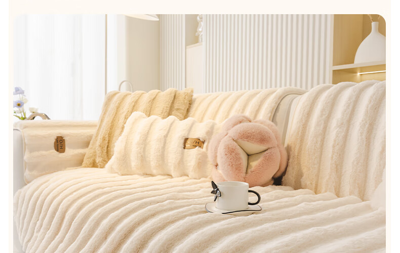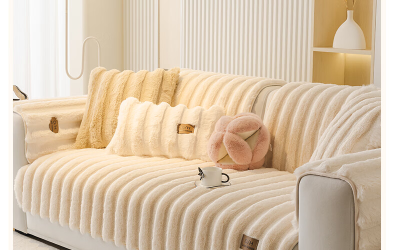 无印良品沙发垫冬季加厚不掉毛奶油风兔毛绒坐垫防滑座垫皮沙发专用垫 竖条兔-米白【加厚兔兔绒 软糯亲肤 温暖冬日】 90*240cm (大三人位/四人位 )