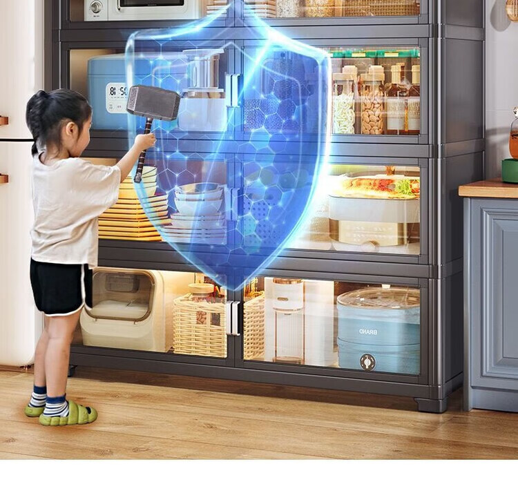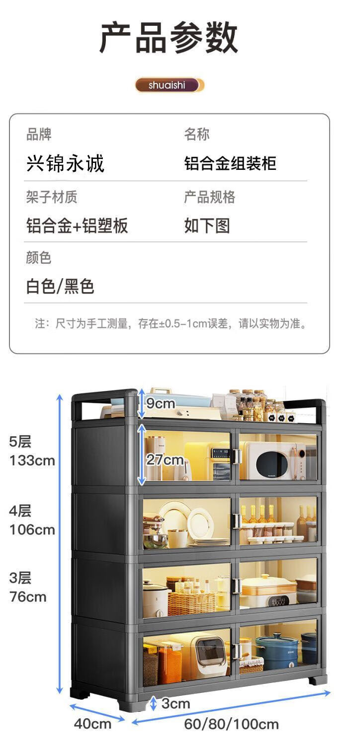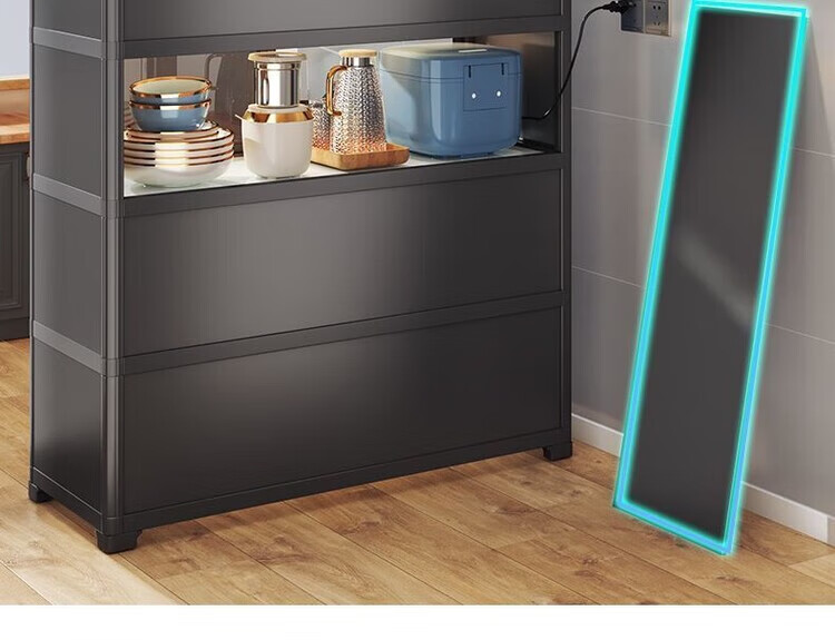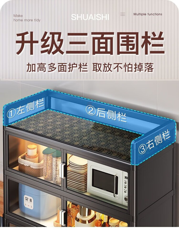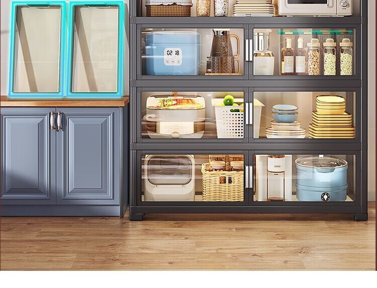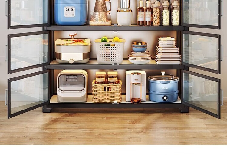 豪利邦厨房钢制餐边柜家用落地大容量多层置物架加厚防尘收纳储物柜碗柜 【枪灰色】加厚碳钢 42深 三层【长60*高80cm】加厚防尘