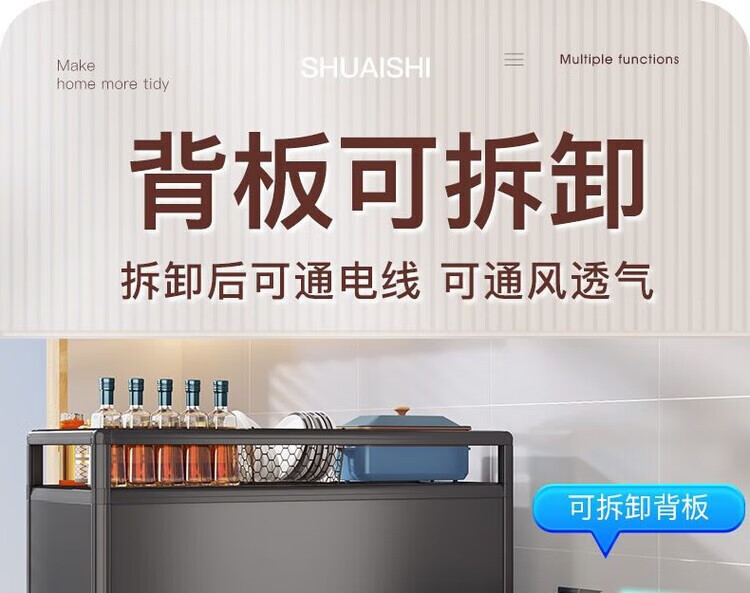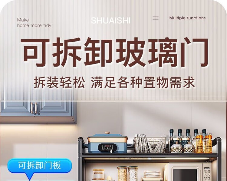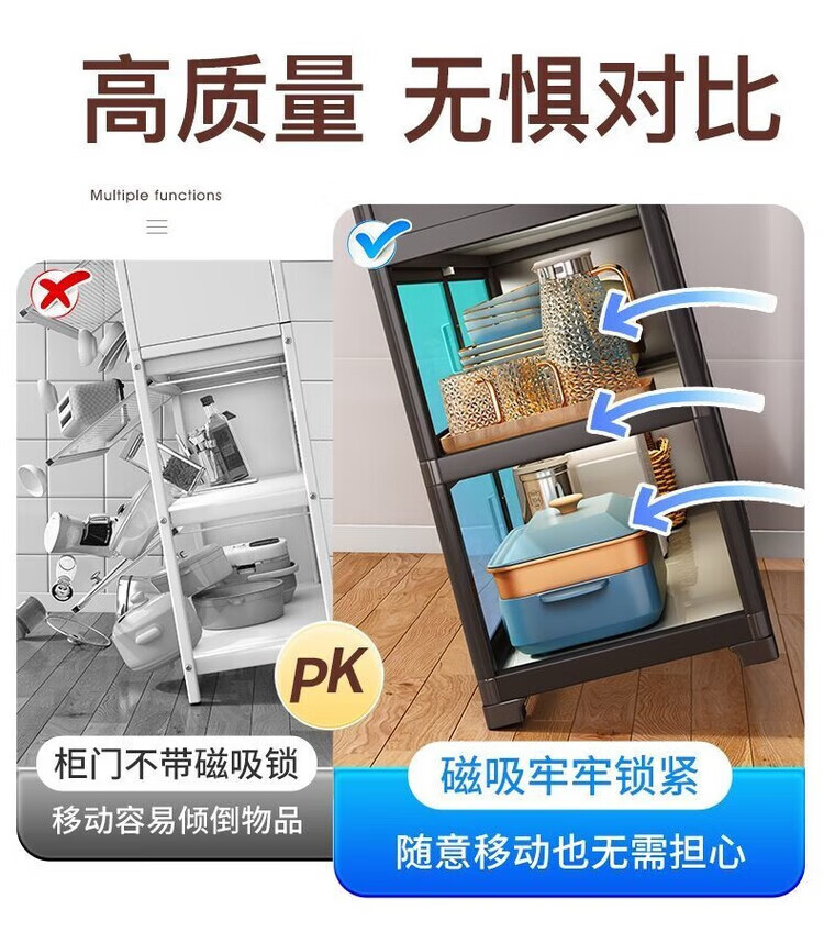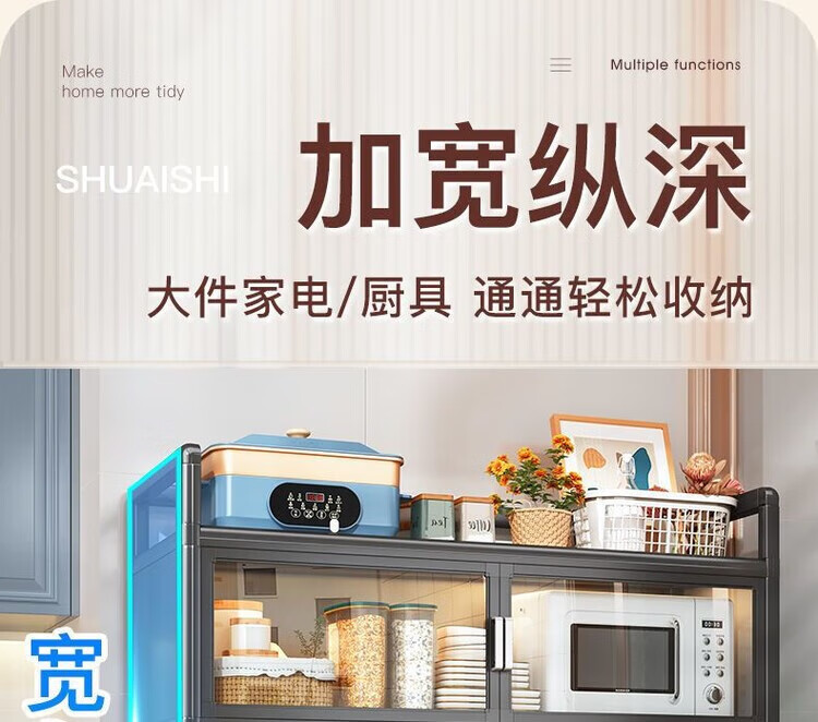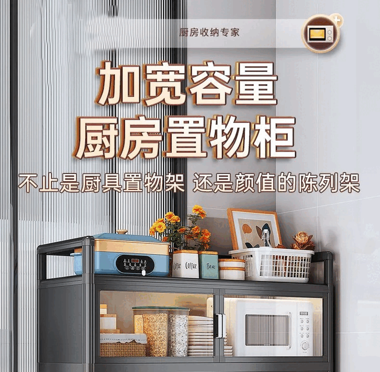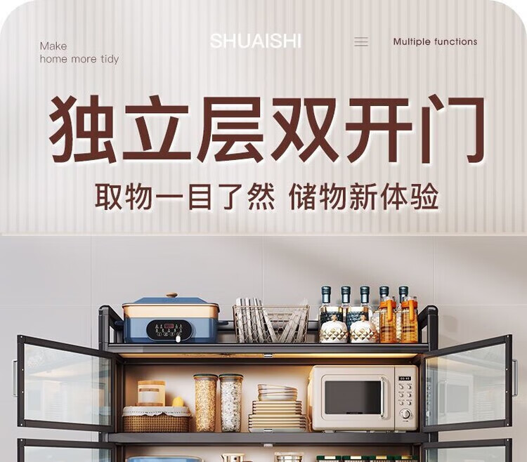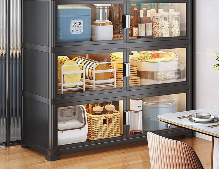 豪利邦厨房钢制餐边柜家用落地大容量多层置物架加厚防尘收纳储物柜碗柜 【枪灰色】加厚碳钢 42深 三层【长60*高80cm】加厚防尘