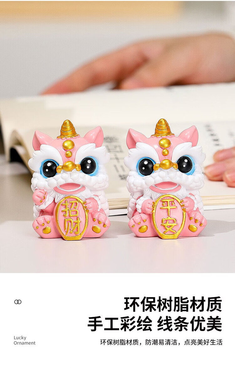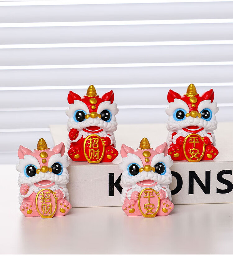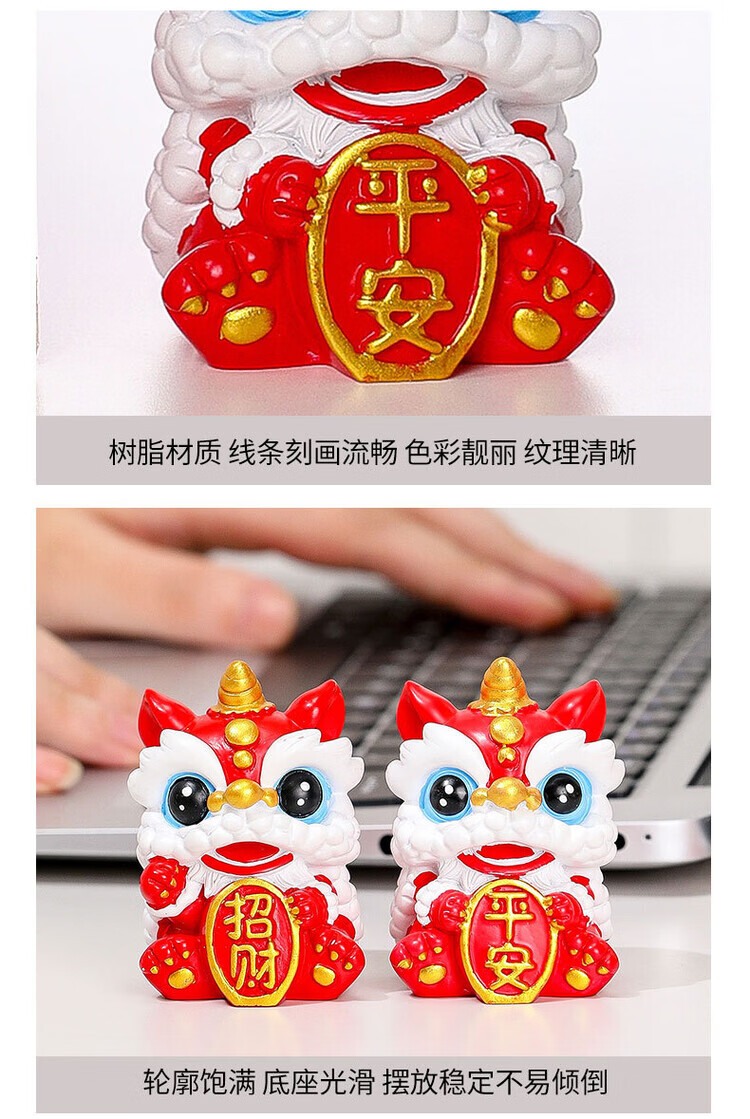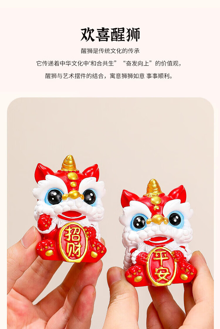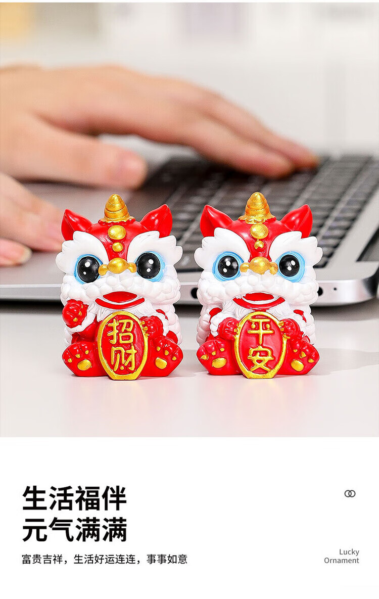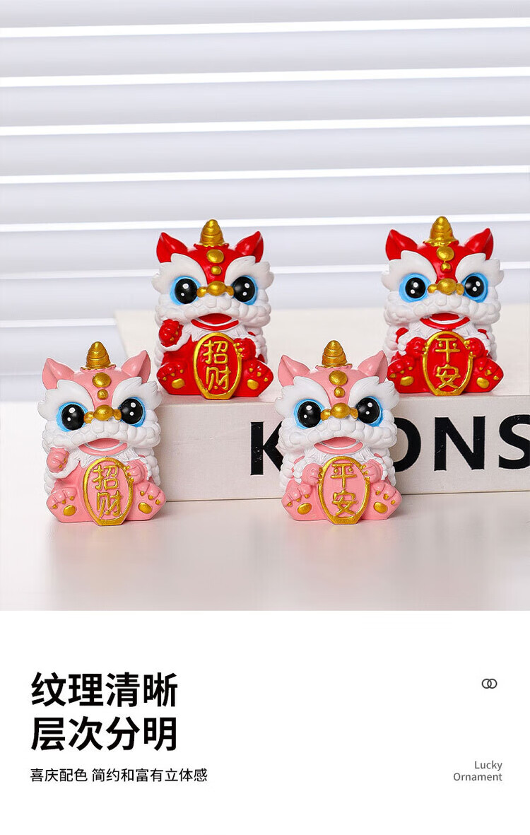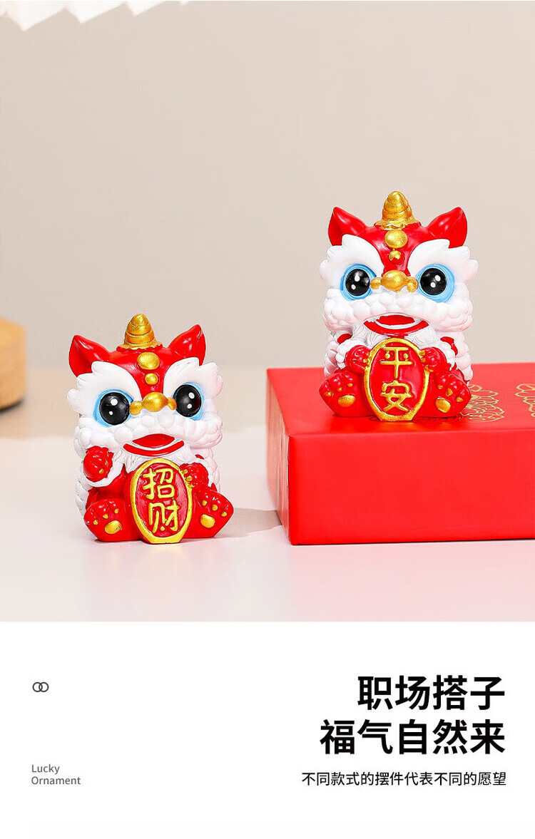 OYKTN国潮欢喜醒狮家居小摆件创意卡通公仔办公室工位桌面装饰商务礼品 欢喜醒狮-发财【红色】一个