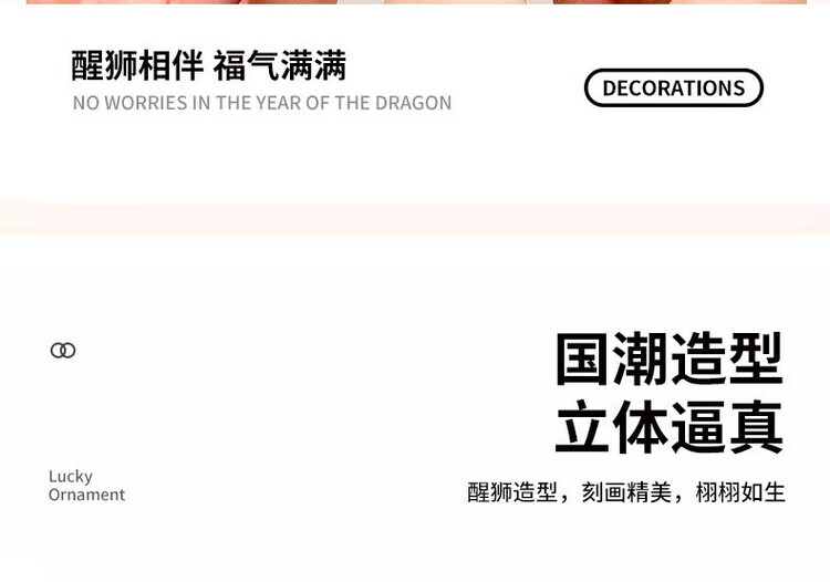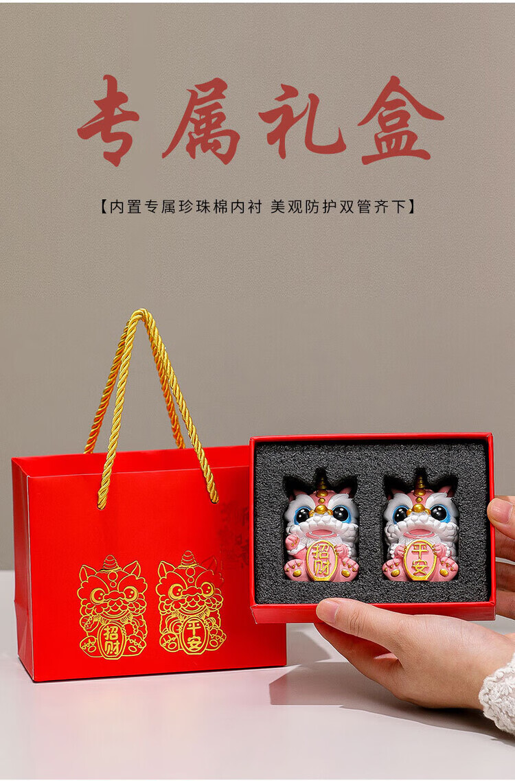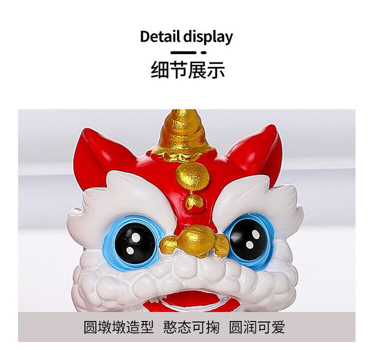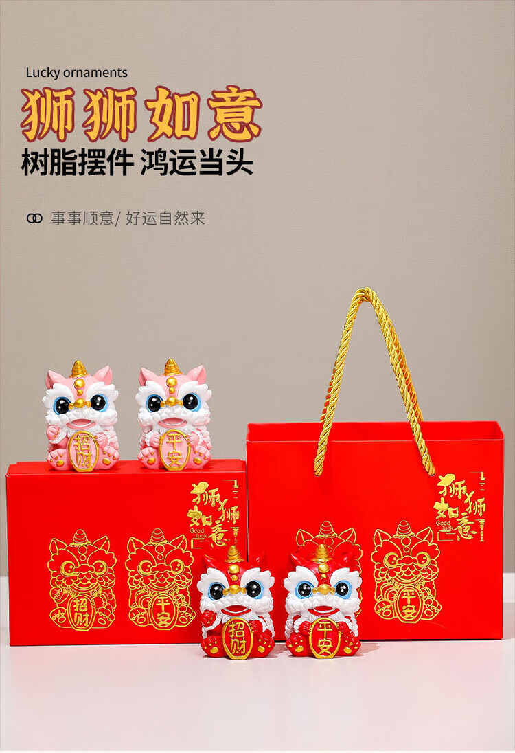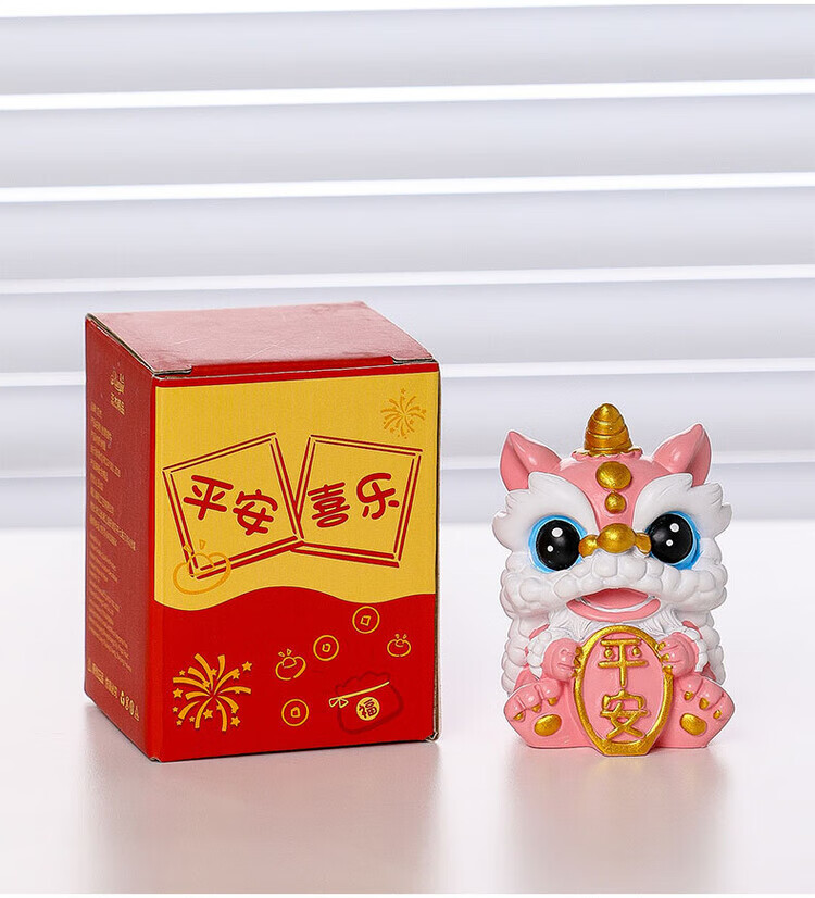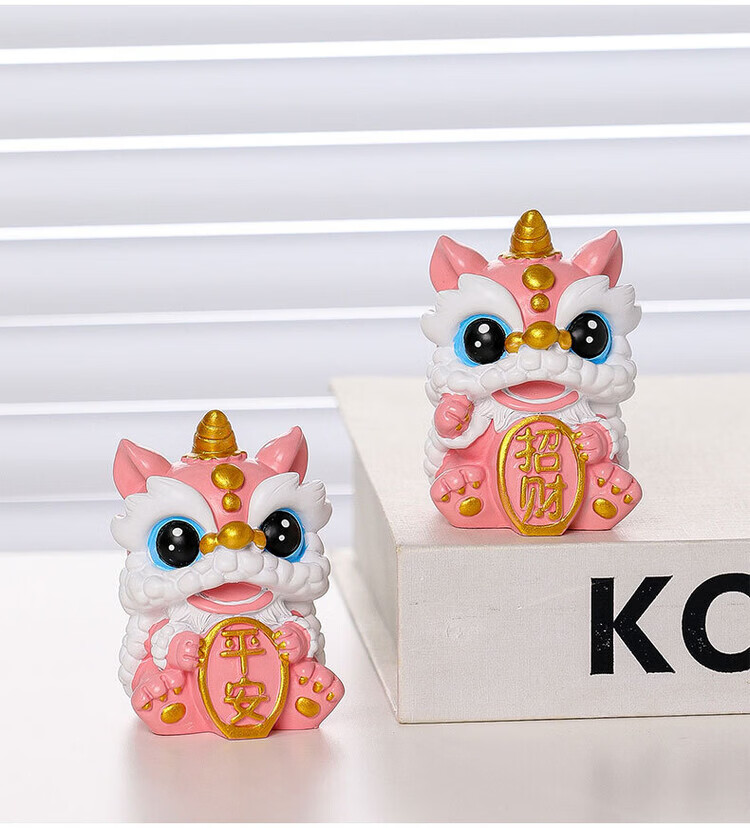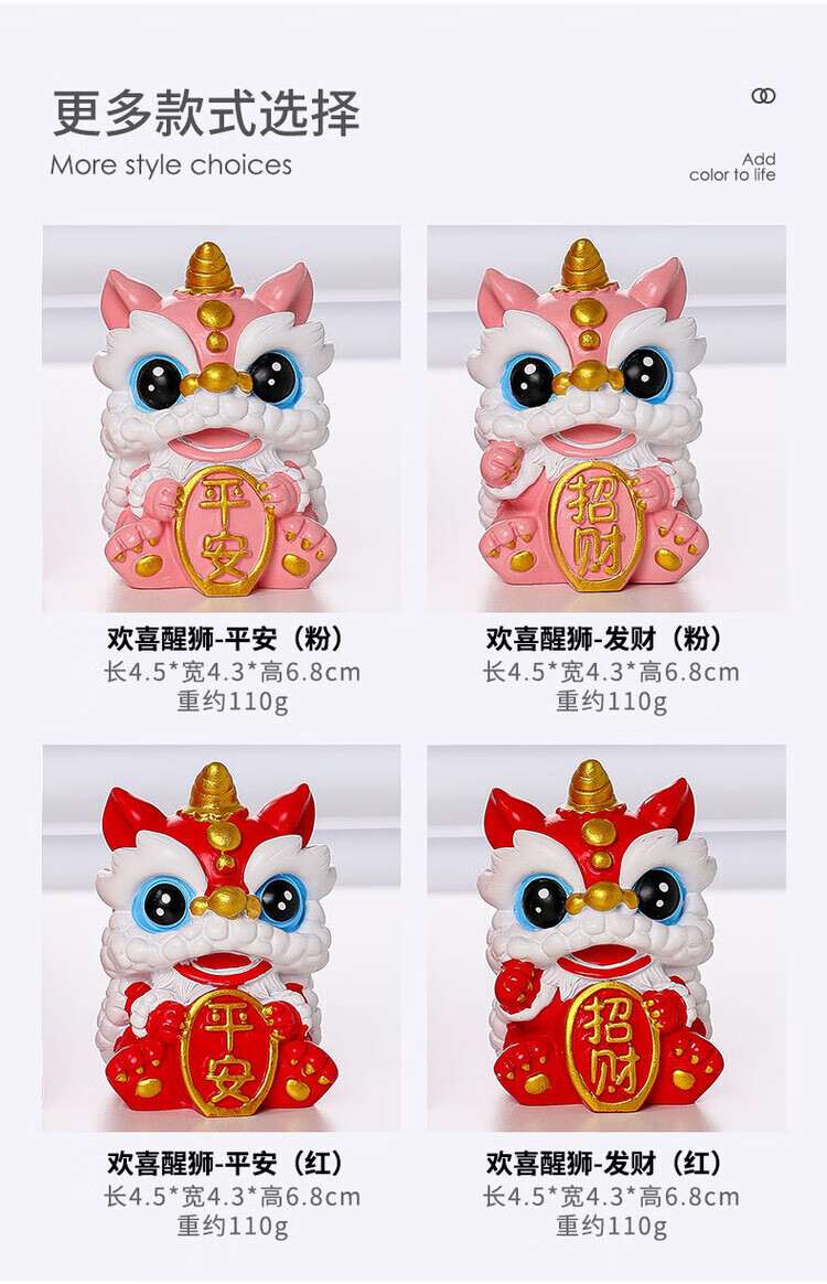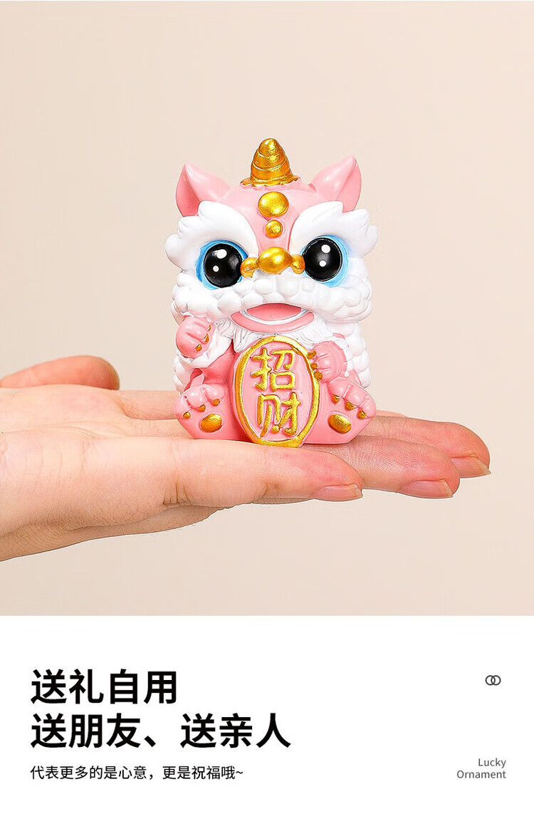 OYKTN国潮欢喜醒狮家居小摆件创意卡通公仔办公室工位桌面装饰商务礼品 欢喜醒狮-发财【红色】一个