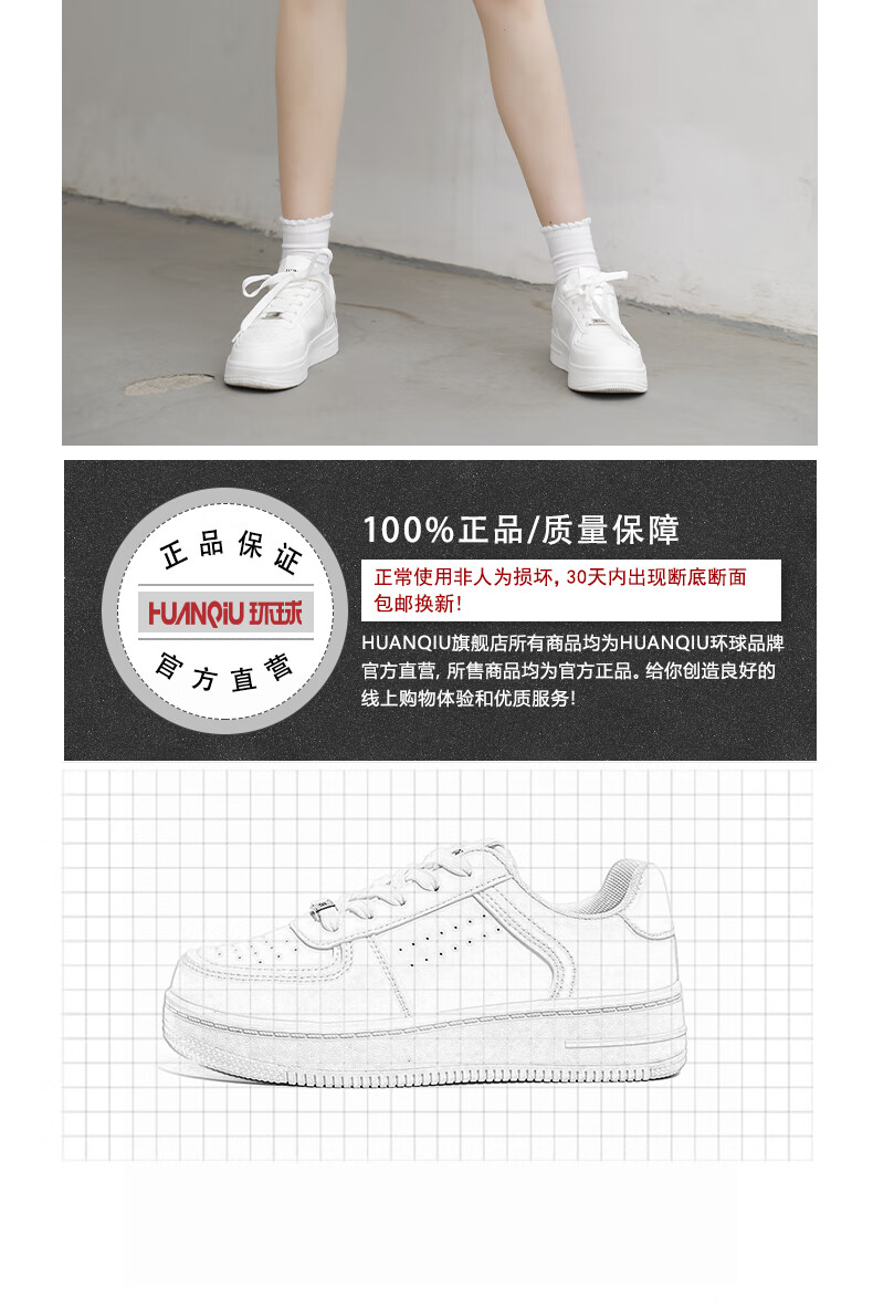 环球女鞋板鞋小白鞋子女厚底春秋季新款空军一号鞋子白色休闲运动鞋女 白色 90%买家选择 40 【标准码】公主请下单