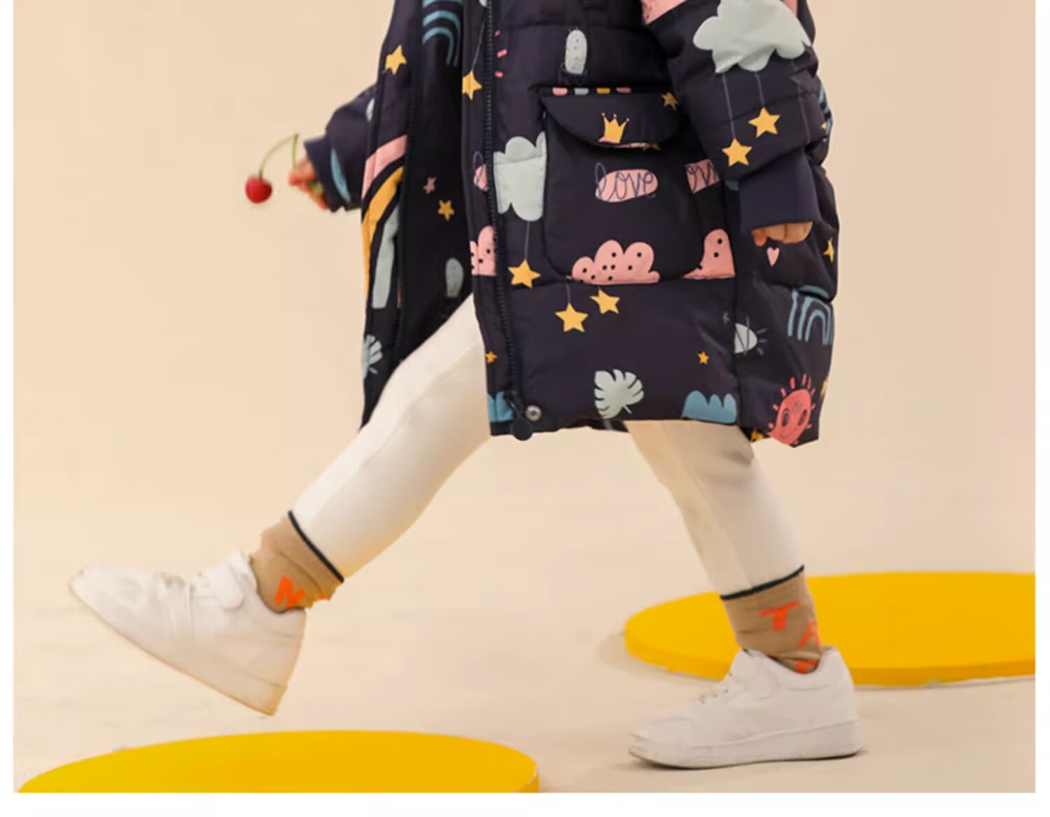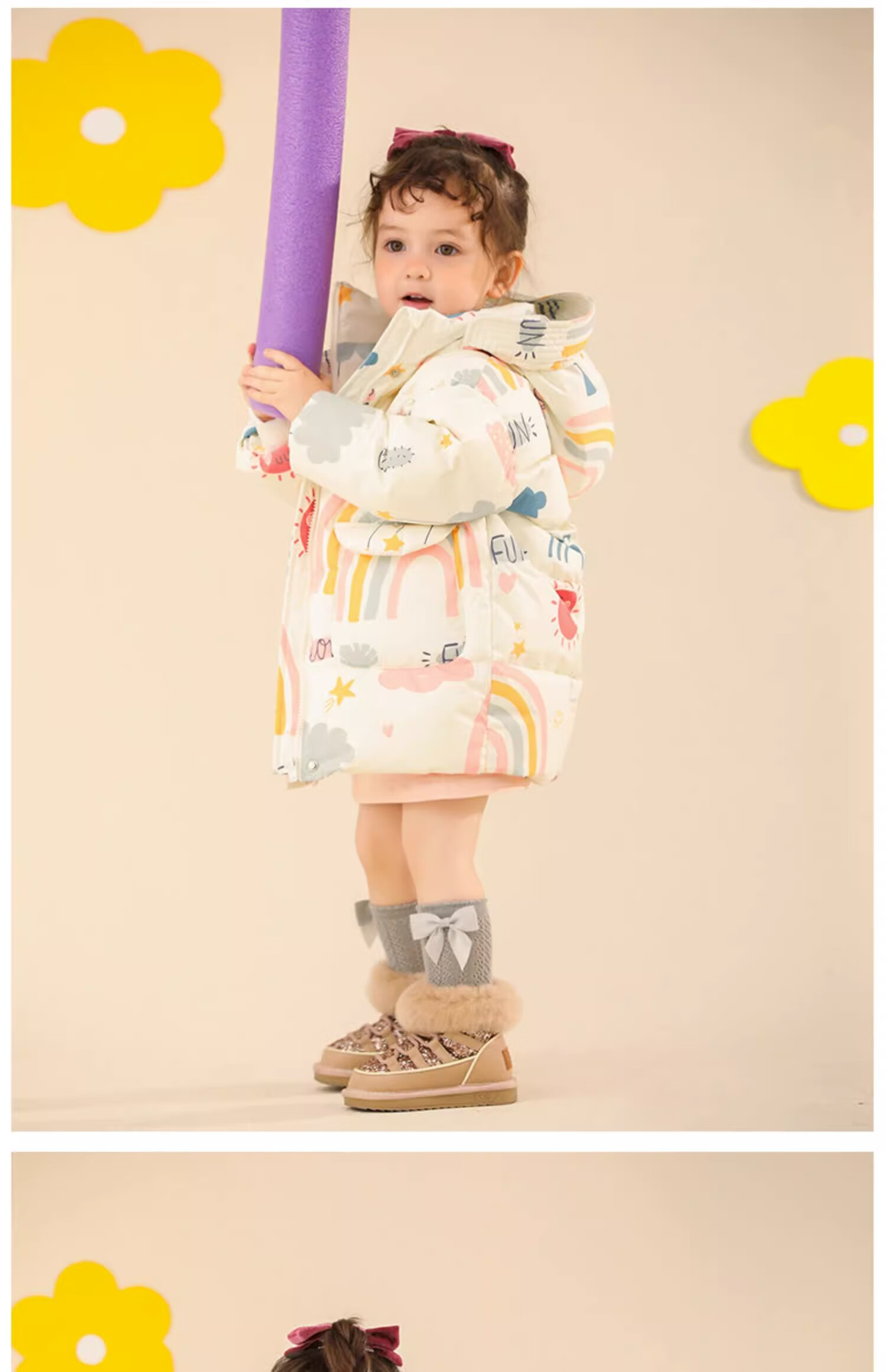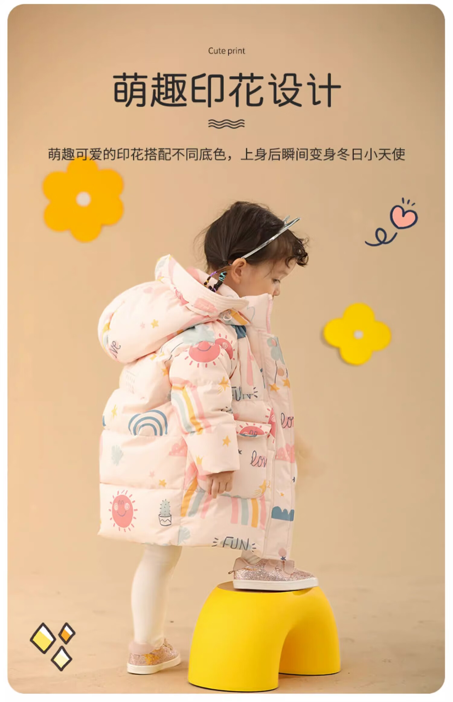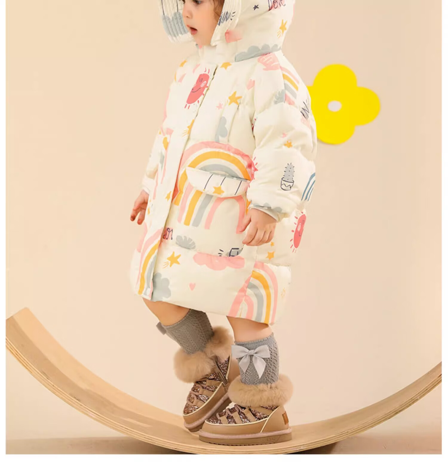 康博女童羽绒服中长款2024新款洋气韩版加厚冬季儿童女孩宝宝保暖外套 米白色 130
