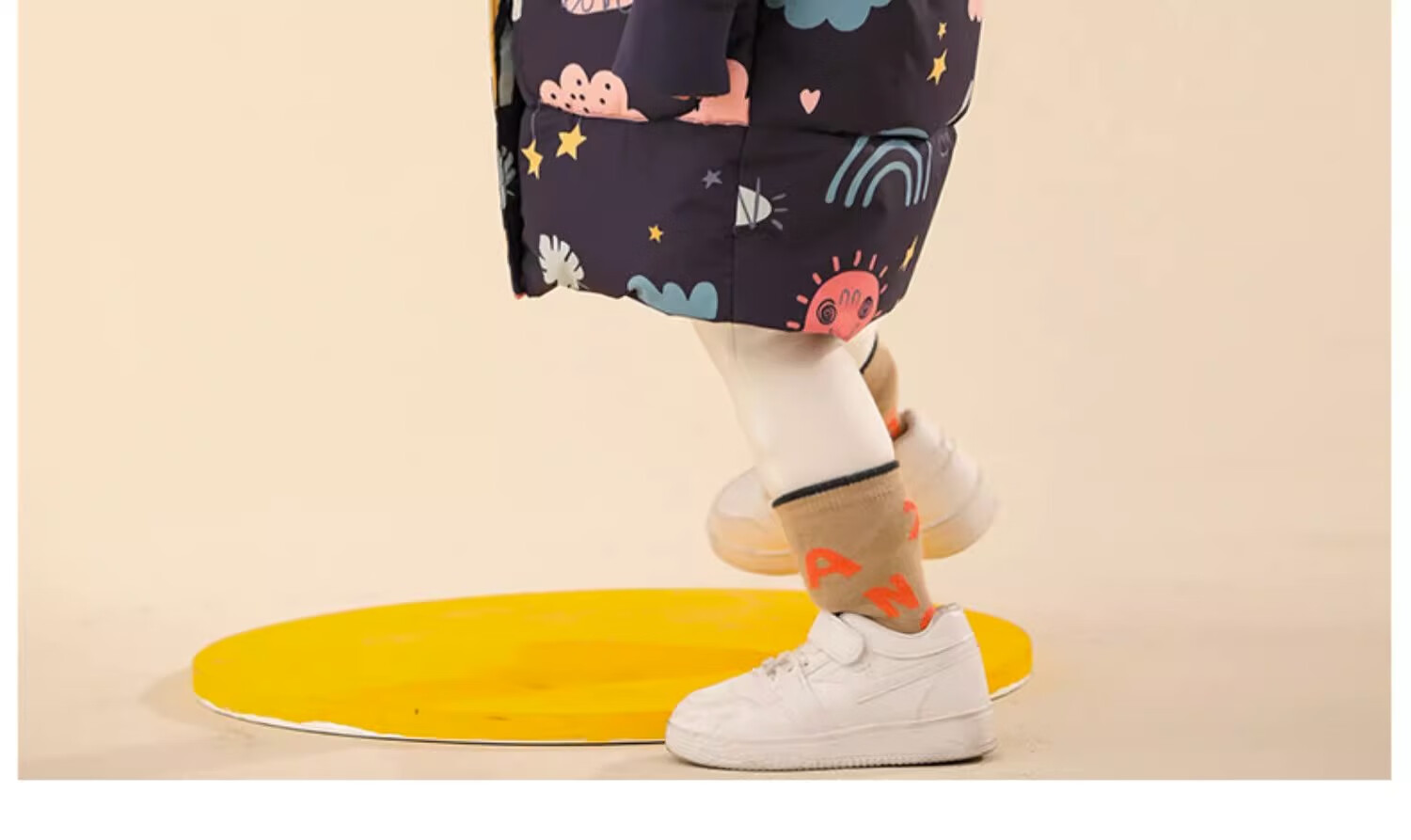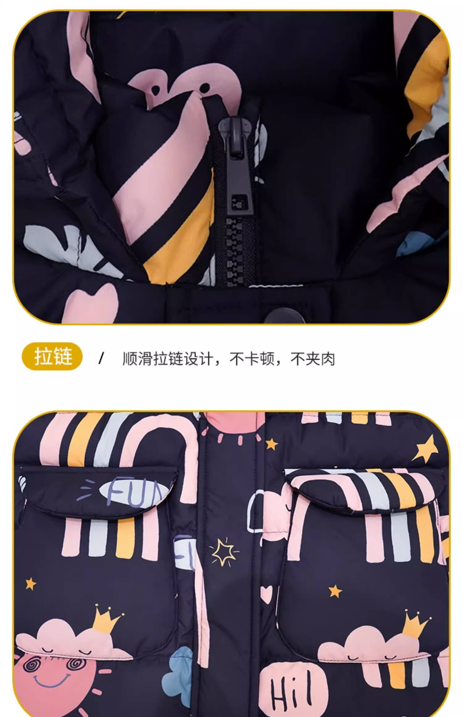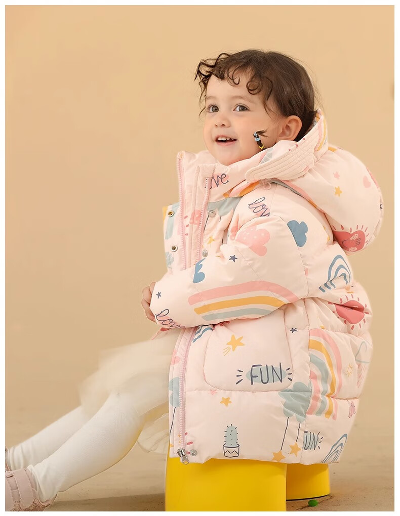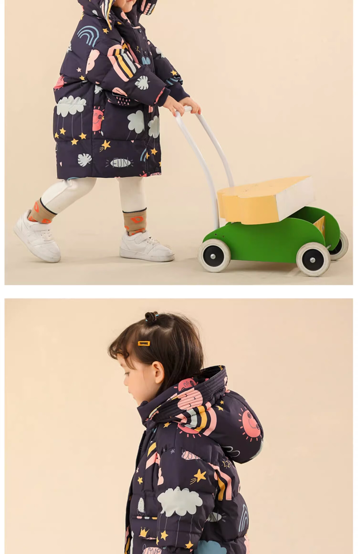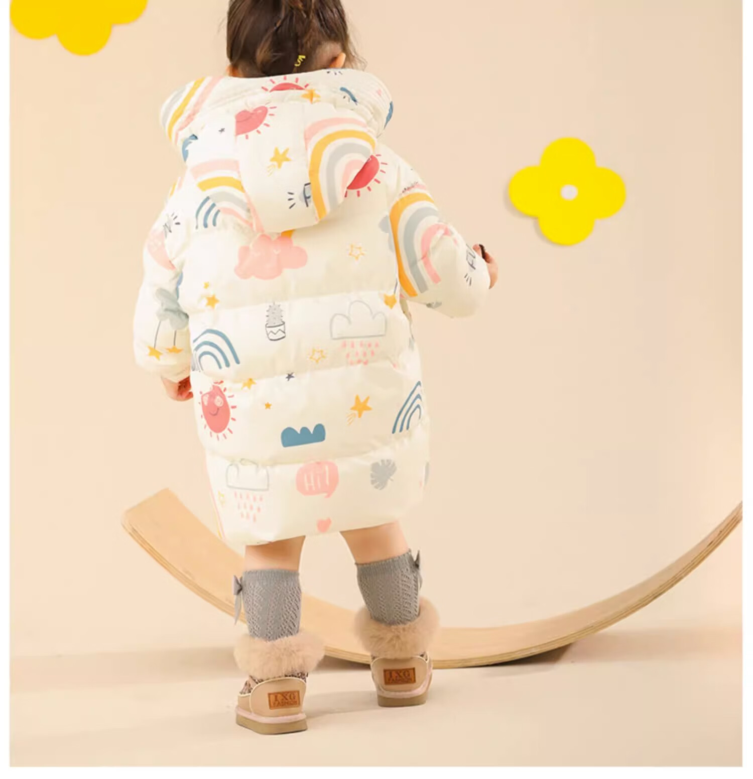 康博女童羽绒服中长款2024新款洋气韩版加厚冬季儿童女孩宝宝保暖外套 米白色 130