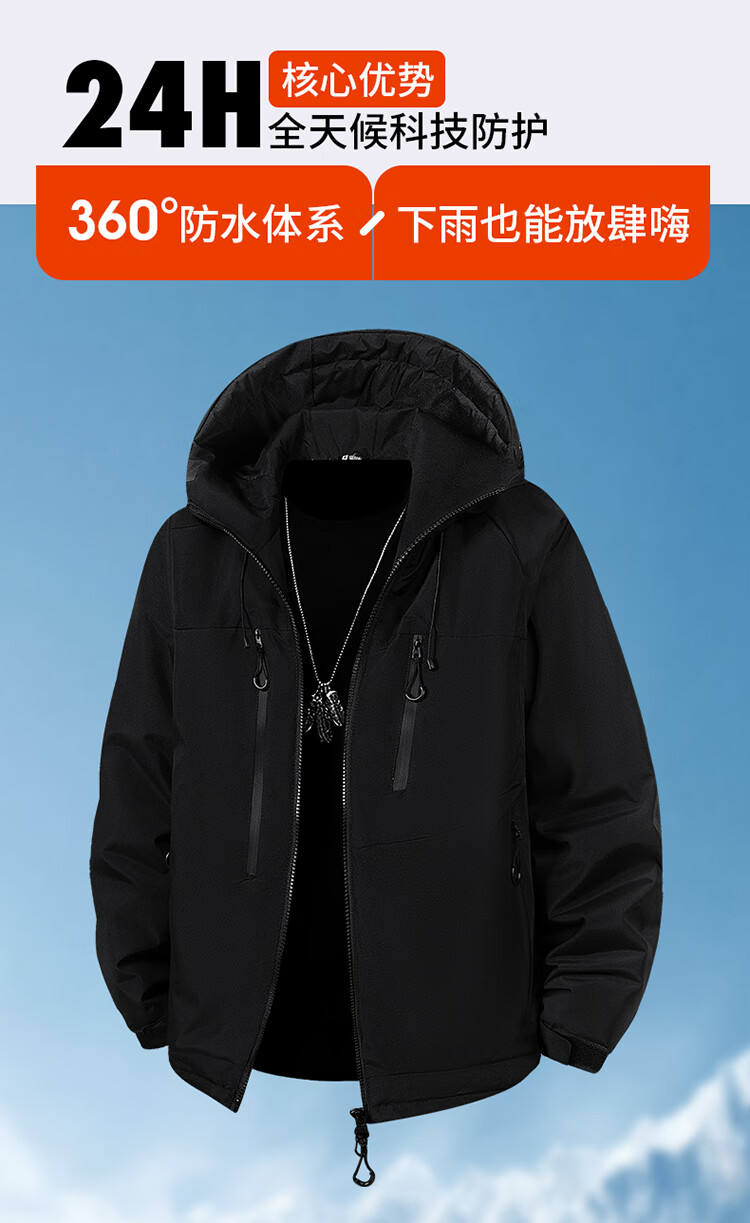 鸿星尔克四防|羽绒服男秋冬新款保暖防风防污防泼水户外休闲运动外套夹克 正黑 2XL