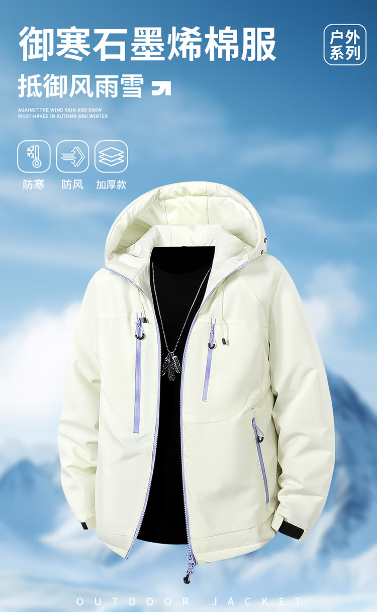蕉下森林冲锋夹克男士石墨烯棉衣2025连帽冬季羽绒棉服男保暖棉袄登山服 雪芥白 2XL