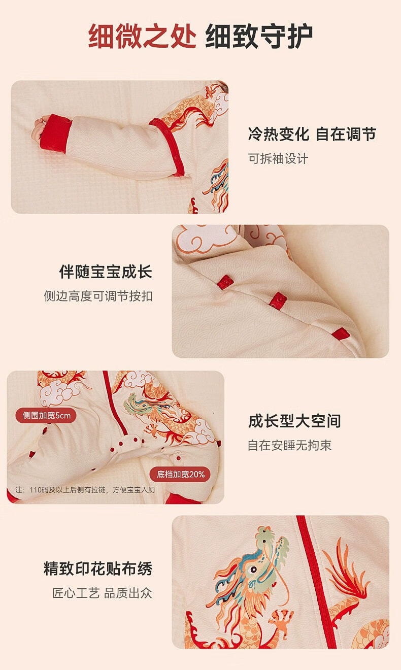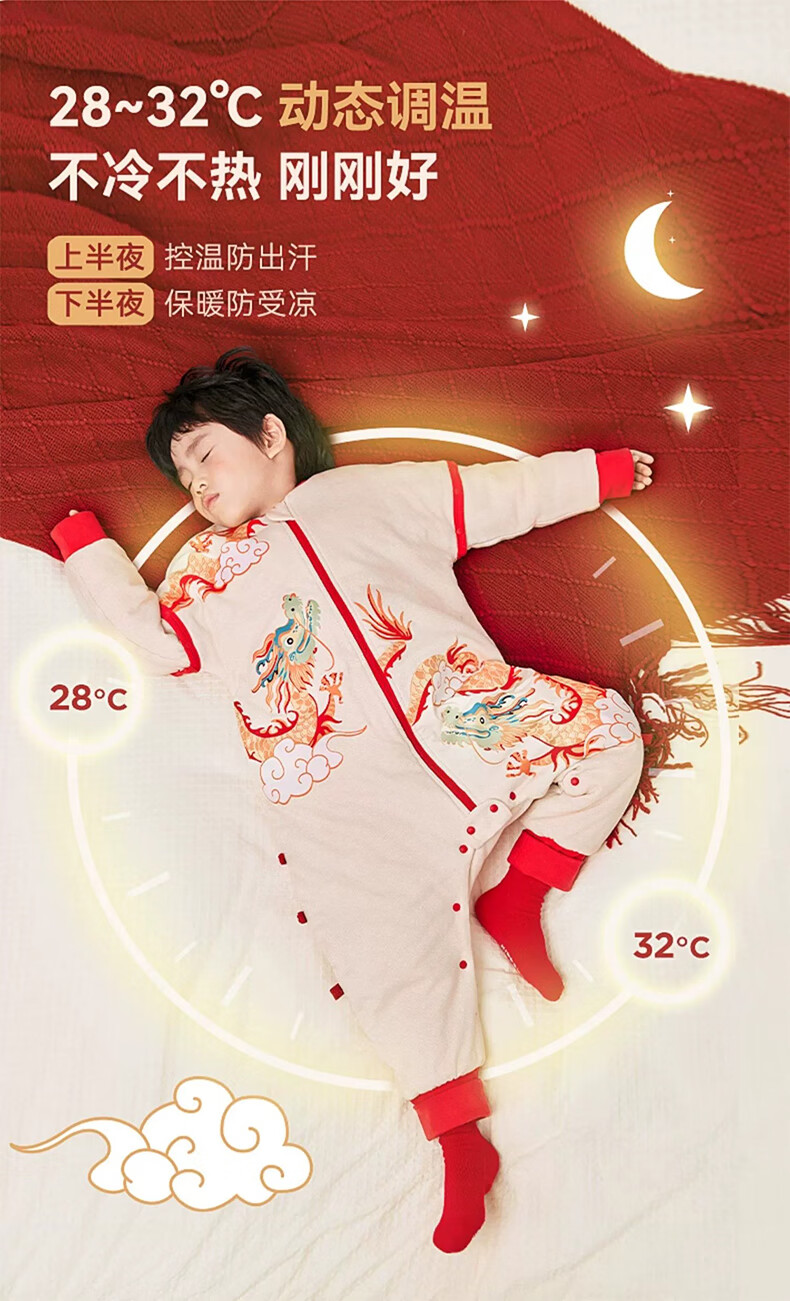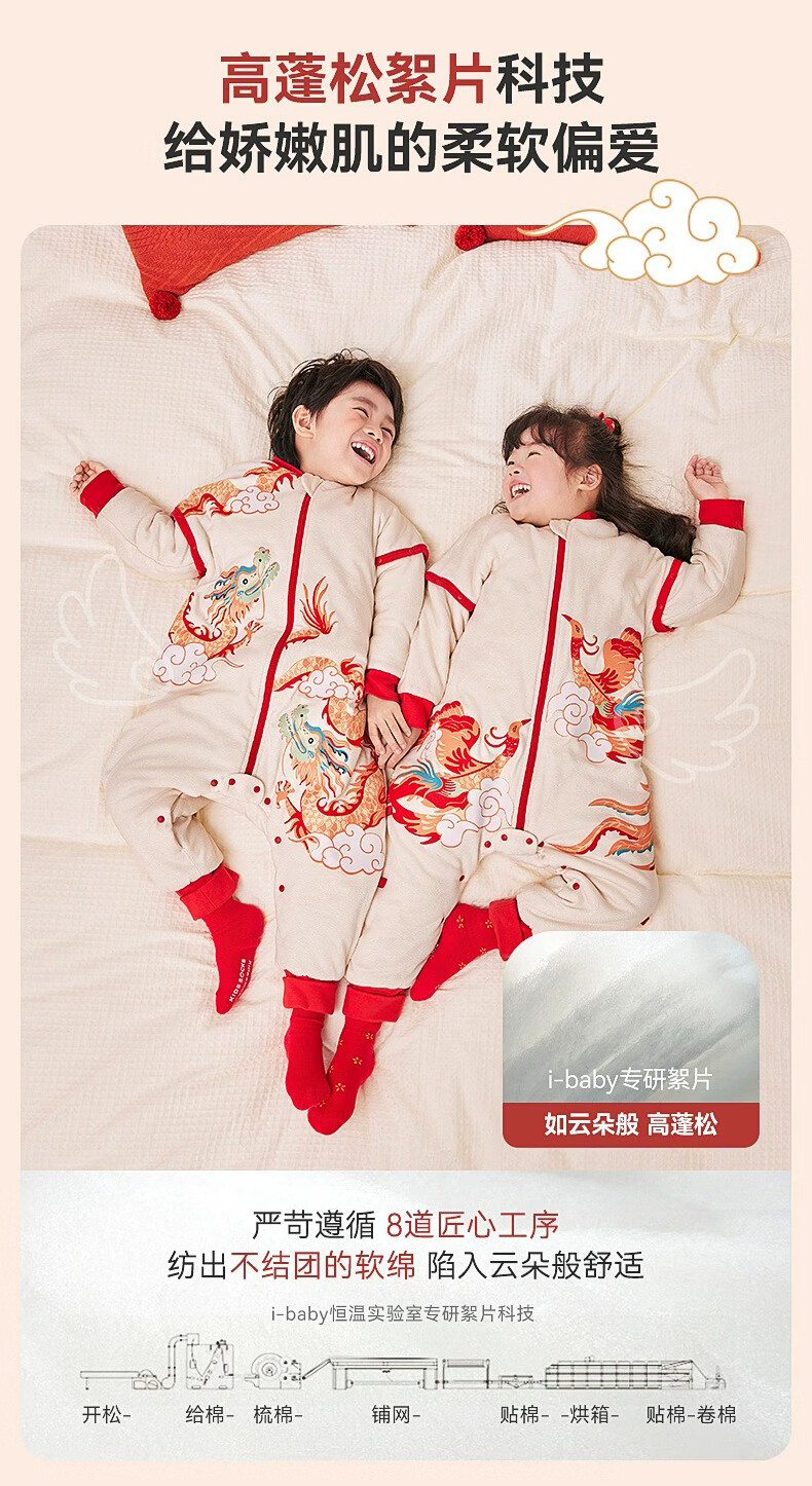 ibaby睡袋恒温婴儿睡袋宝宝分腿式连体睡衣抑菌防踢被【秋冬夹棉】FF 【舒适60g】凤舞九天(室温20-24℃)旧款 110码【推荐身高100-110cm】
