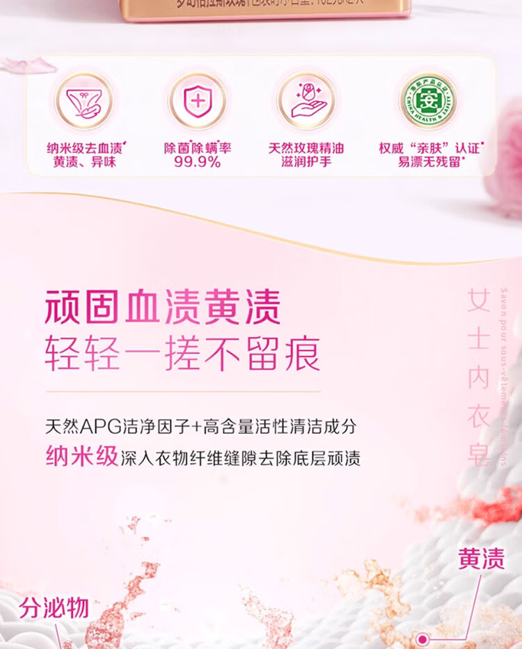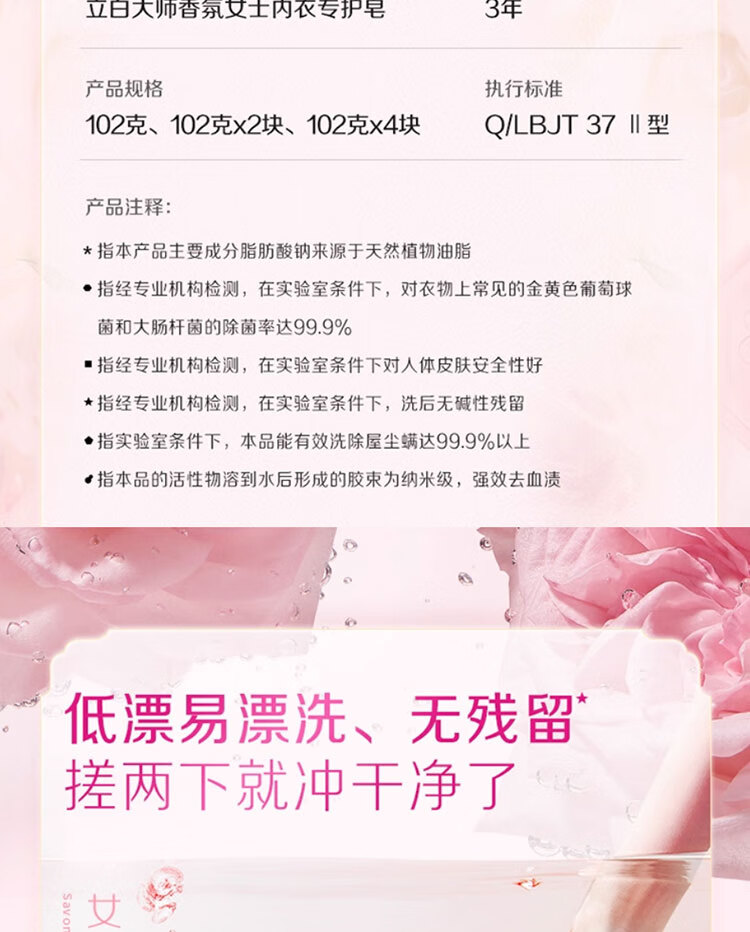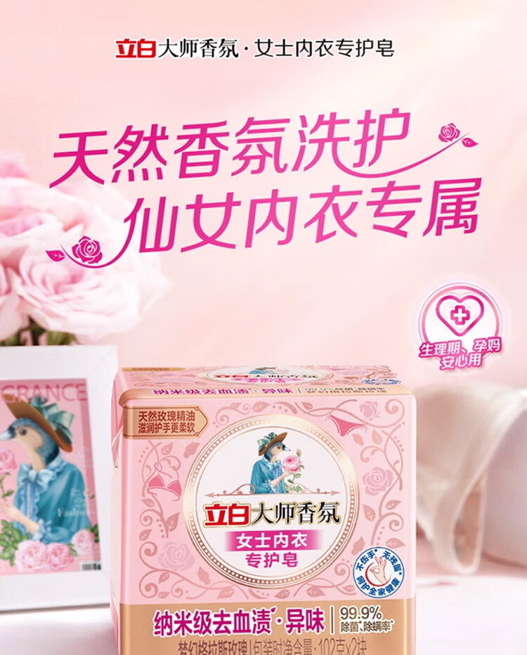 立白大师香氛女士内衣专护皂去血渍异味除菌洁净家用洗衣皂柔顺护衣 大师香氛内衣皂102g*2块 去血渍异味除菌除螨