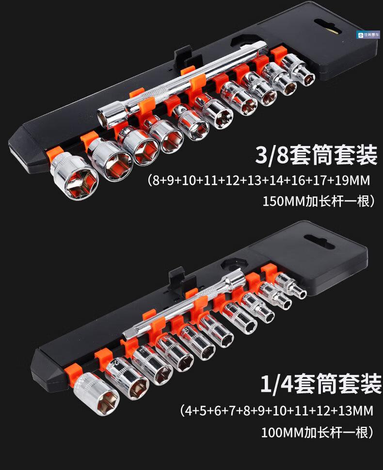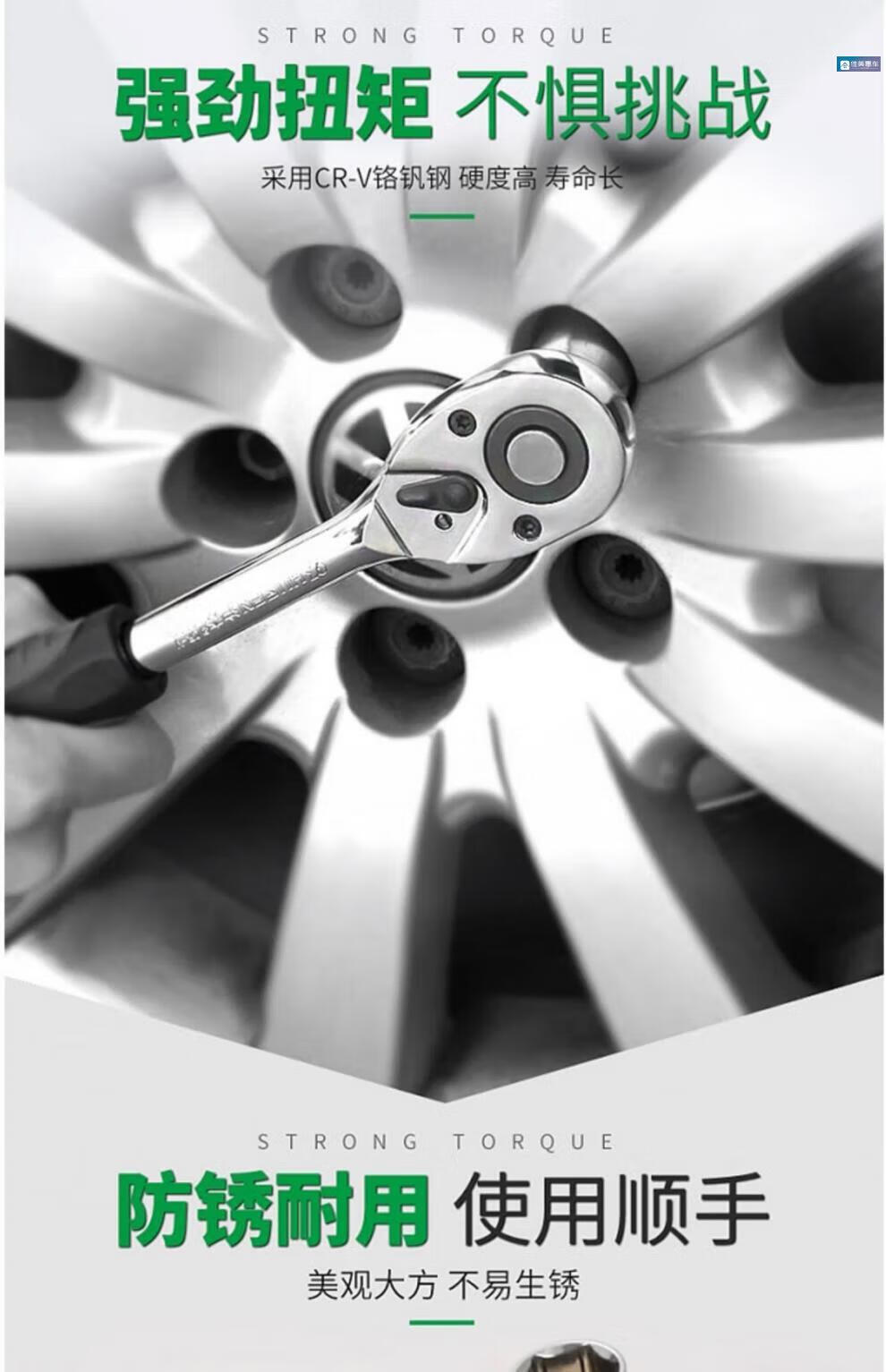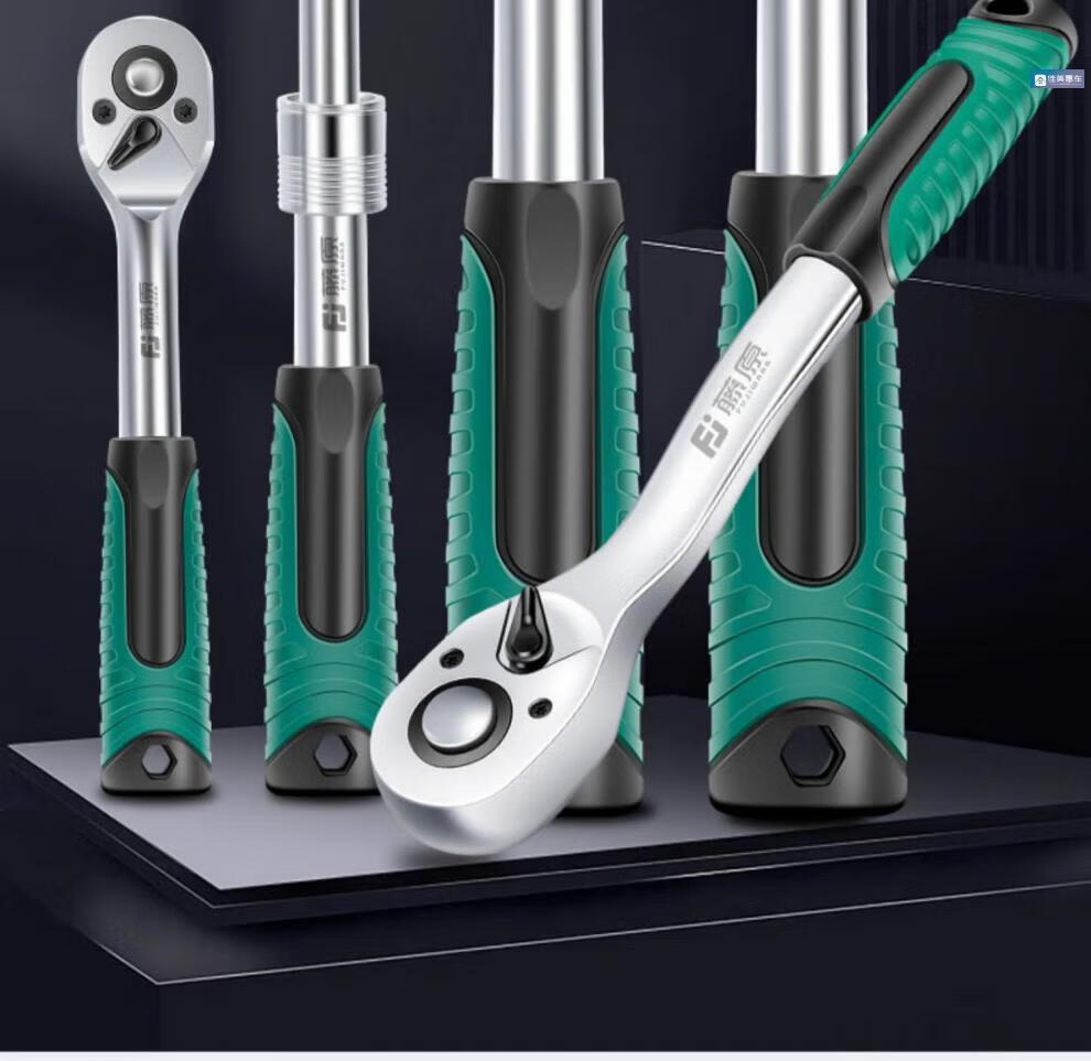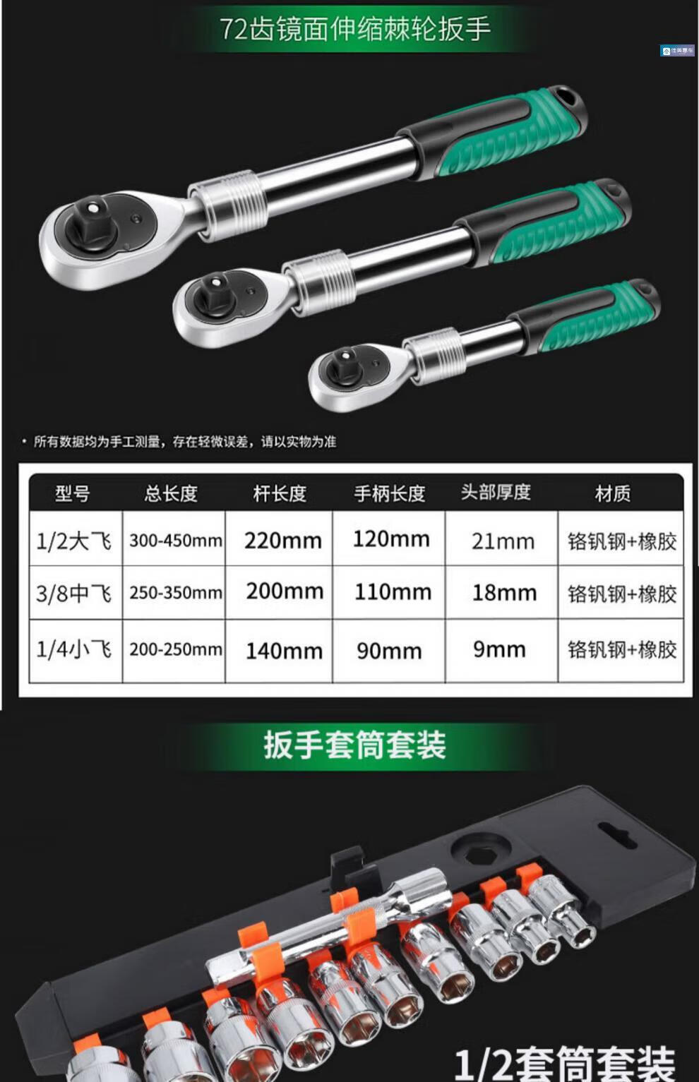 山头林村棘轮扳手套筒工具组合套装内六角汽修快速扳手小飞中大飞伸缩38 1/4小飞棘轮扳手直柄)