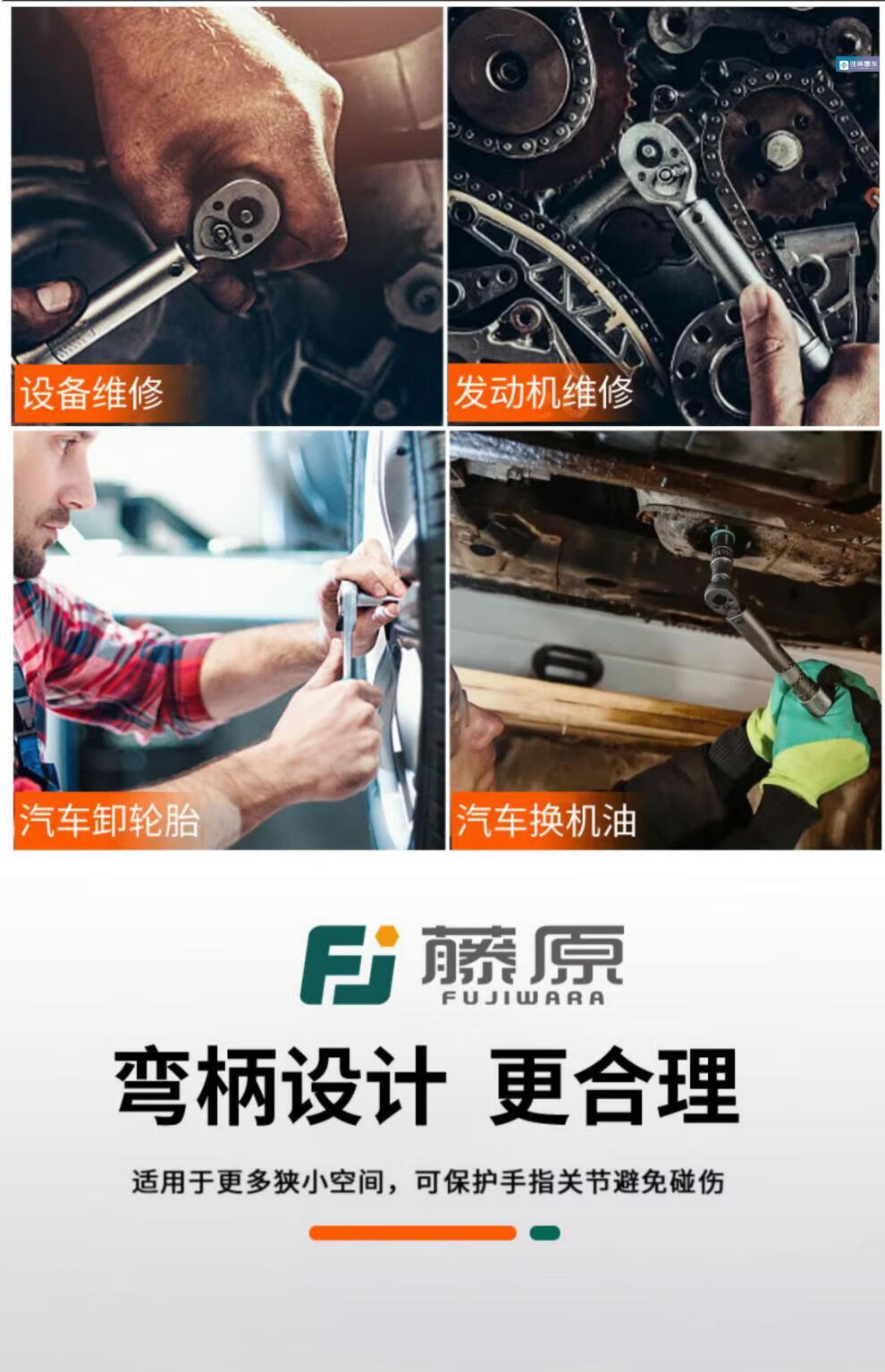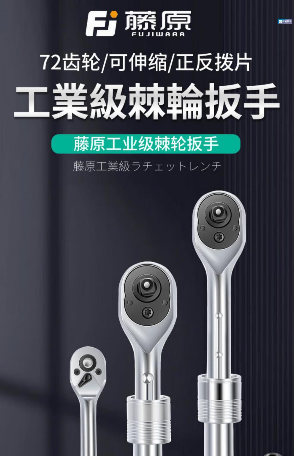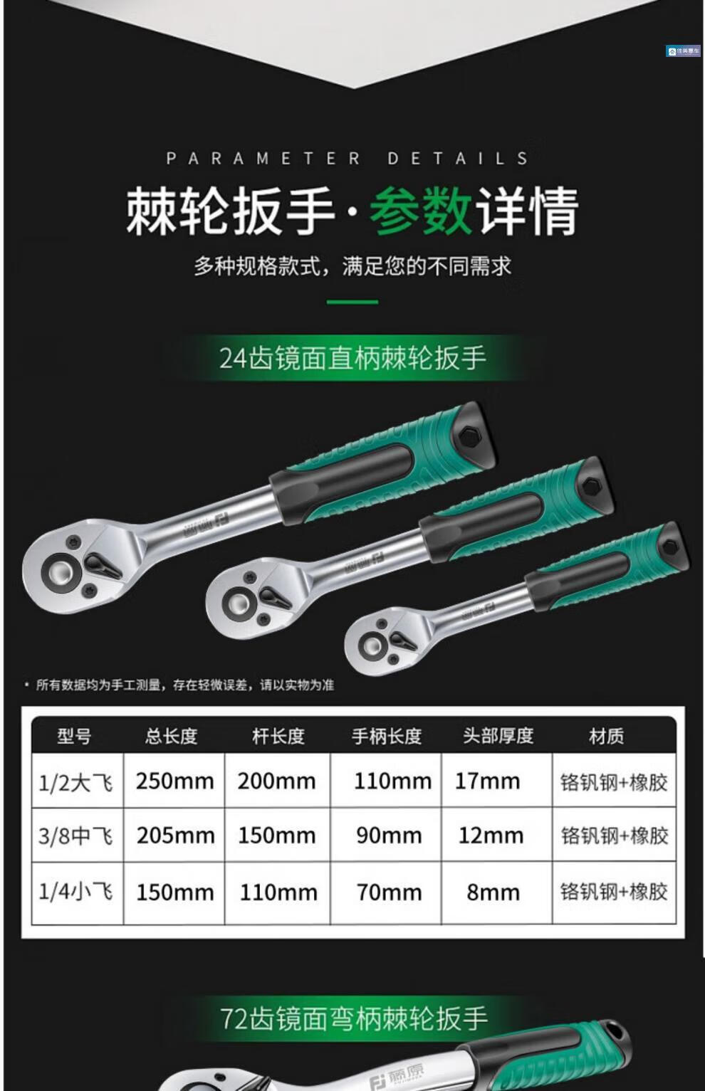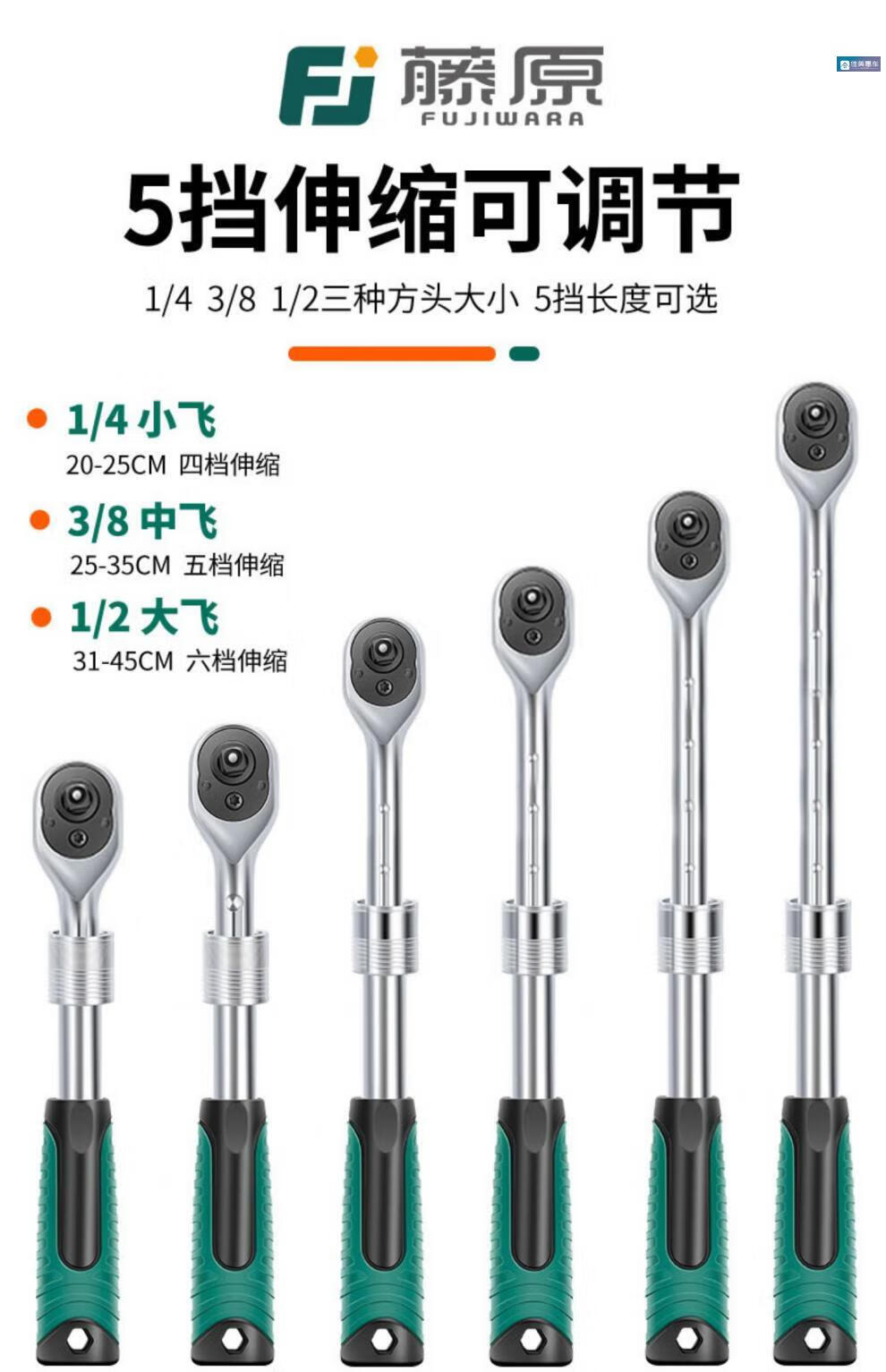 山头林村棘轮扳手套筒工具组合套装内六角汽修快速扳手小飞中大飞伸缩38 1/4小飞棘轮扳手直柄)