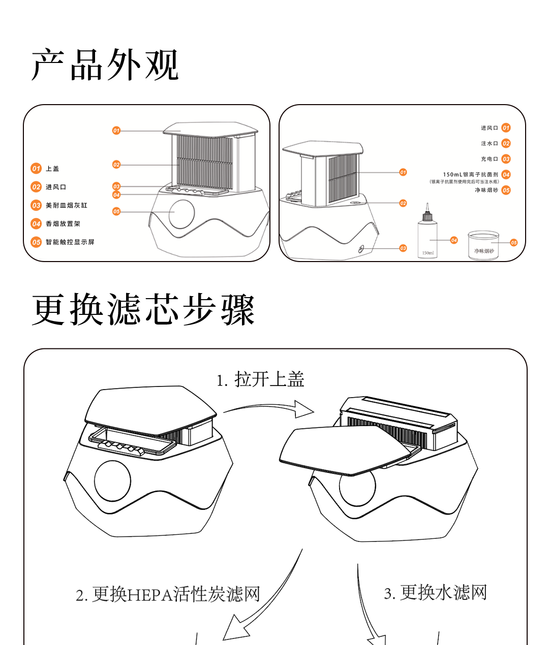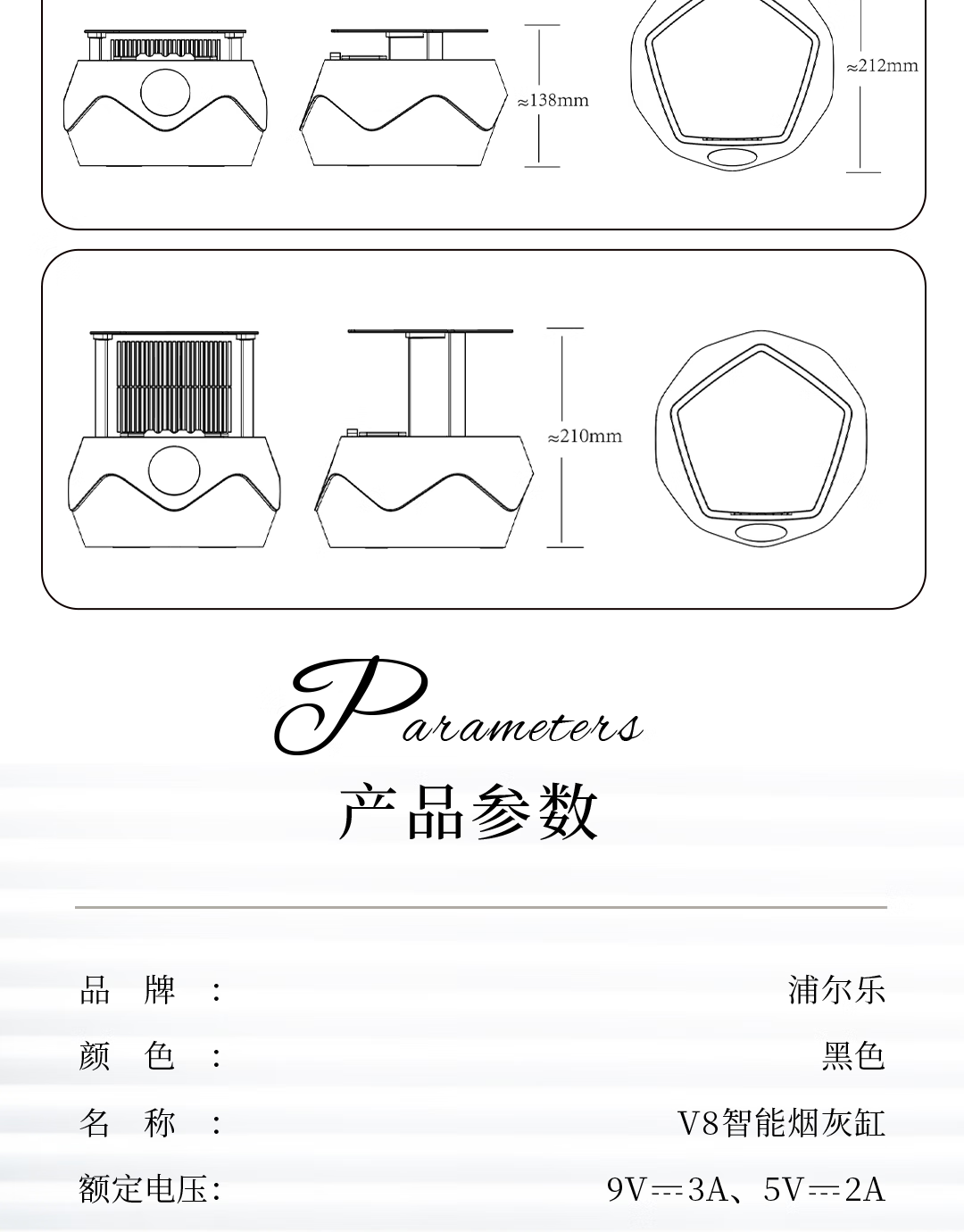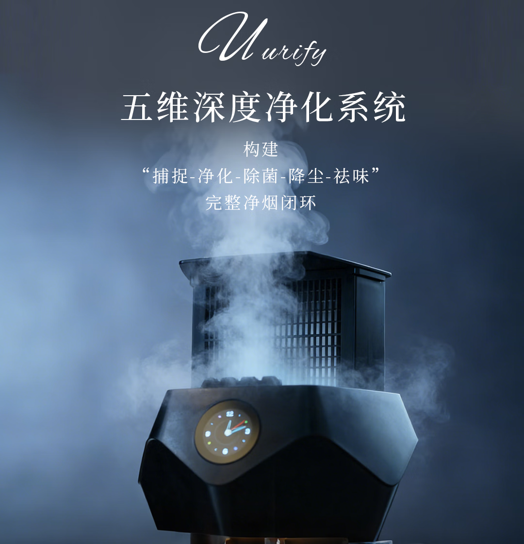 浦尔乐新品浦尔乐V8智能烟灰缸桌面空气净化器除二手烟高端创意礼品礼盒 典雅黑