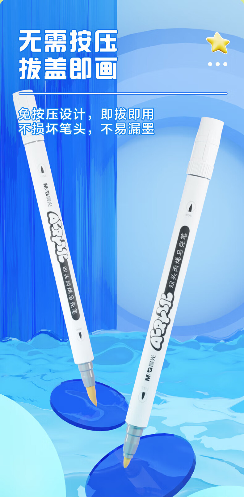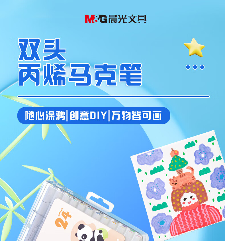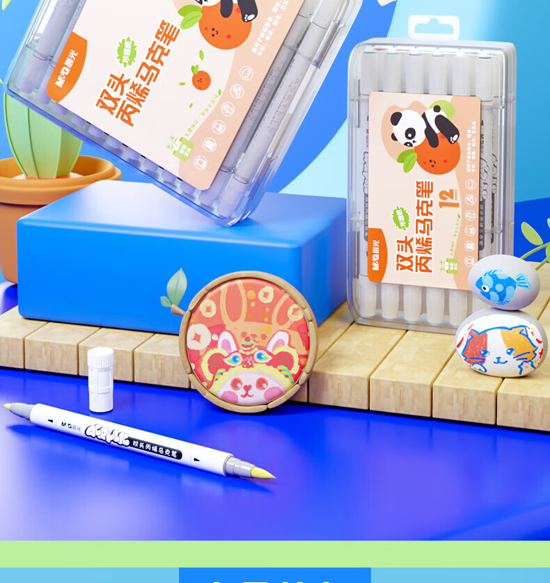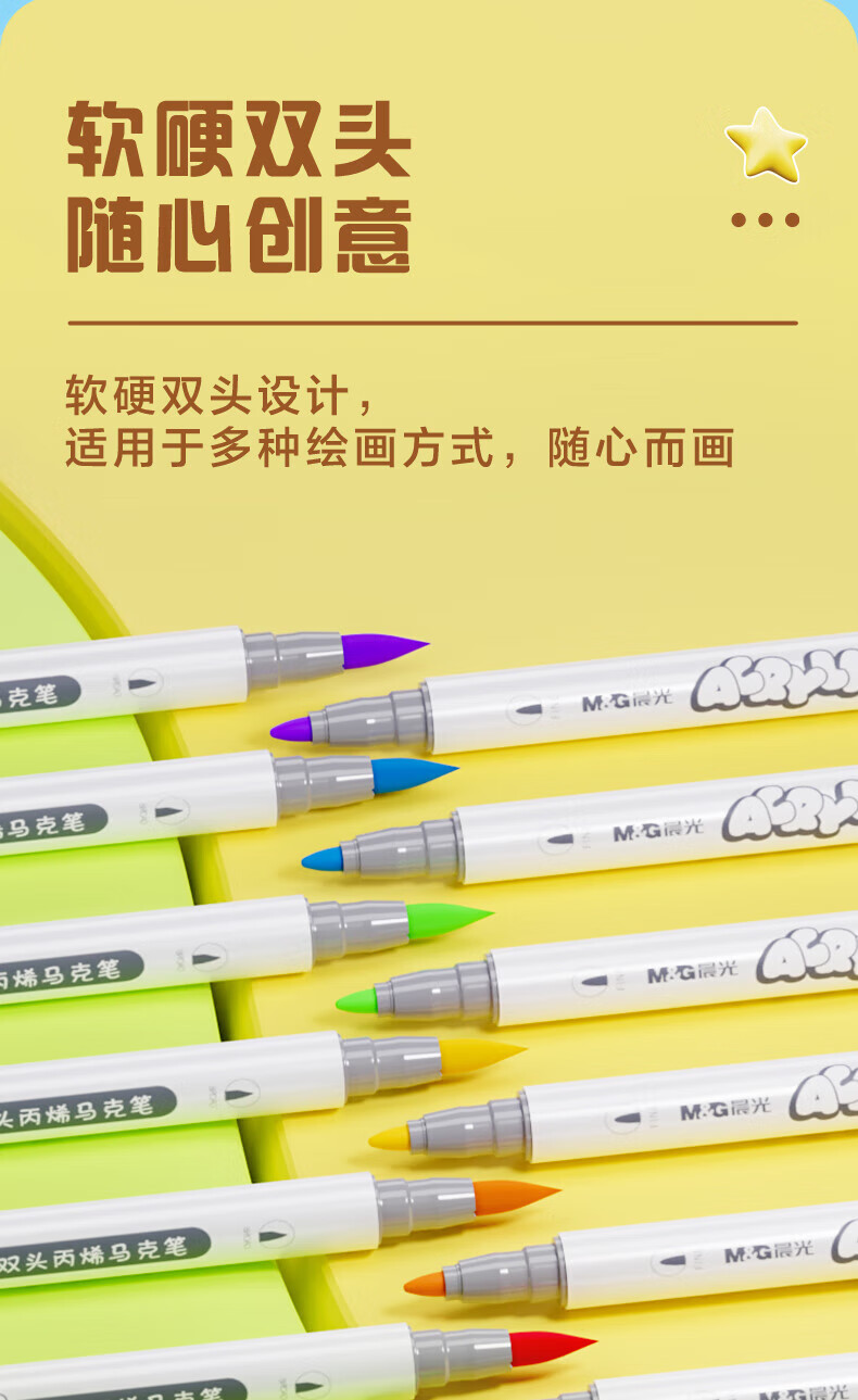 晨光(M&G)双头丙烯马克笔儿童美术专用安全防水不透色速干咕卡彩笔diy涂鸦水彩笔软头硬头双头马克笔 【随心画】24色丙烯马克笔