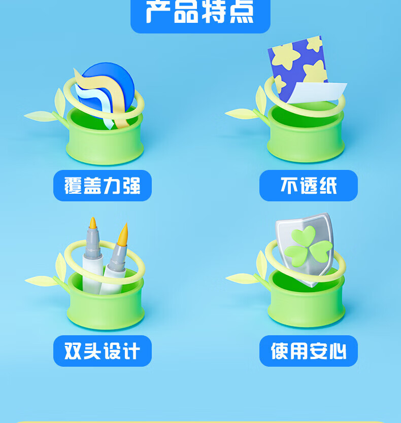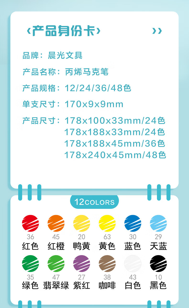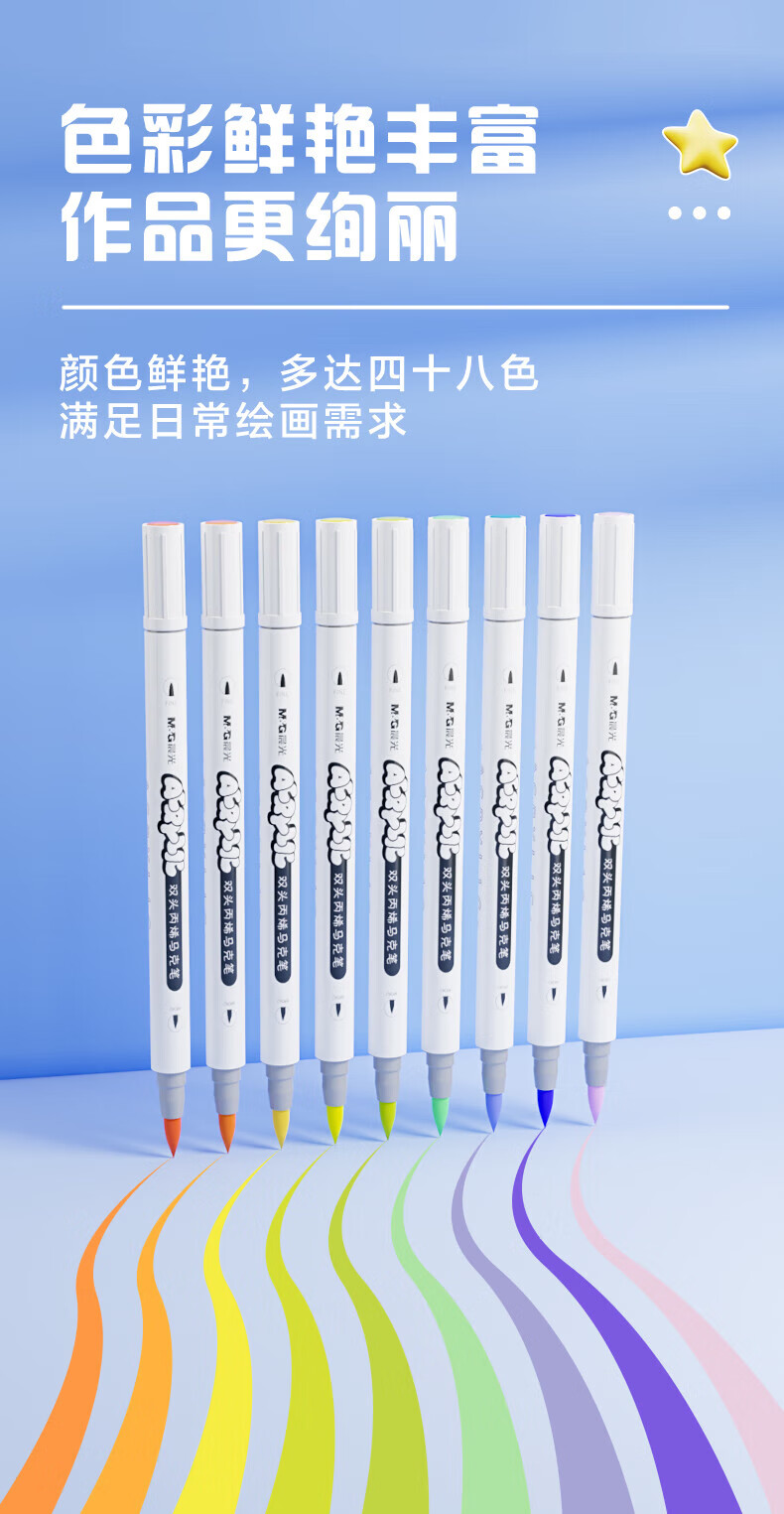 晨光(M&G)双头丙烯马克笔儿童美术专用安全防水不透色速干咕卡彩笔diy涂鸦水彩笔软头硬头双头马克笔 【随心画】24色丙烯马克笔