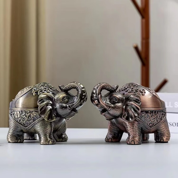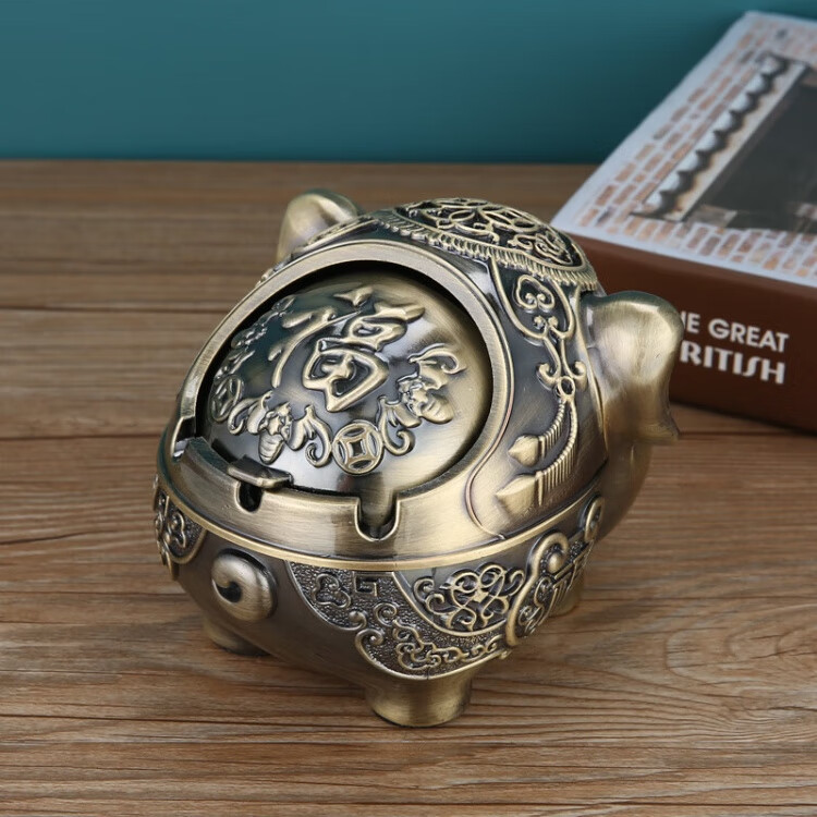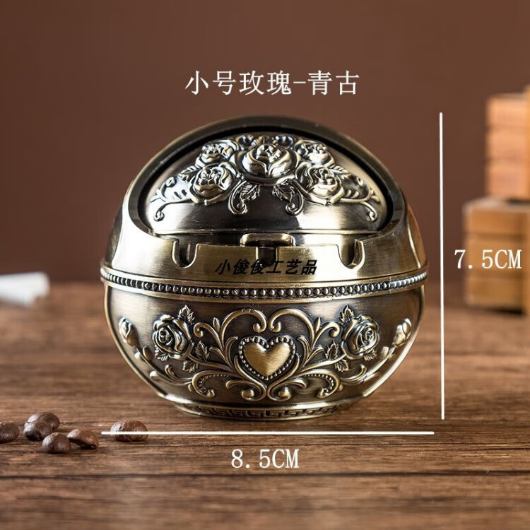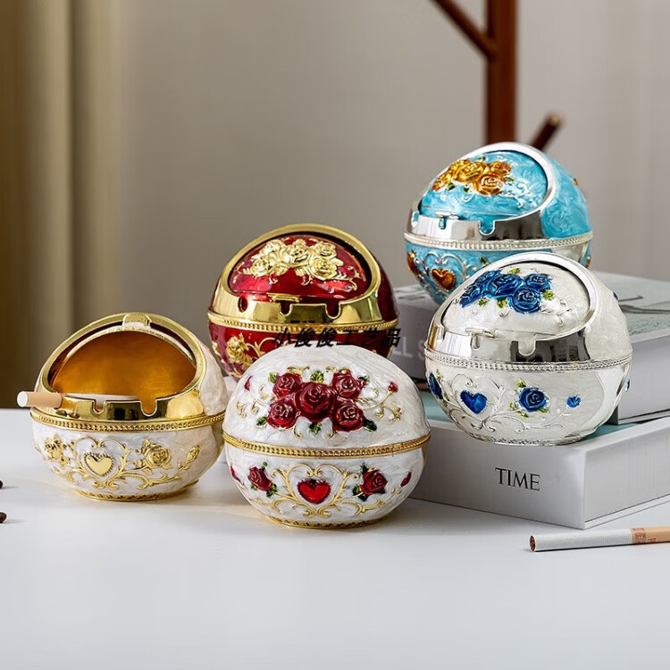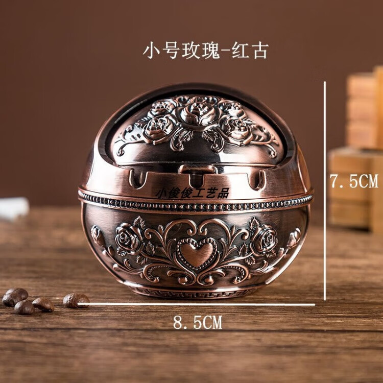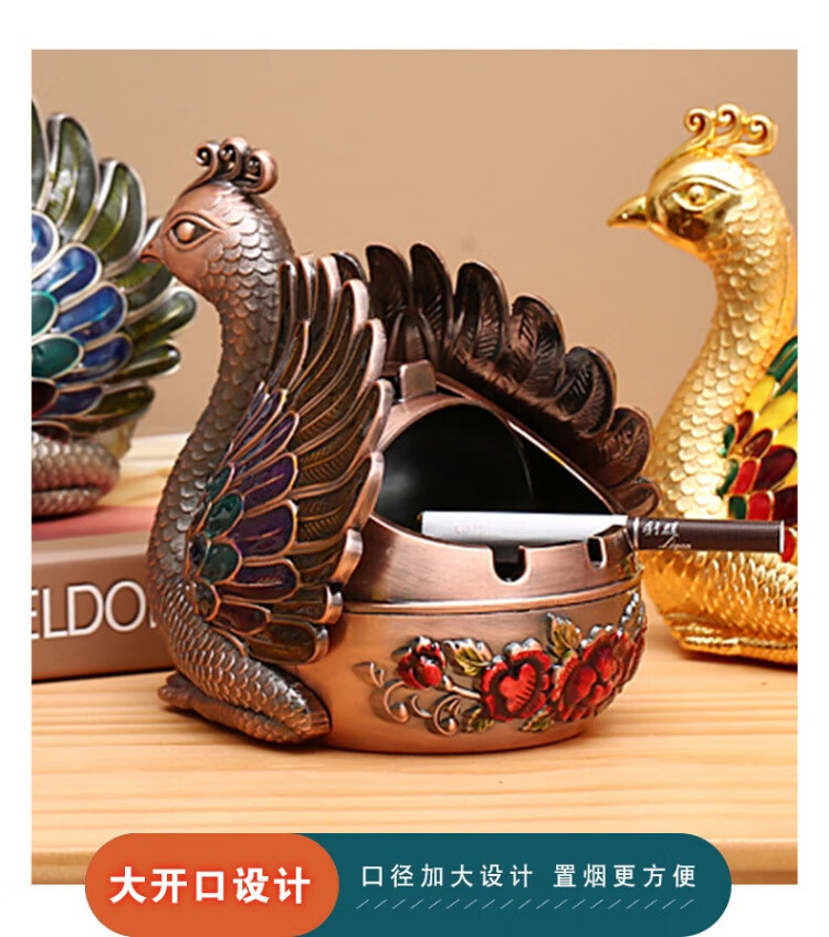 欧式烟灰缸车载复古高端大气上档次烟灰缸便携家用办公室带盖防飞 红古彩色孔雀(3D立体)