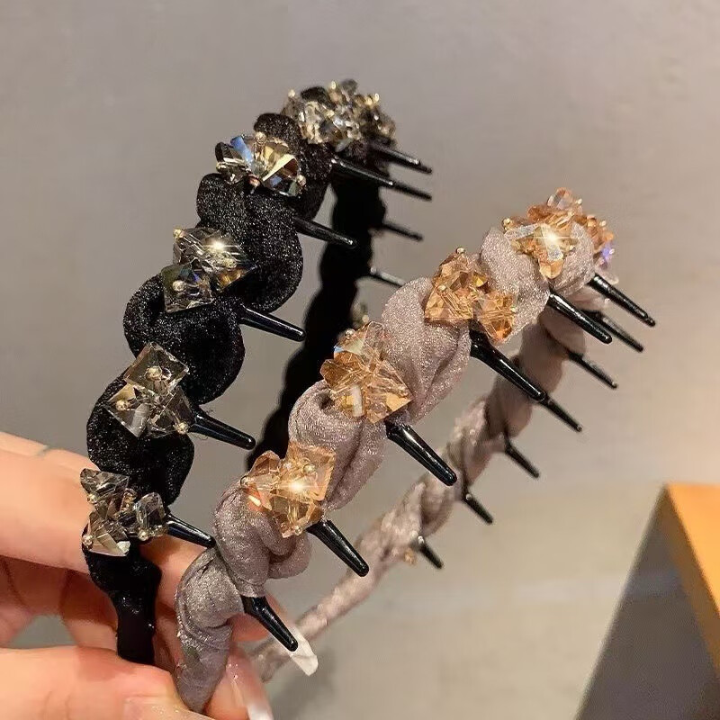 【精选品质】轻奢新款水钻波浪网红发箍防滑发卡时尚气质头箍齿梳 2 星空纱黑色发箍【灰色水晶】