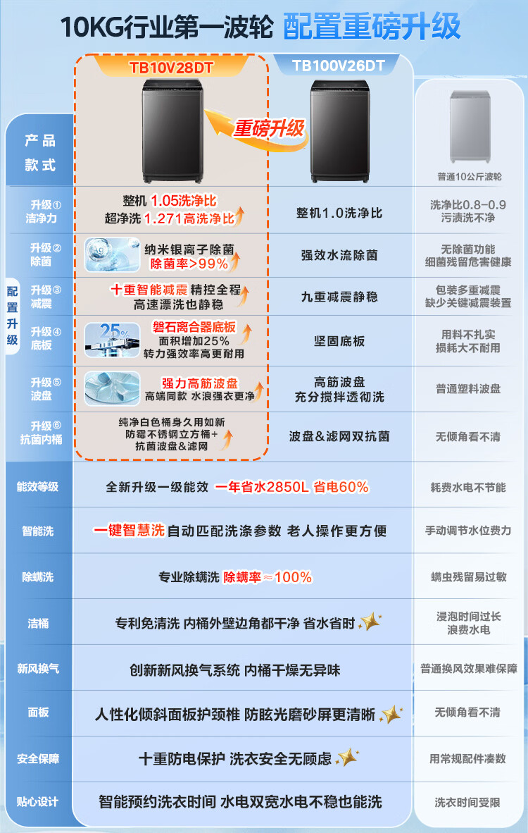 小天鹅(LittleSwan)10KG直驱变频波轮洗衣机创新超净洗大容量省水省电更节能一级能效家电补贴 TB100V26DT 波轮