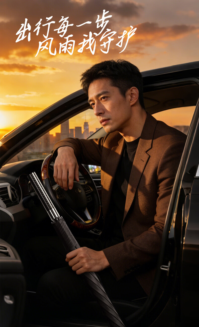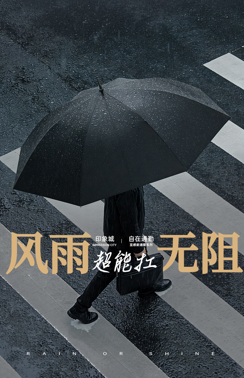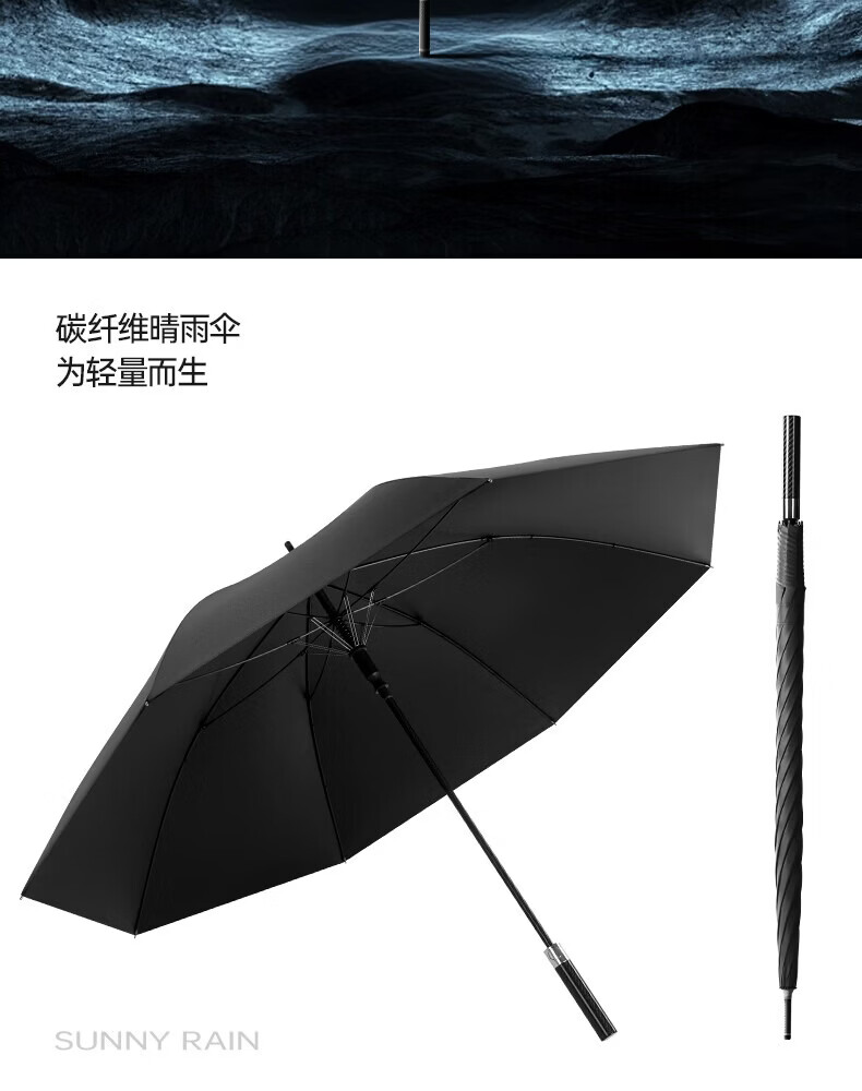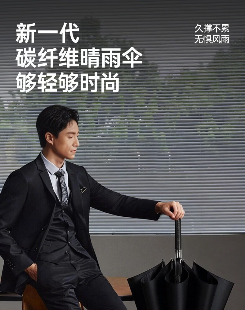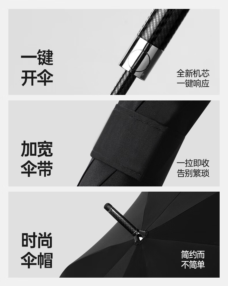 印象城碳纤维自动雨伞超大号长柄伞便携黑胶防晒遮阳伞长把男士商务伞 碳纤维-超大号-黑色(155cm伞面)