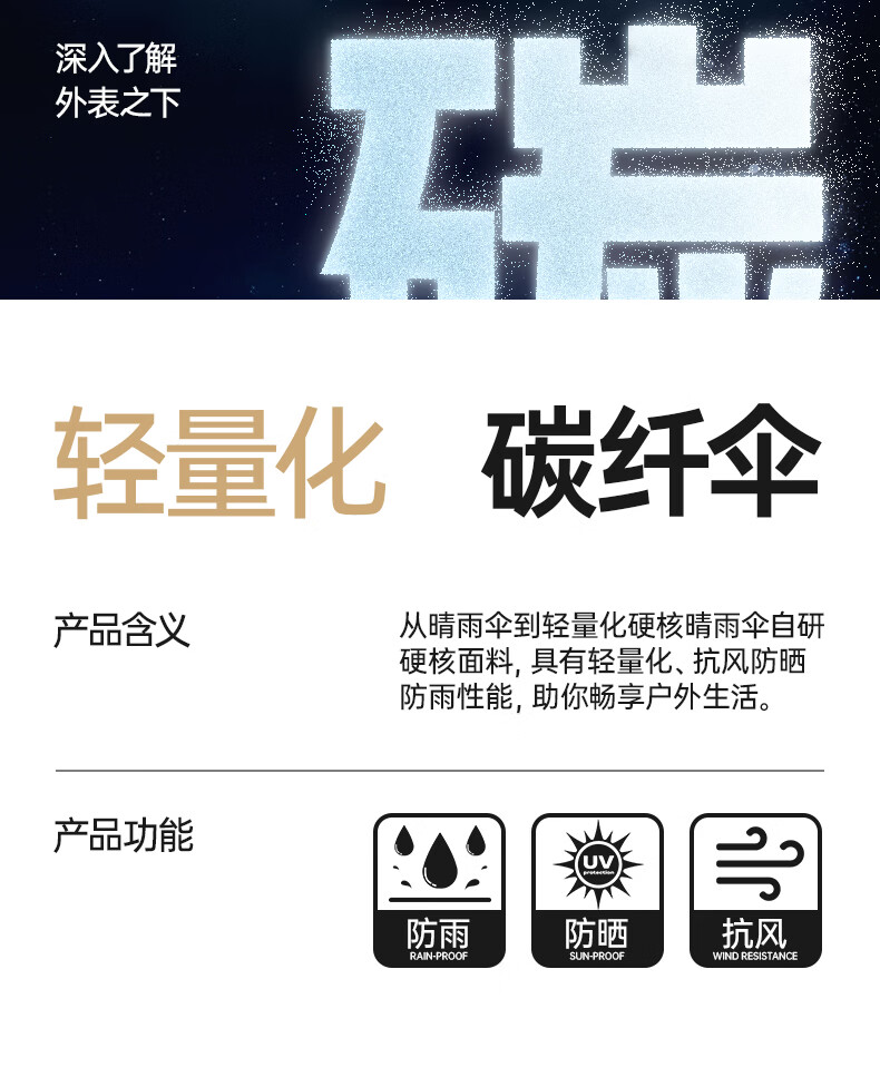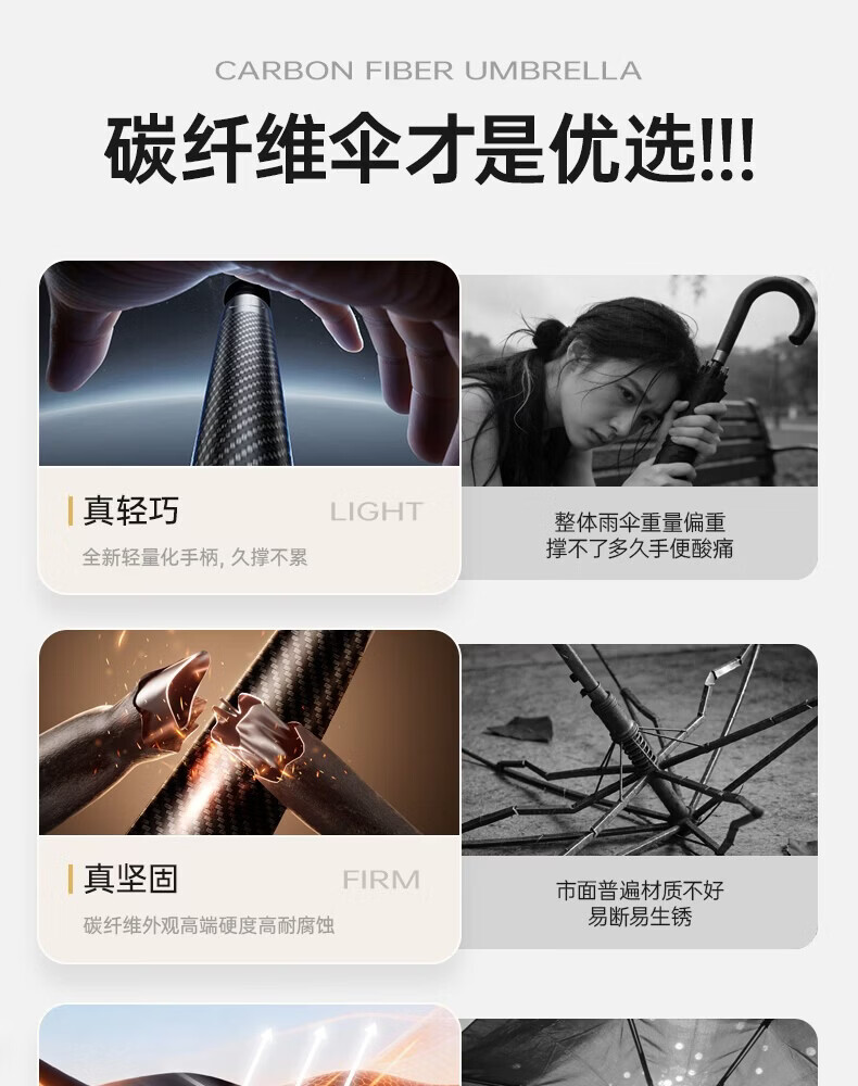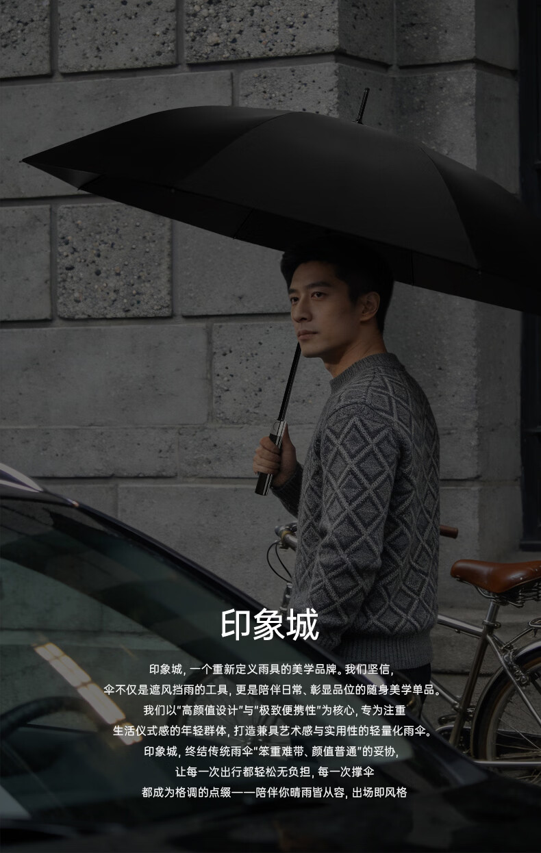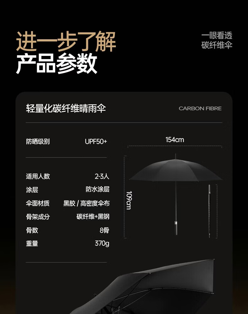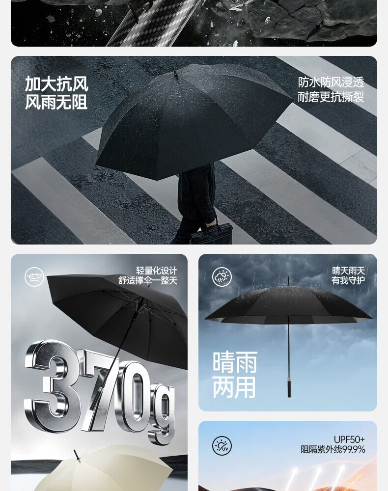 印象城碳纤维自动雨伞超大号长柄伞便携黑胶防晒遮阳伞长把男士商务伞 碳纤维-超大号-黑色(155cm伞面)
