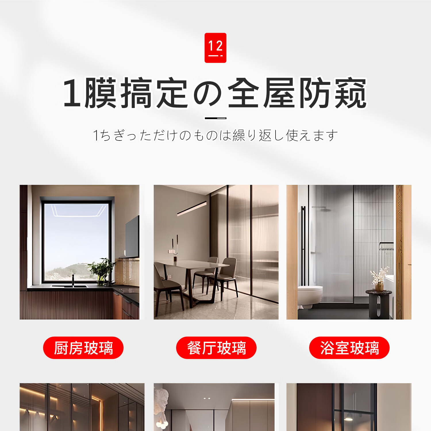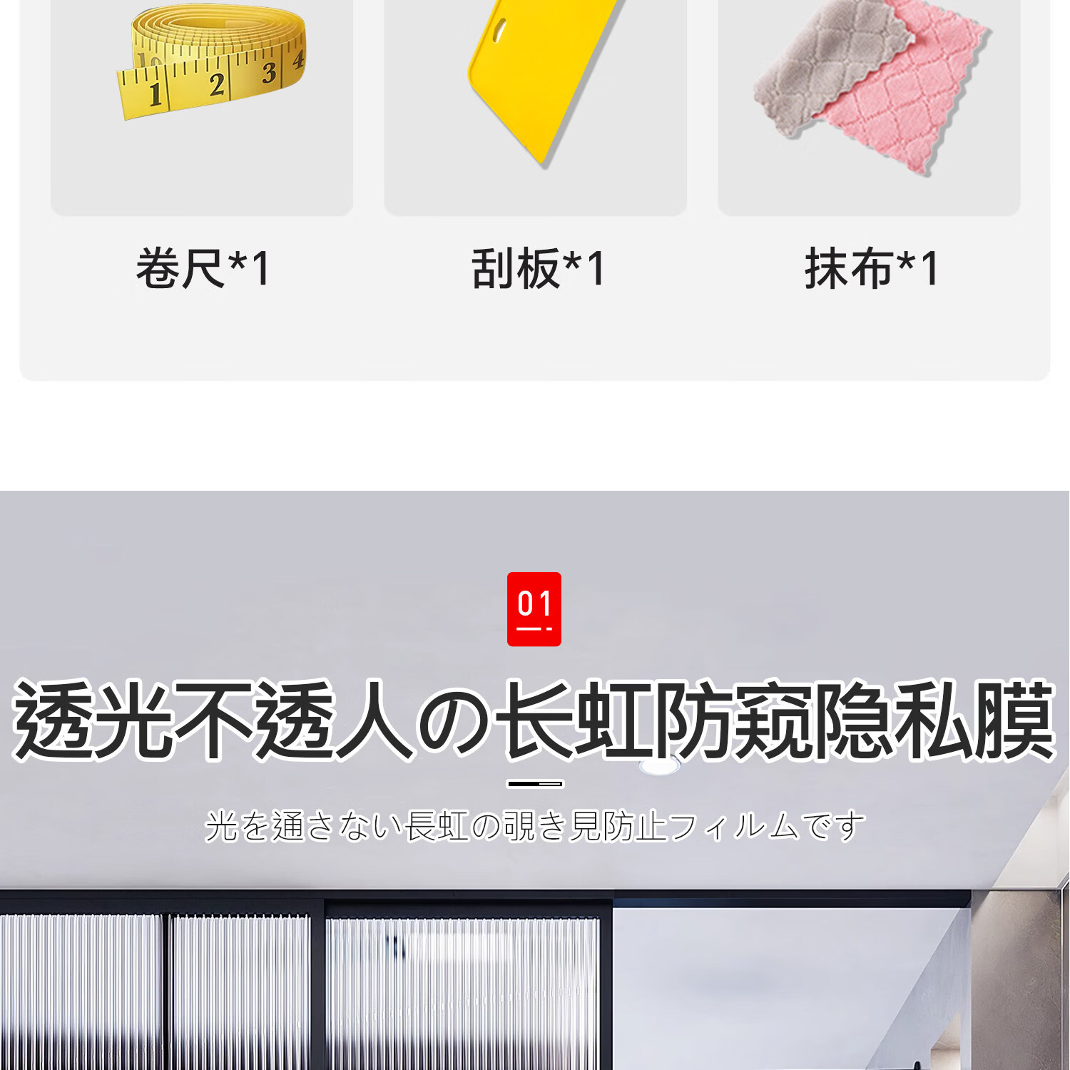 吱凡日本进口长虹玻璃贴膜防窥磨砂玻璃贴纸浴室厕所门贴纸透光不透明 【冰晶盾pro】长虹2号【无胶款】 30x100cm