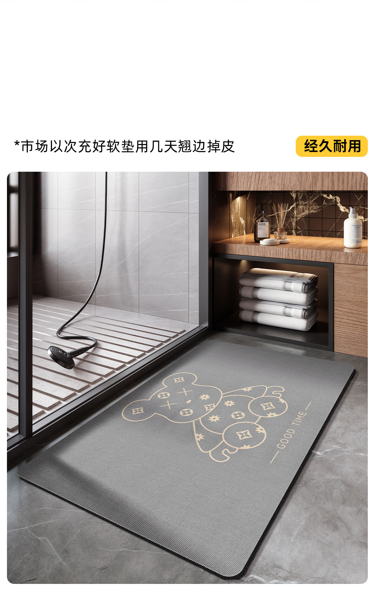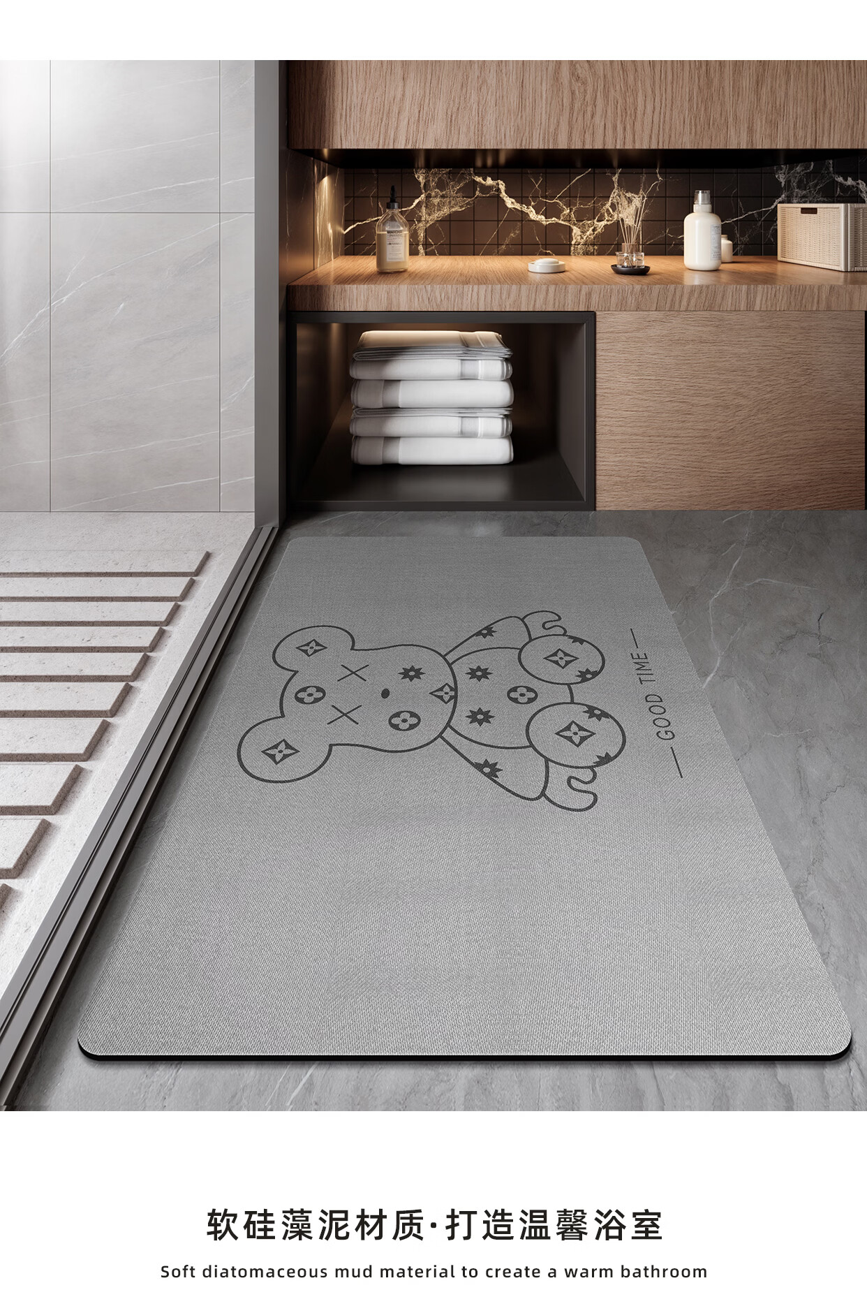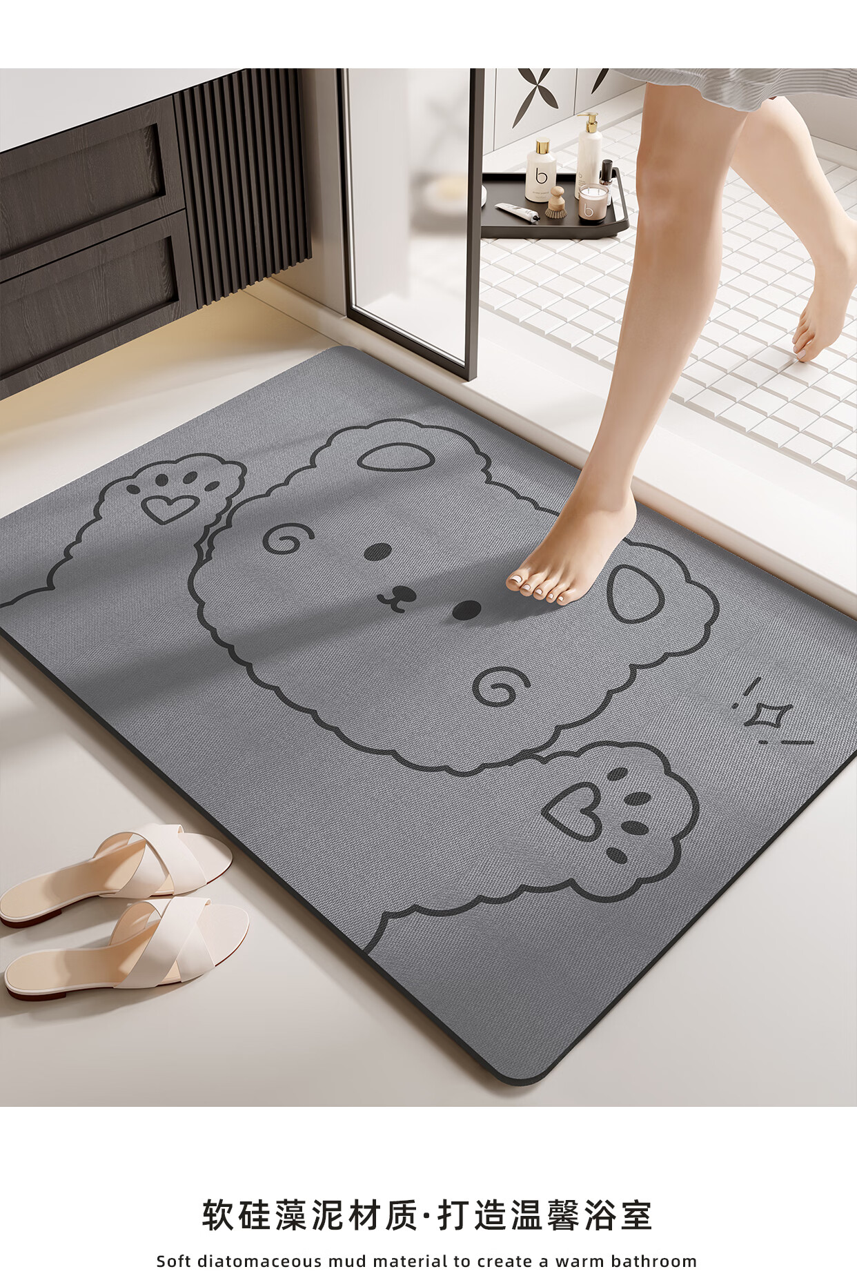著忆地垫浴室门口吸水速干防滑脚垫可爱卡通卫生间洗手间脚垫软硅藻泥 GZN-深灰熊 40*60cm