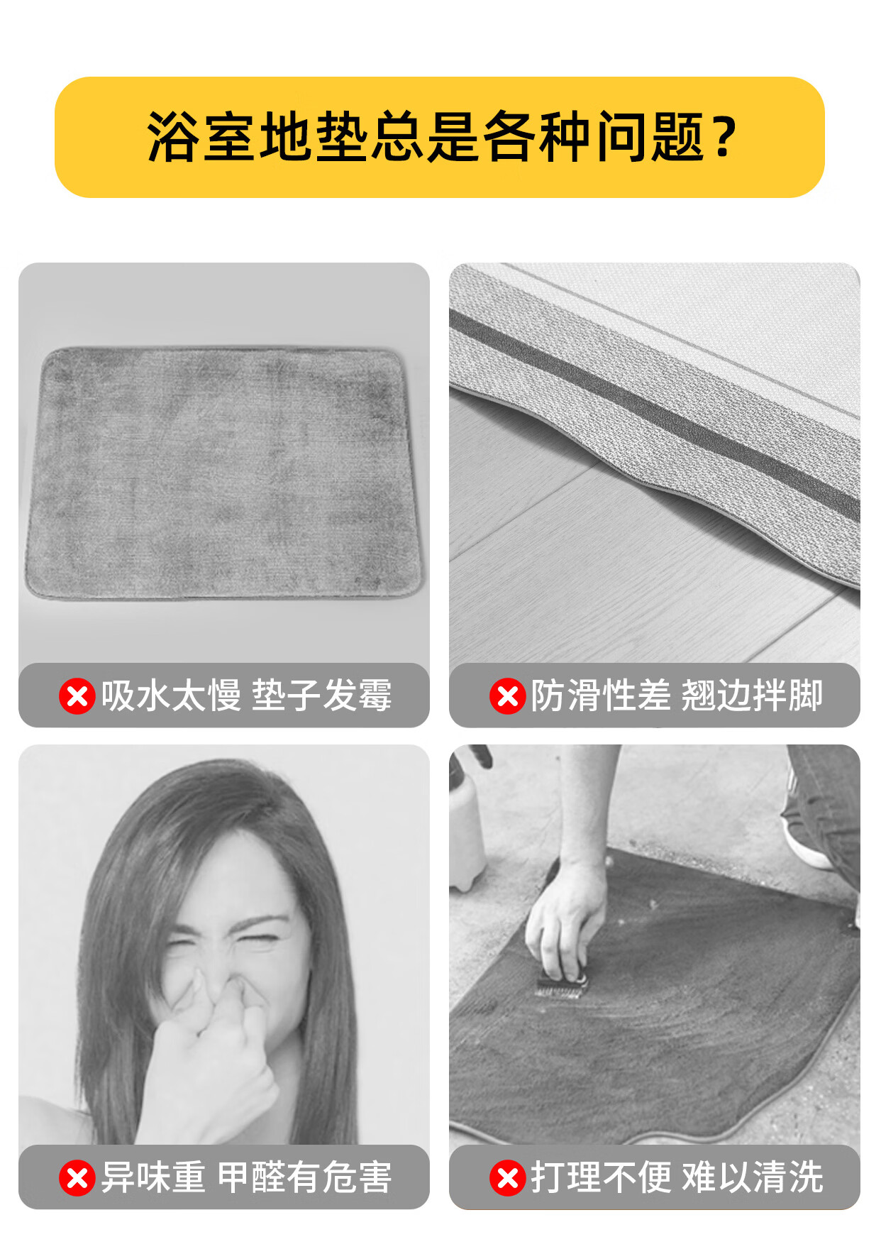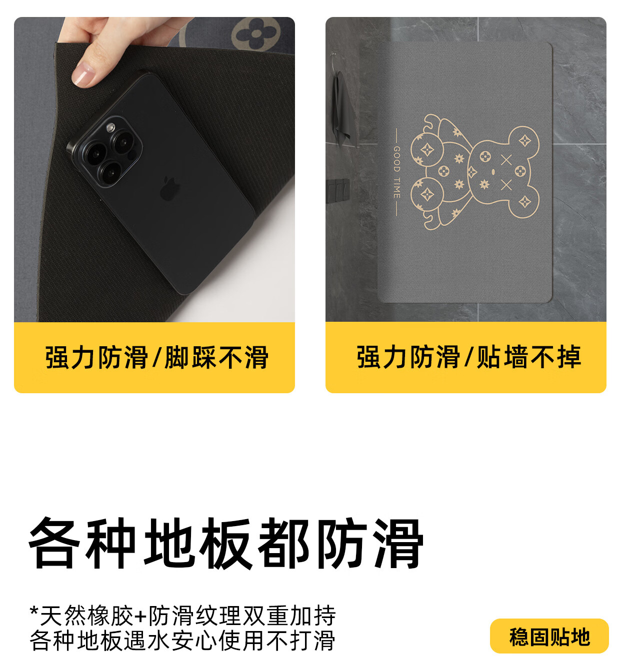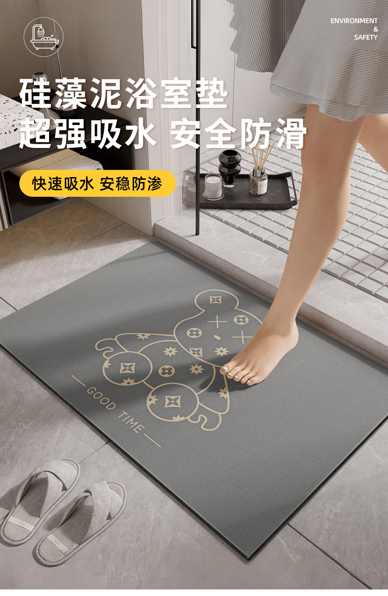 著忆地垫浴室门口吸水速干防滑脚垫可爱卡通卫生间洗手间脚垫软硅藻泥 GZN-深灰熊 40*60cm