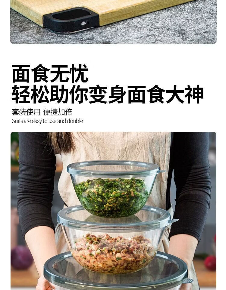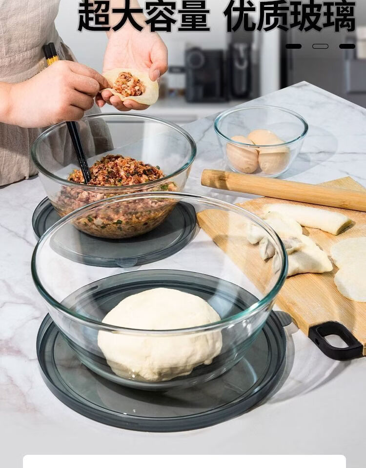咏夏居家加厚烘焙面盆大号家用大容量玻璃盆沙拉带盖微波炉专用玻璃碗 【加厚组合装】4500+2700