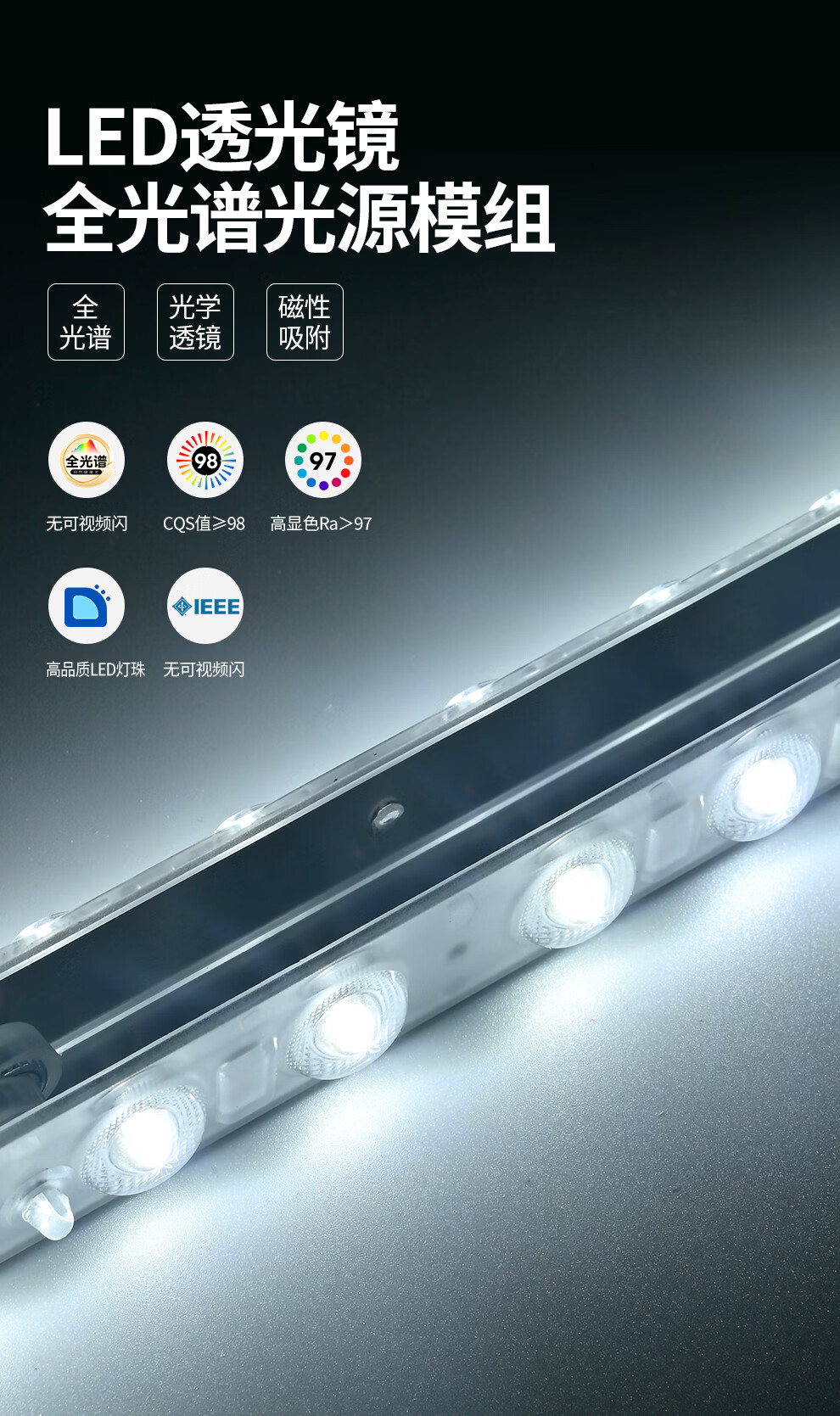 雷士(NVC)LED条形替换灯板磁铁吸附灯条吸顶灯管光源大瓦数改造灯条 【进口普瑞全光谱】Ra97高显色 108瓦白光-6条组合驱动