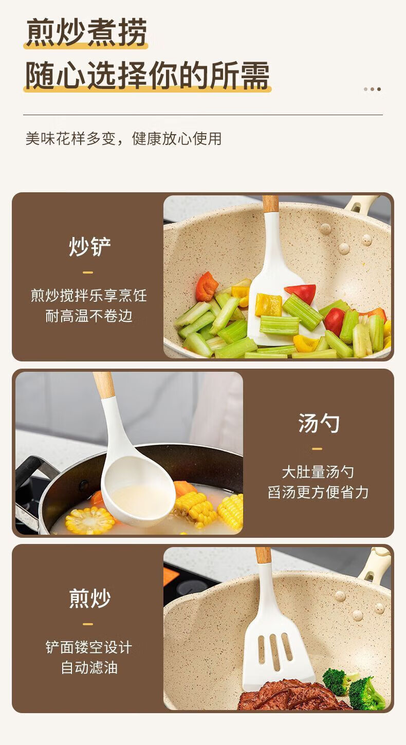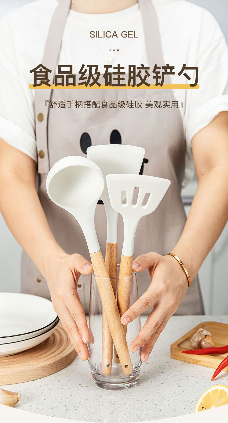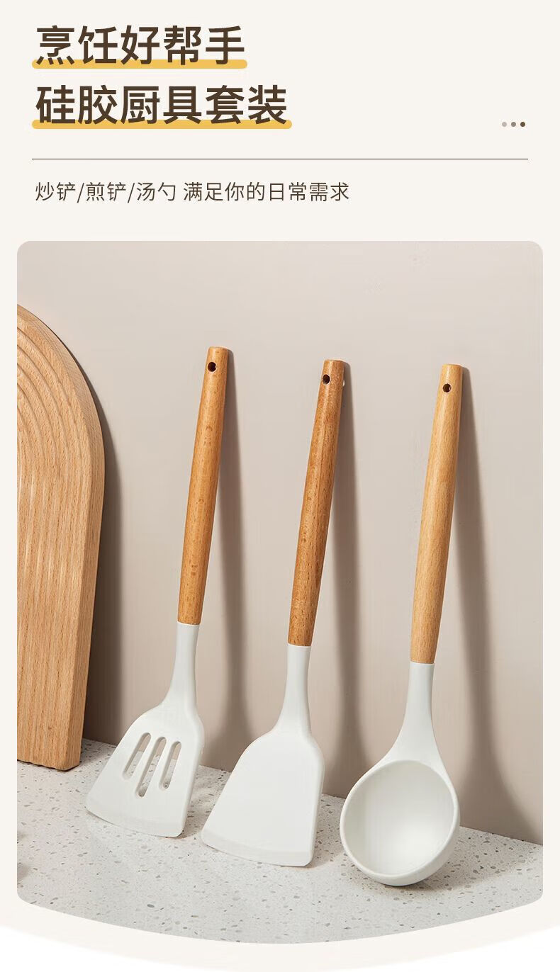 食品级硅胶锅铲不粘锅专用炒菜铲子家用耐高温汤勺漏勺厨具套装 锅铲+汤勺+煎铲【三件套】