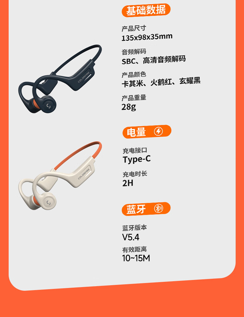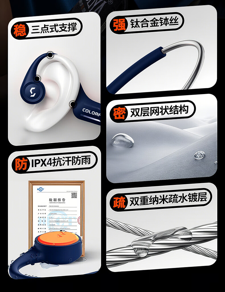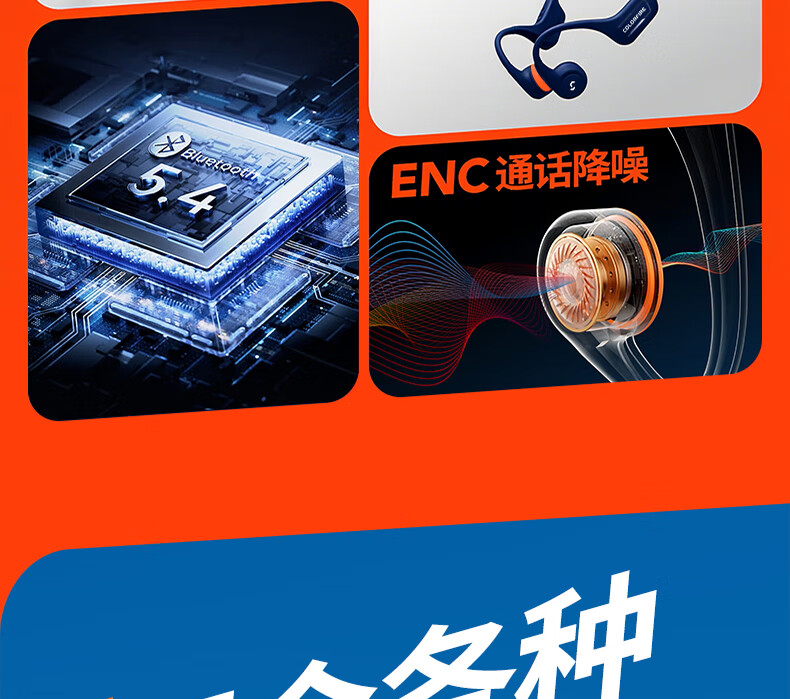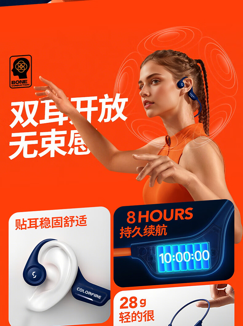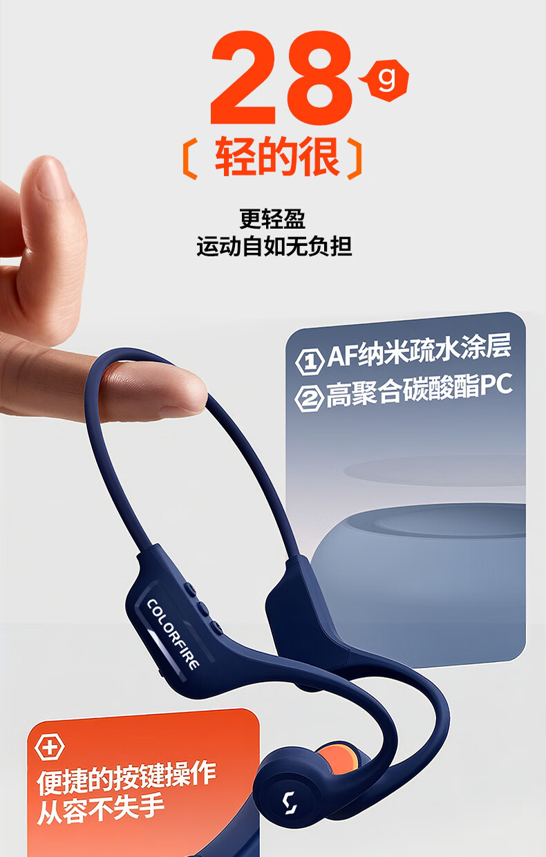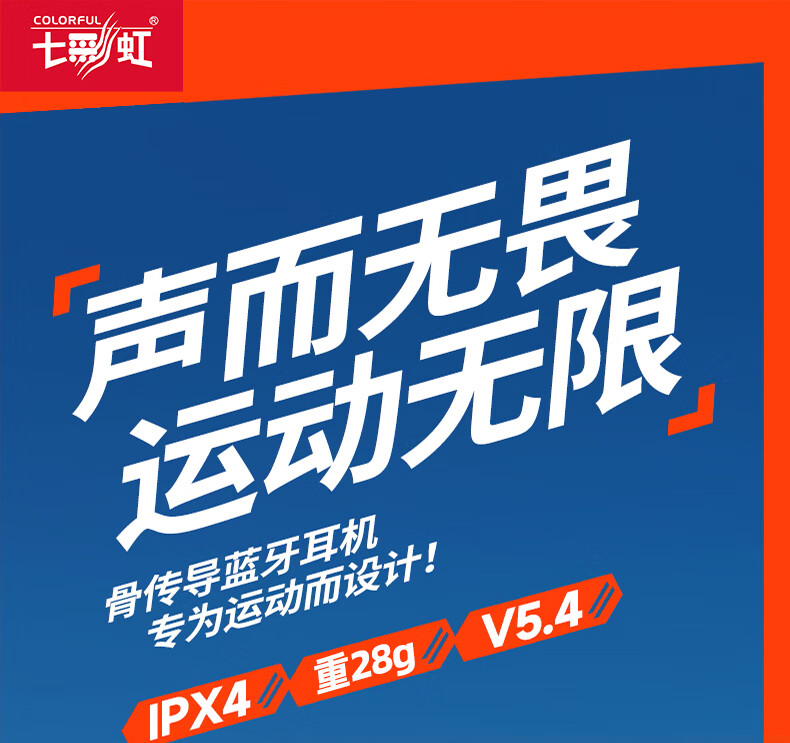 七彩虹(Colorful)七彩虹正品真骨传导蓝牙耳机校园运动防水超长续航无线耳麦适用华为小米苹果iPhone17礼物 蓝色