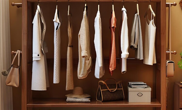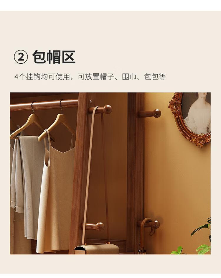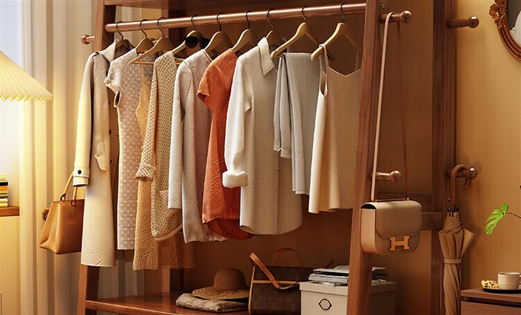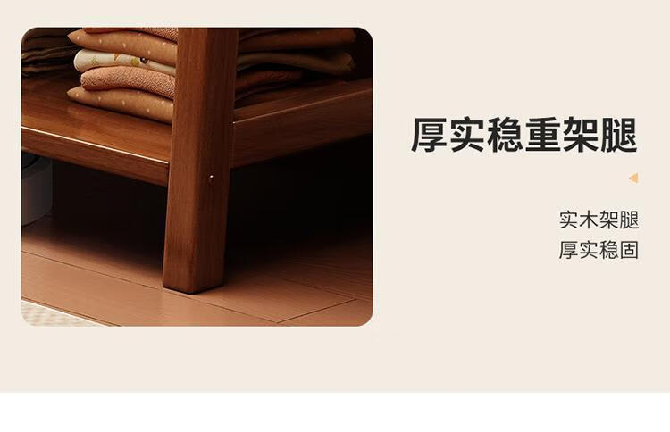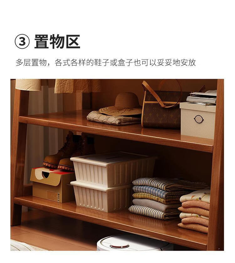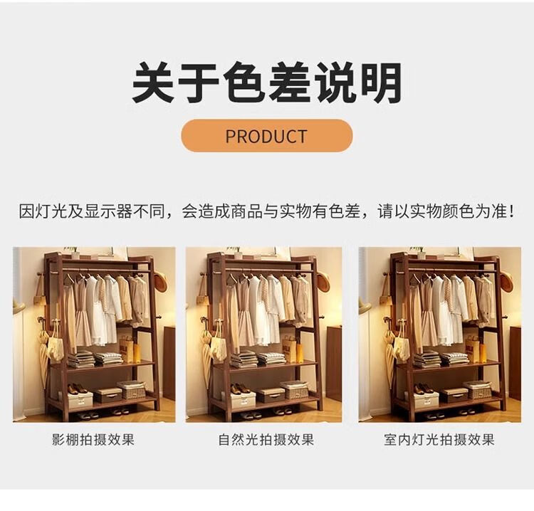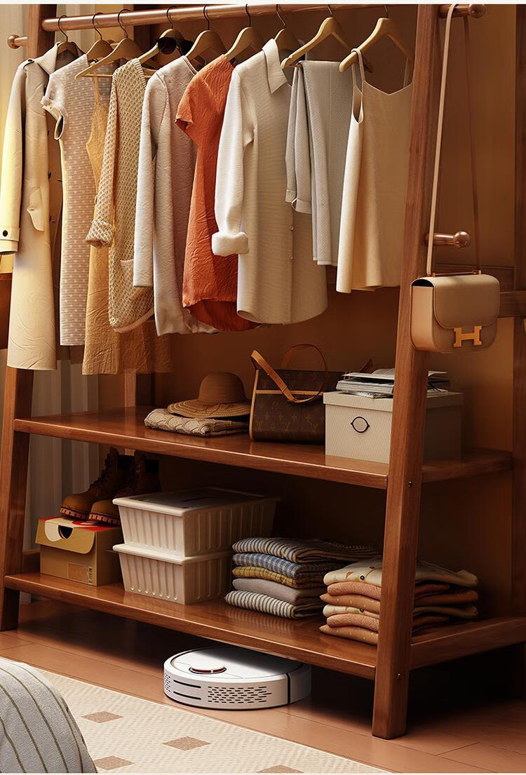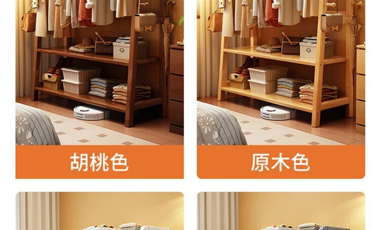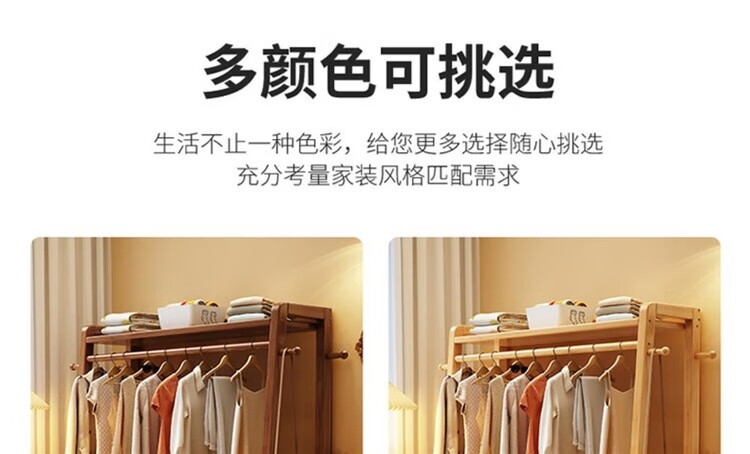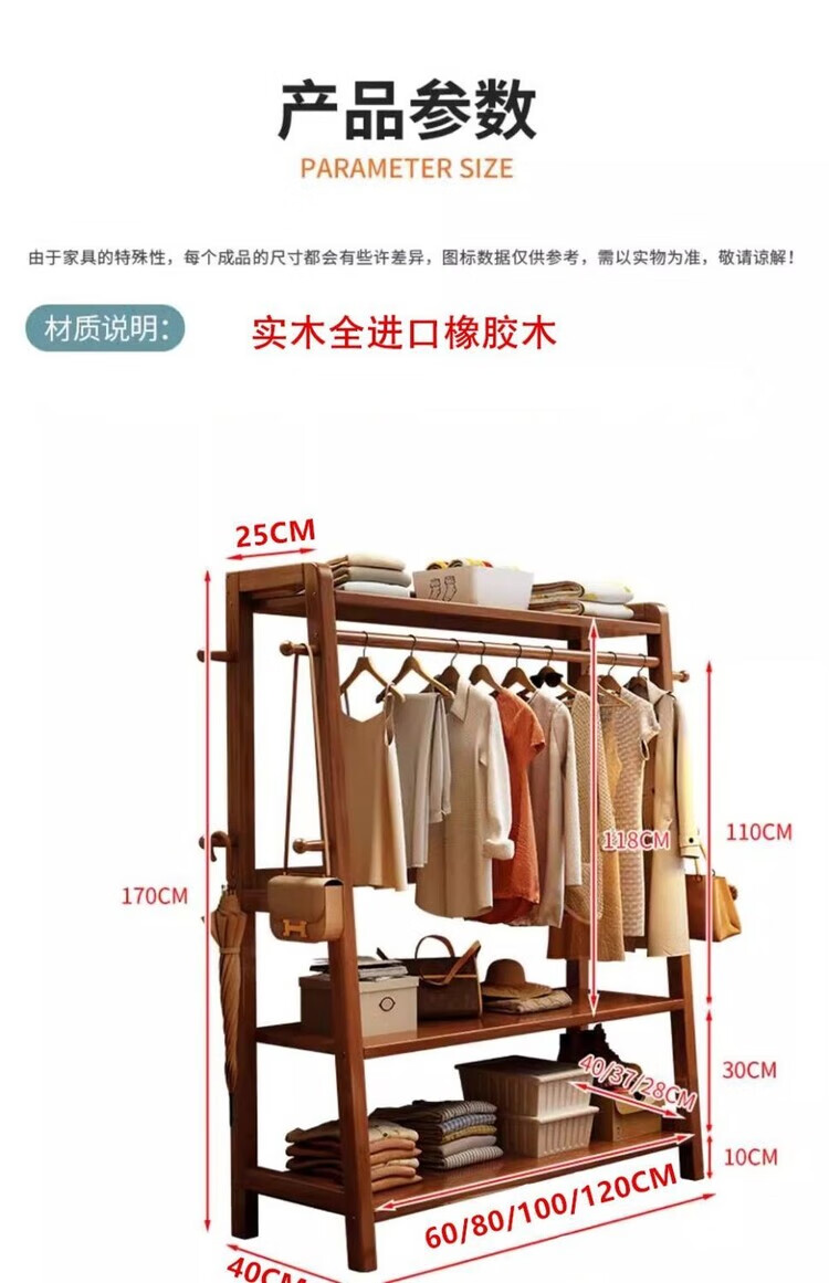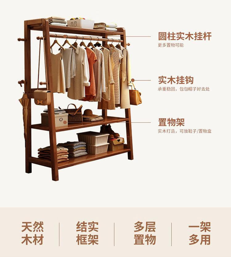 倘然之家实木衣架落地卧室挂衣架家用衣帽架房间简易放衣服架子床尾收纳架 原木色-长60宽40高170cm进口全实木