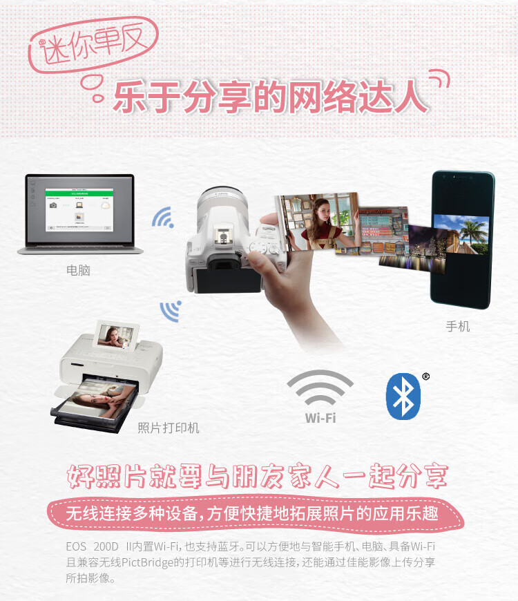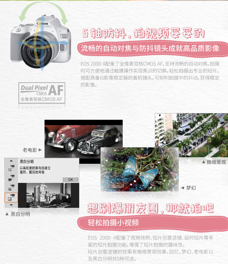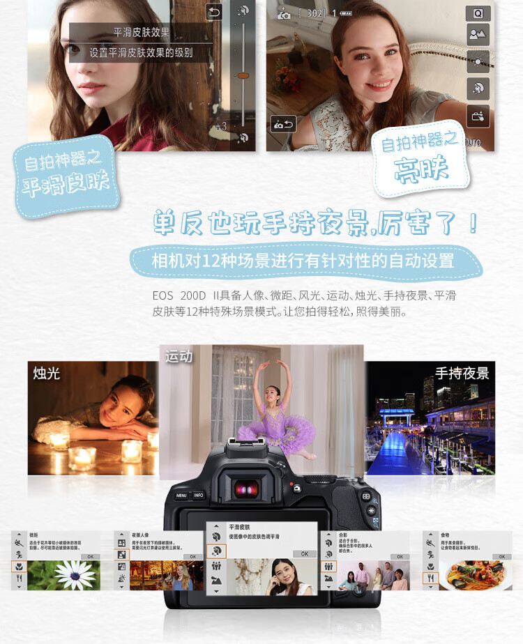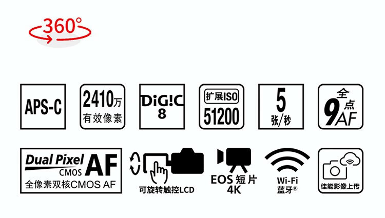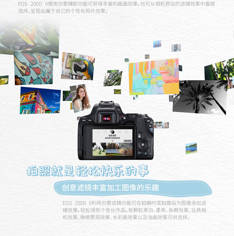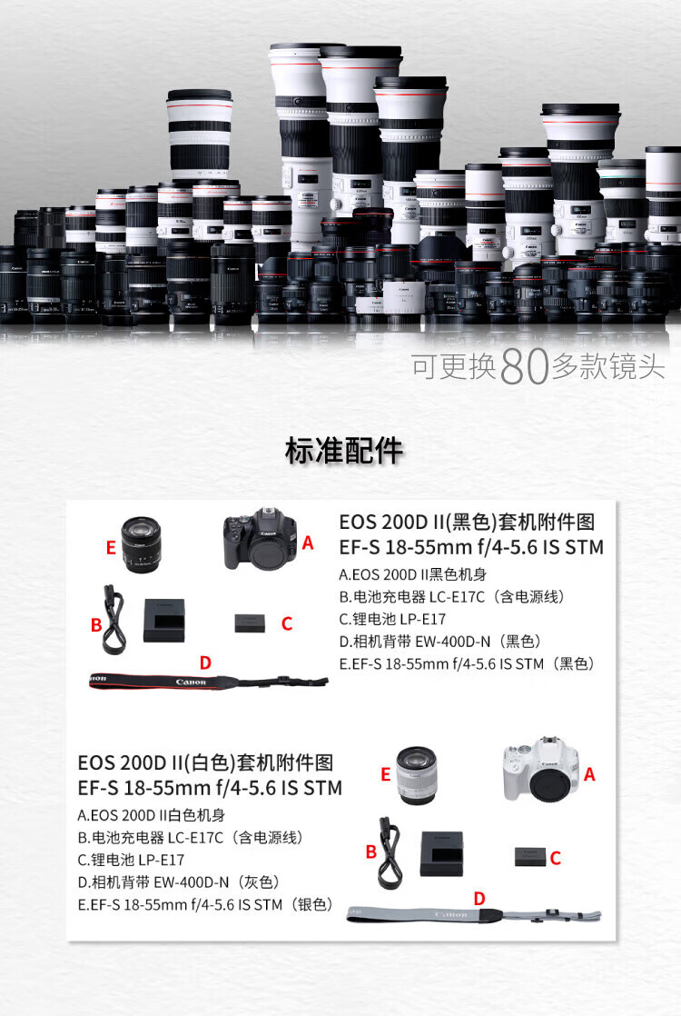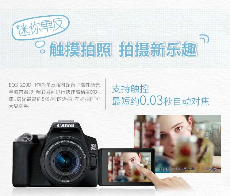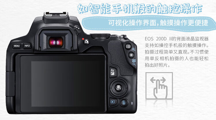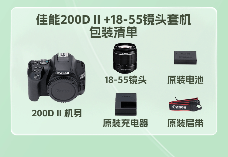 佳能(Canon)200D二代 200d2代 250D单反相机入门单反vlog迷你便携单反照相机 黑色200D II+EFS18-55mmSTM镜头 官方标配(机身+电池+肩带)
