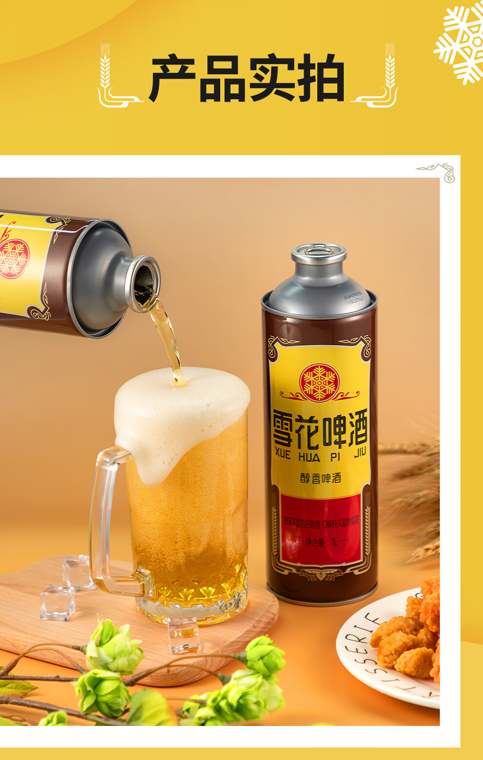 雪花啤酒(Snowbeer)经典老雪1L*6大罐锁鲜 180天保鲜精酿新年送礼
