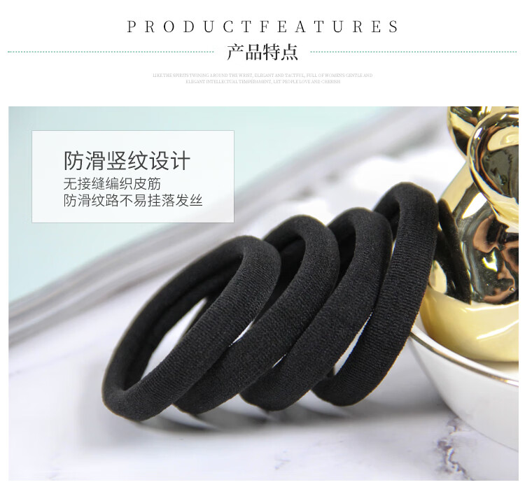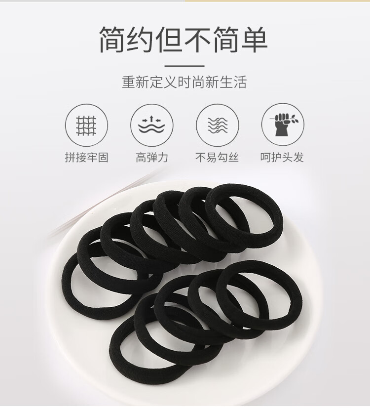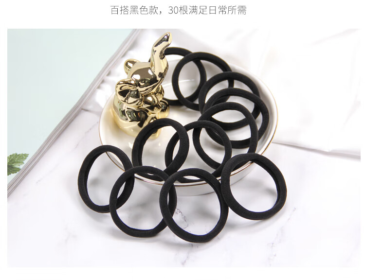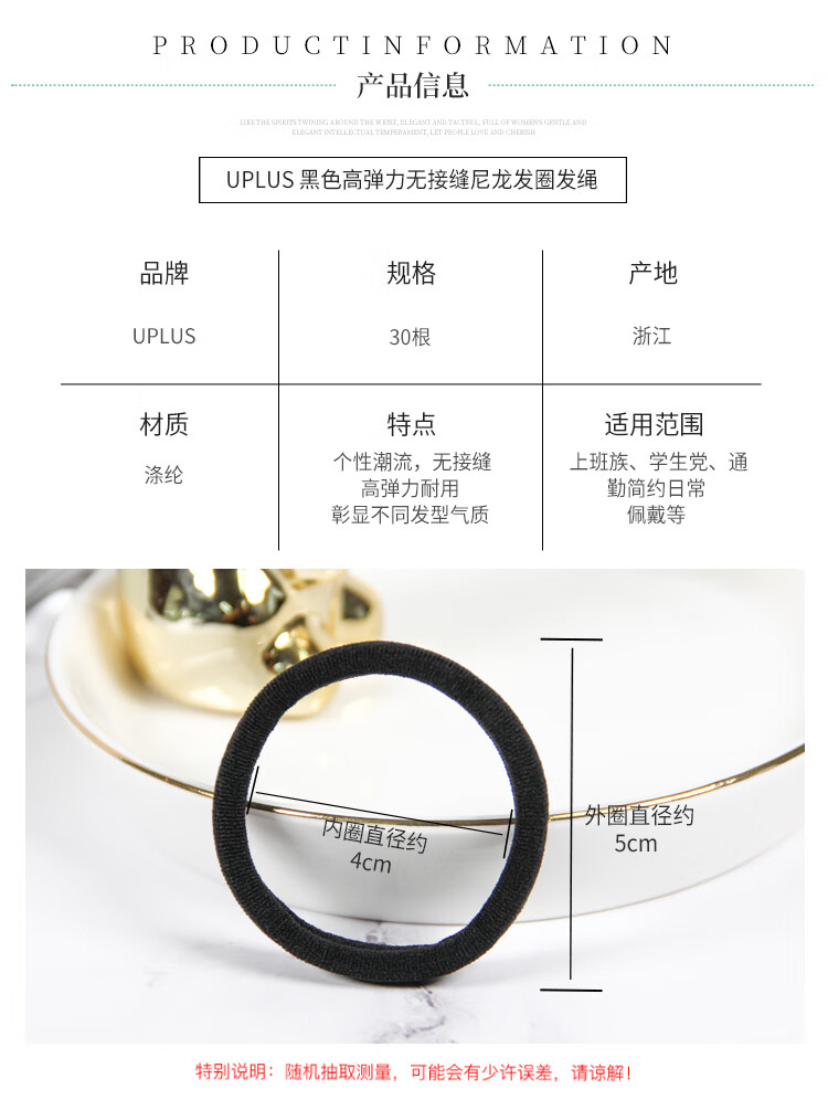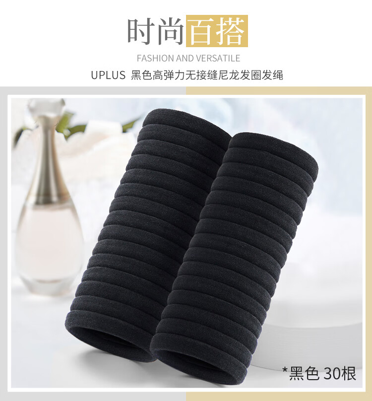 优家(UPLUS)无接缝头绳发圈发绳黑色30根 高弹力皮筋扎头发扎头绳橡皮筋皮套