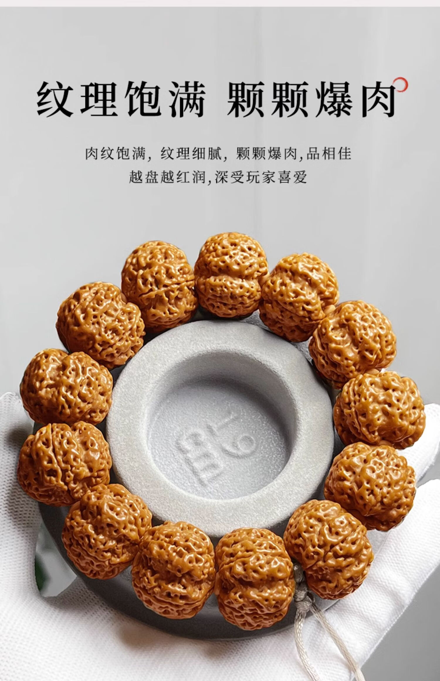 彩荷猴头土豪串京八棱小核桃手串凤羽猴头南瓜桩男女单圈佛珠文玩手链 典藏级.土豪串15mm(皮色佳