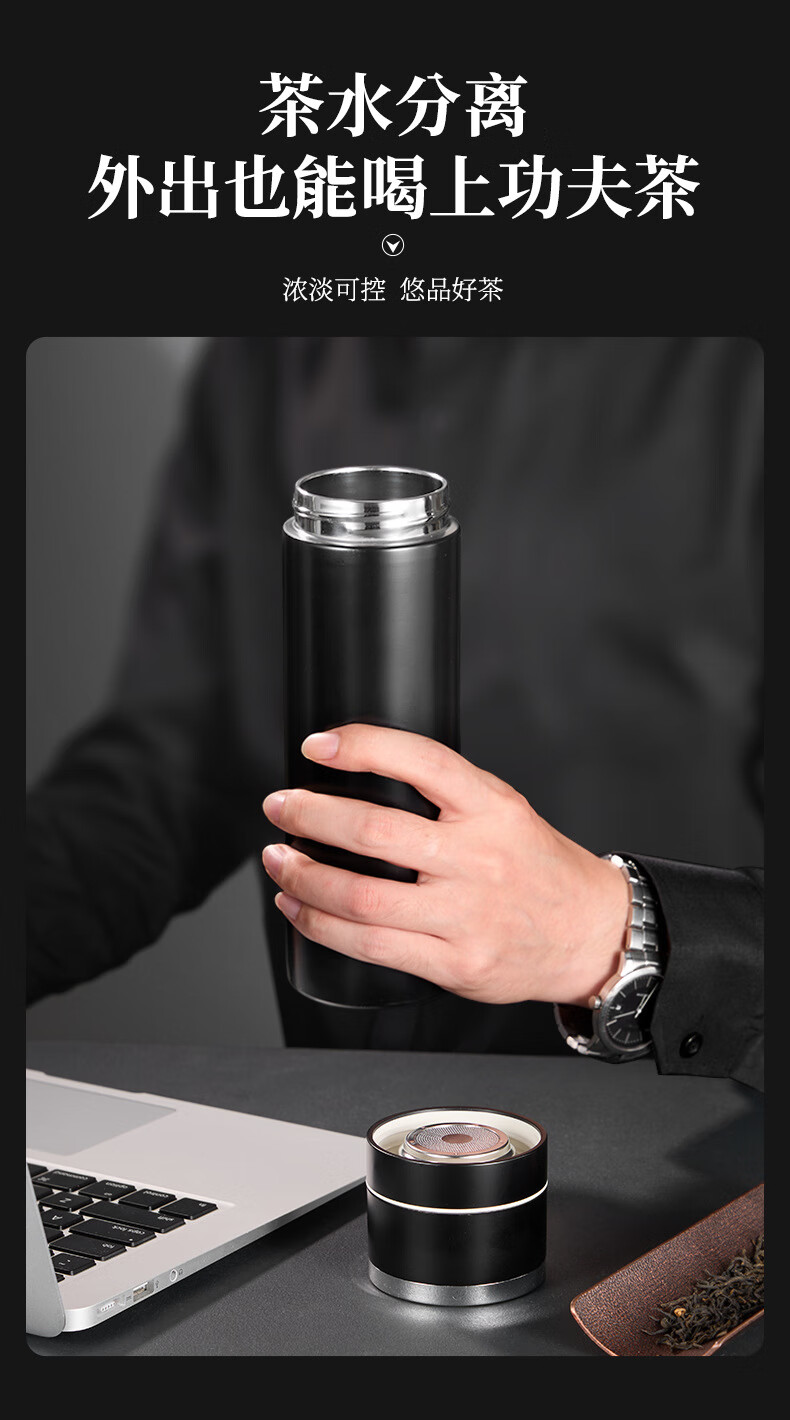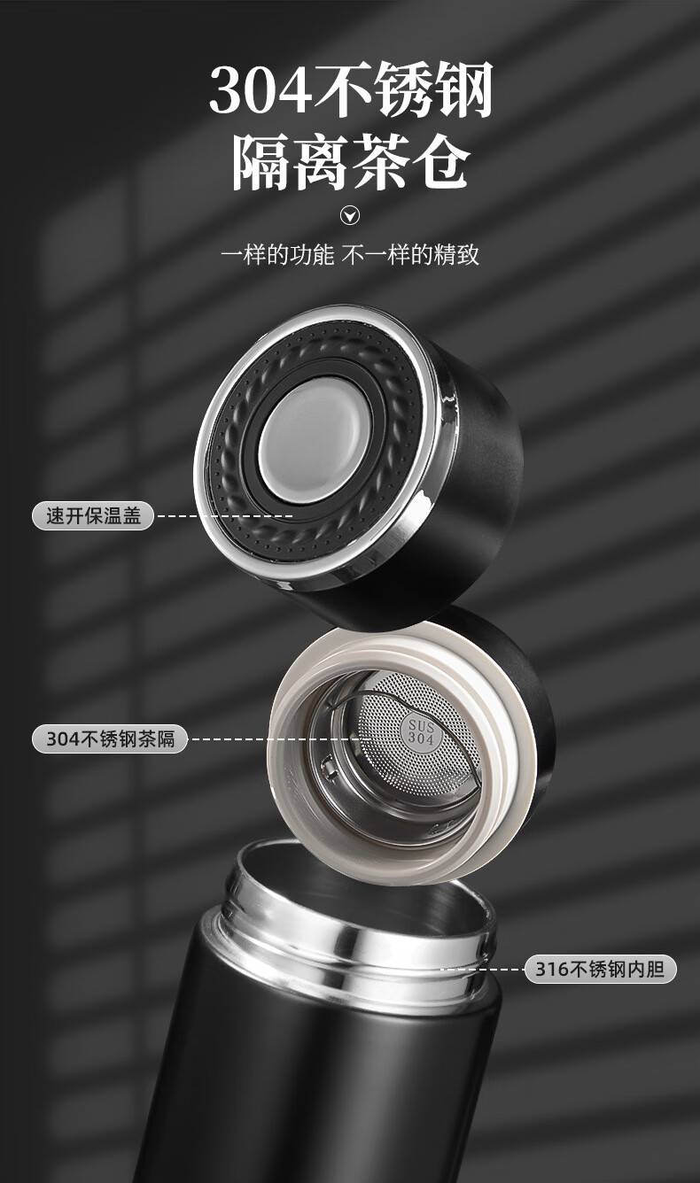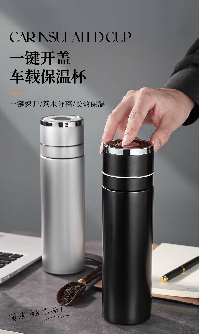 保温杯男款水杯2025新款茶水分离一键开盖车载316不锈钢杯子茶杯 600黑色+提绳 500-600ml