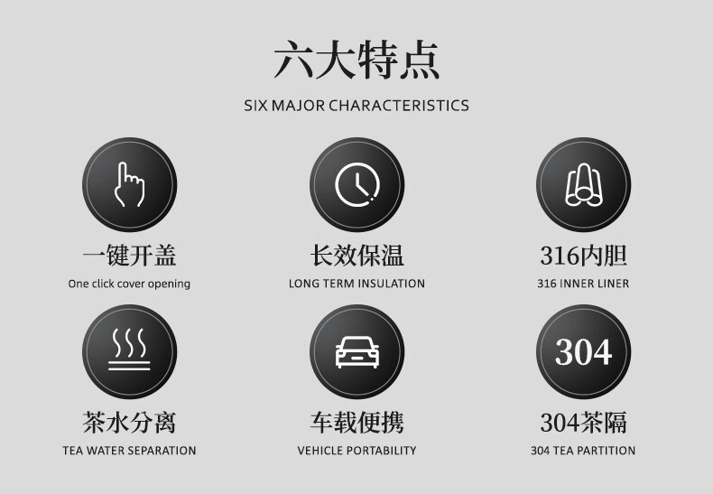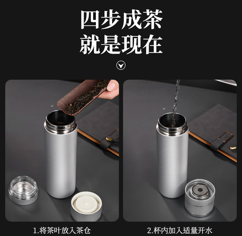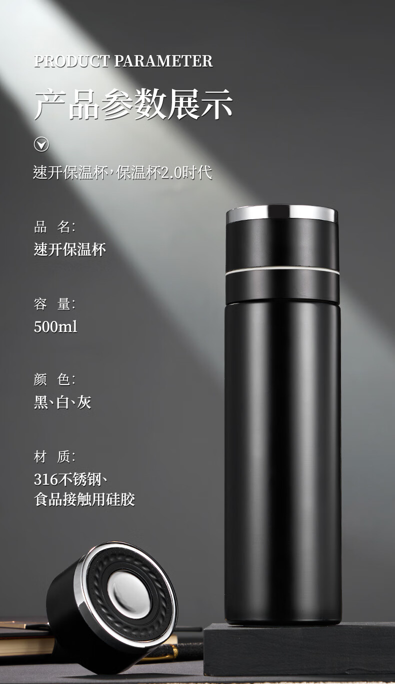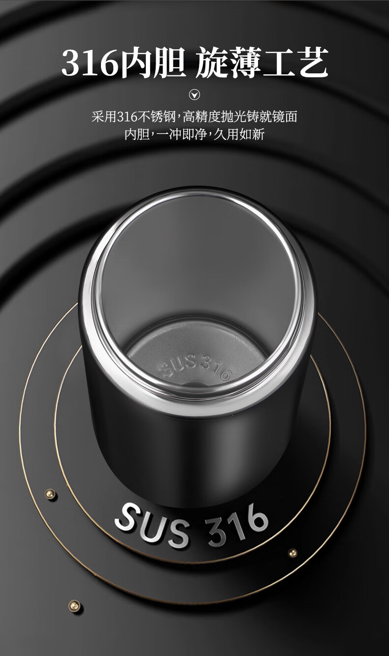 保温杯男款水杯2025新款茶水分离一键开盖车载316不锈钢杯子茶杯 600黑色+提绳 500-600ml