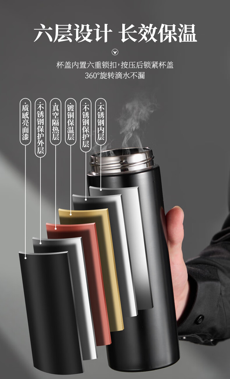 富光 男女士真空不锈钢保温杯 旅行运动水杯子 便携式车载办公茶杯 幽冥黑 500ml