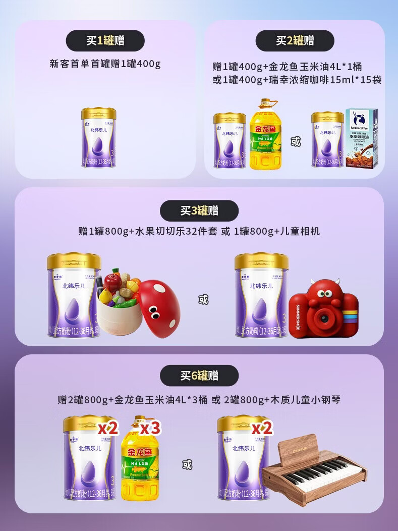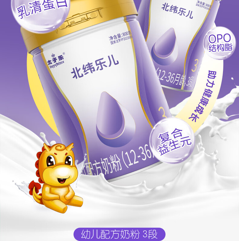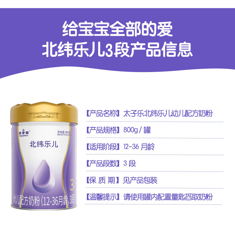太子乐(Taizile)【购6罐赠2罐】北纬乐儿配方奶粉3段(12-36个月幼儿适用)800g 3段 【购6罐赠2罐800g】 800g 6罐