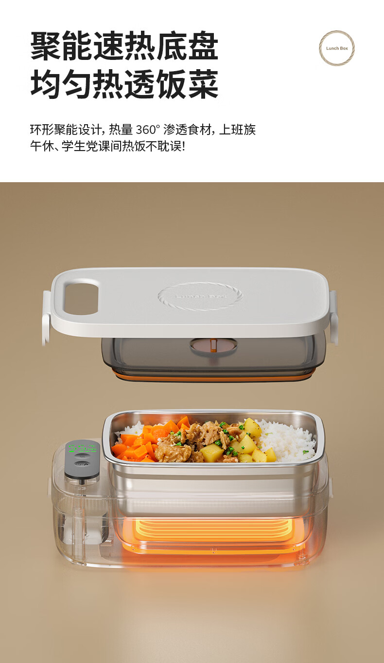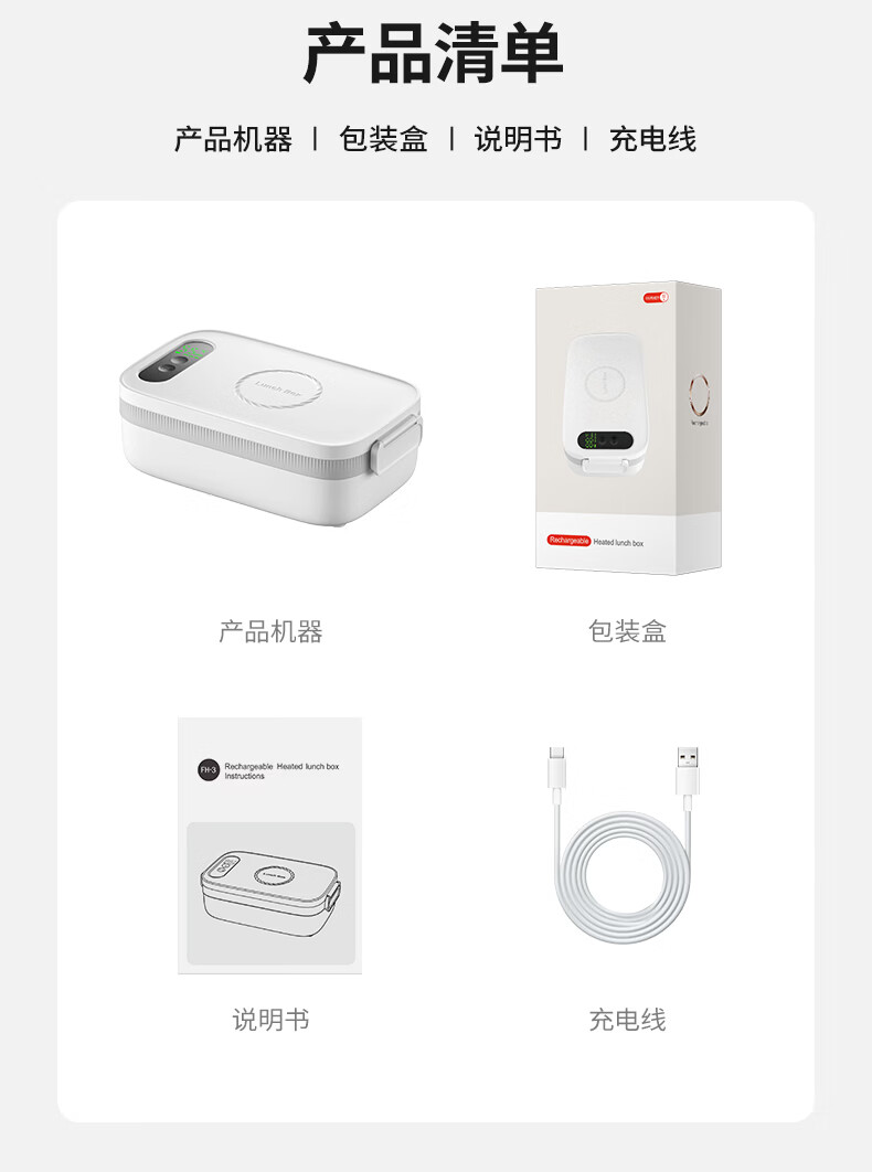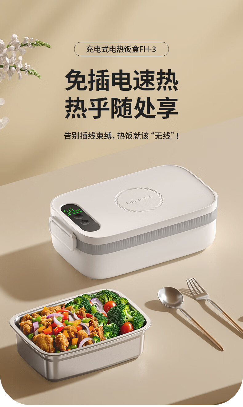 物克无线加热饭盒便当智能温控定时不插电免注水自热饭菜神器usb充电保温上班学生电热饭盒 1L 白色【18W快充/16000毫安+食品级内胆】