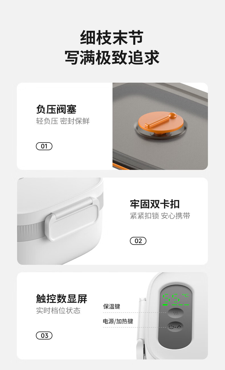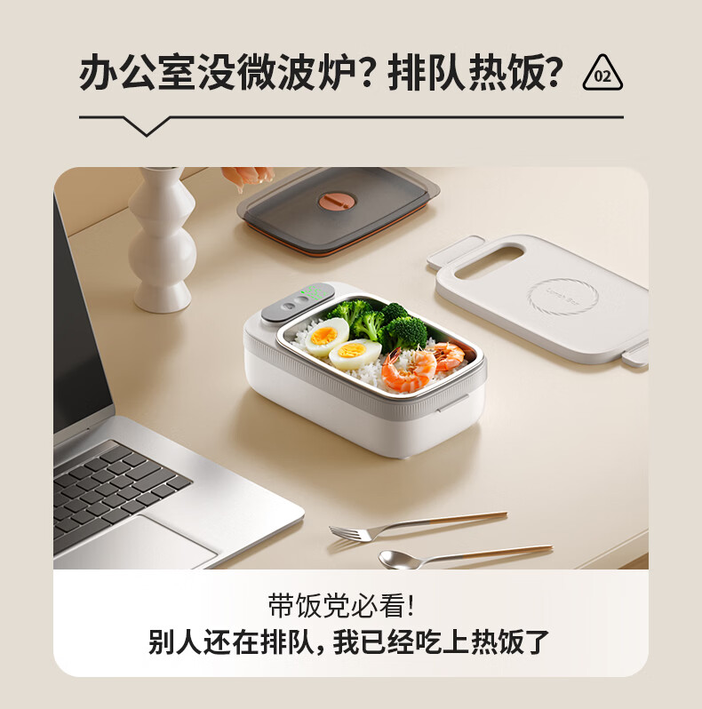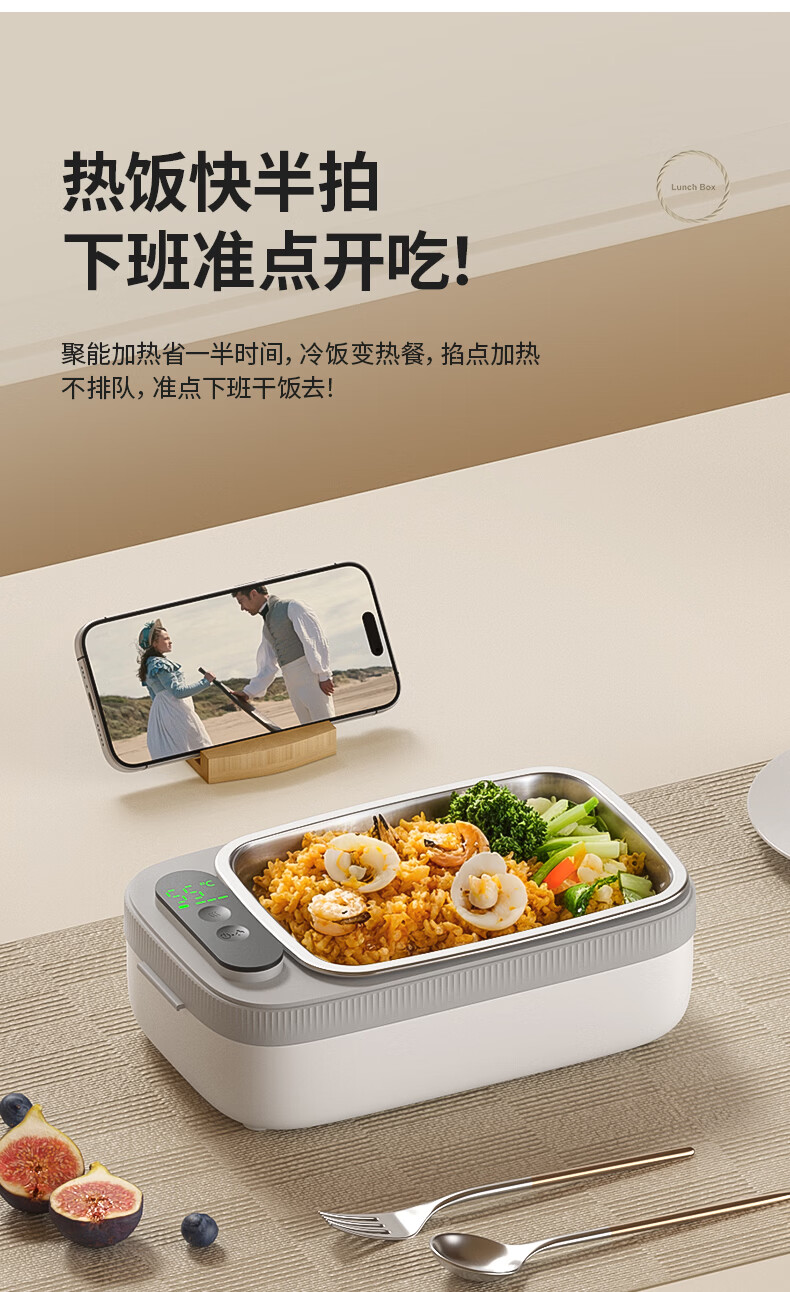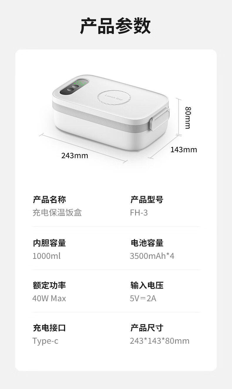物克无线加热饭盒便当智能温控定时不插电免注水自热饭菜神器usb充电保温上班学生电热饭盒 1L 白色【18W快充/16000毫安+食品级内胆】