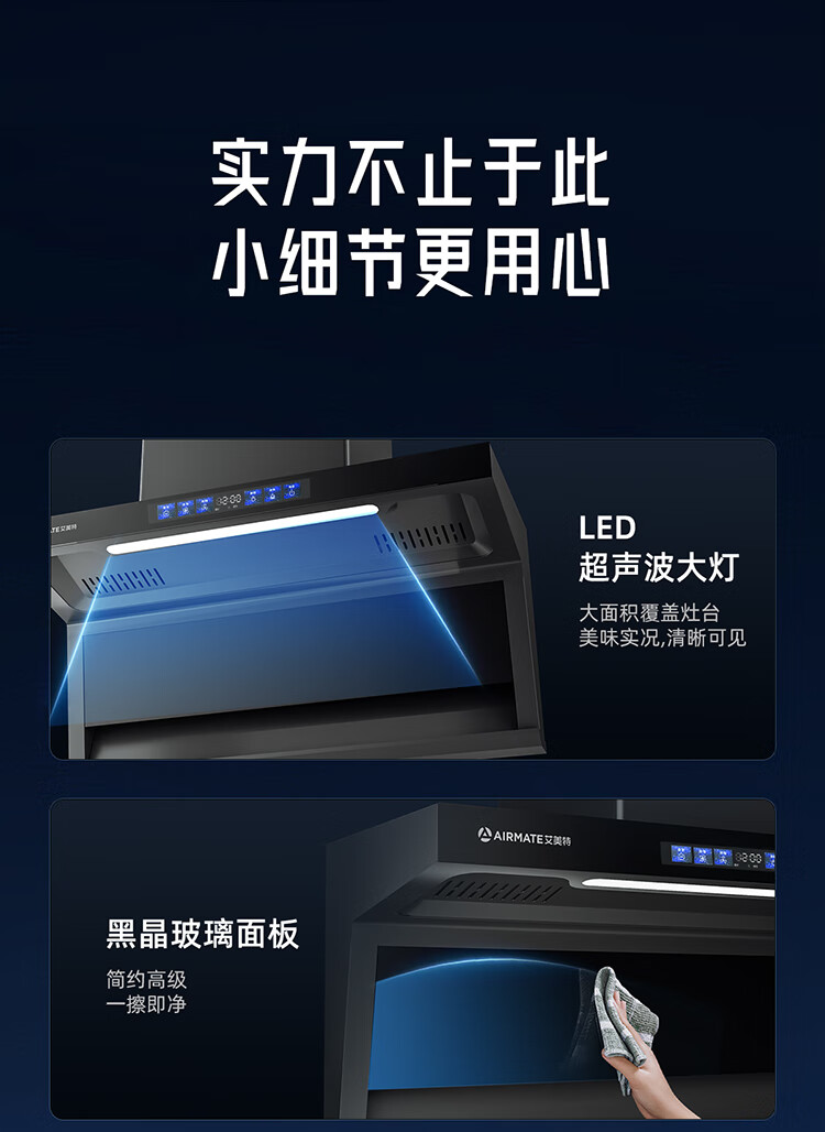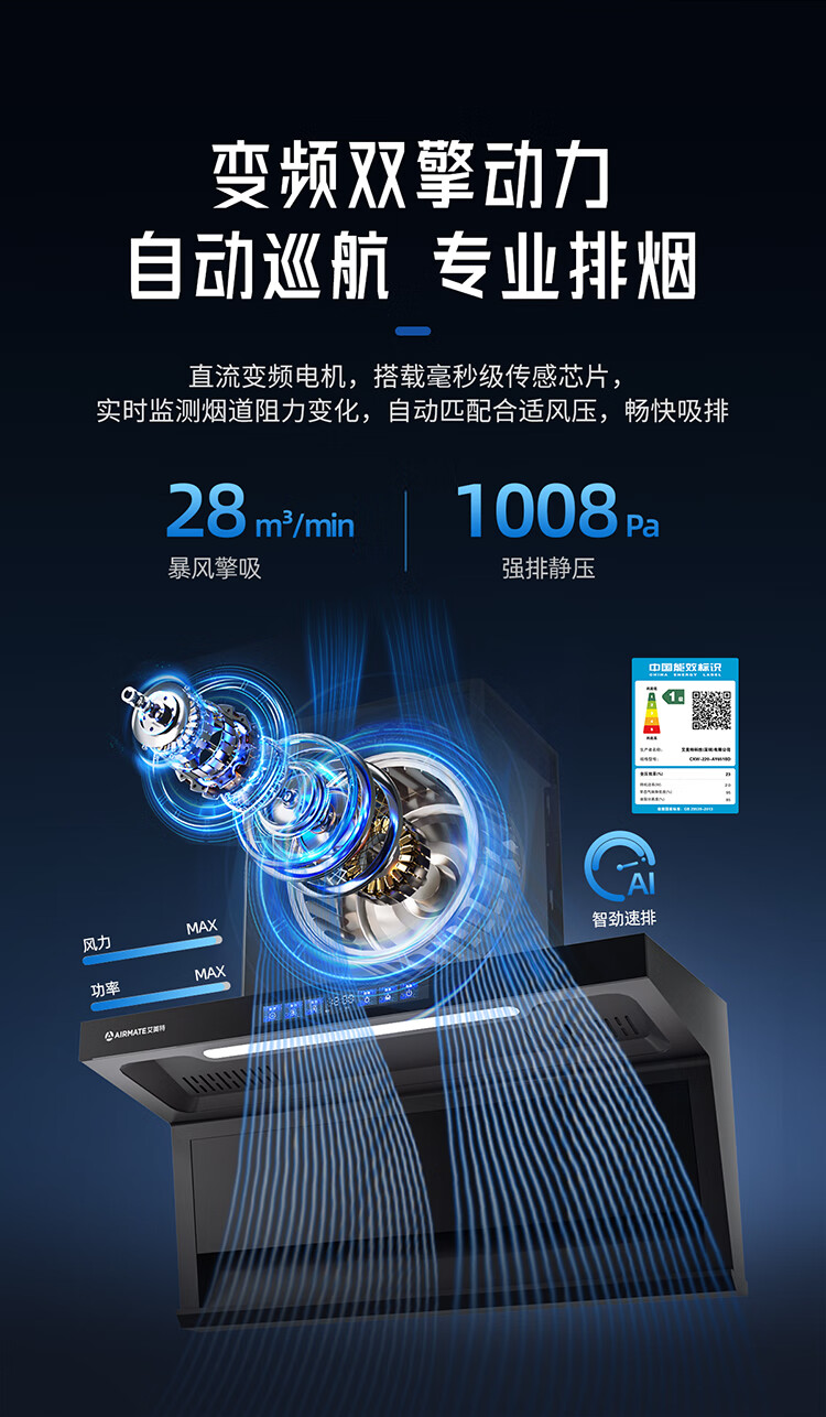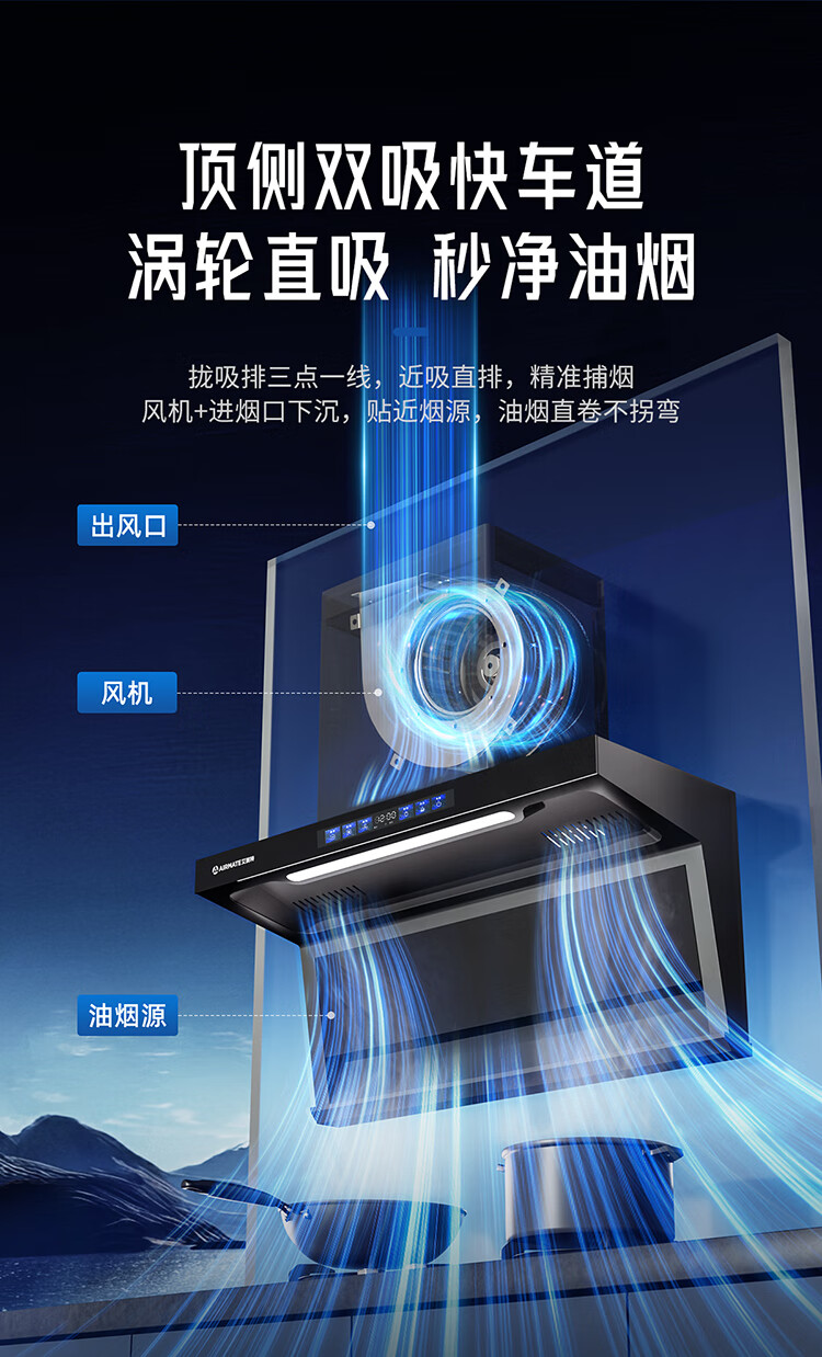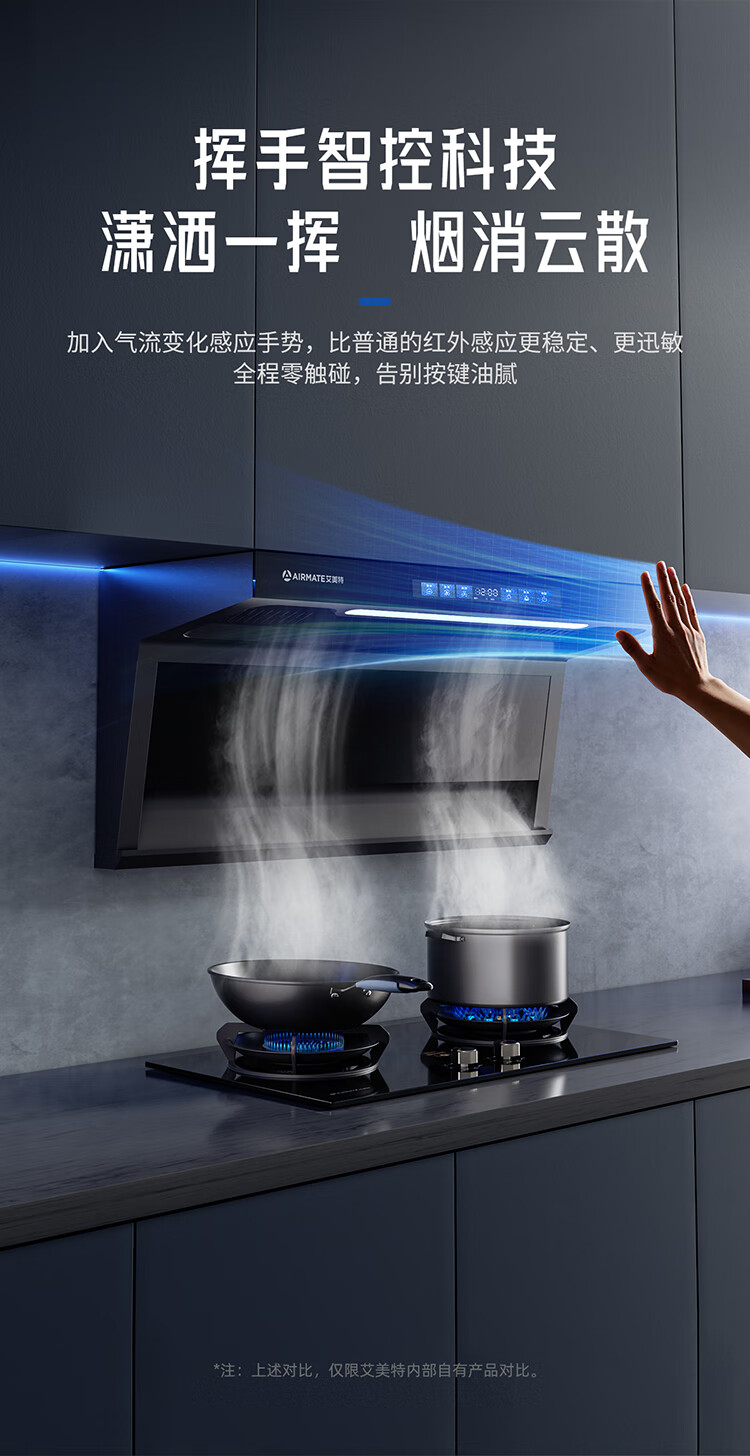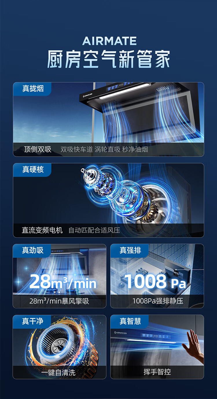 艾美特 AIRMATE油烟机 28大风量家用变频一级能效顶侧双吸大吸力 挥手控制低噪音自动清洗抽烟机 V6/V6T 【顶侧双吸烟机】28m³变频+挥手智控