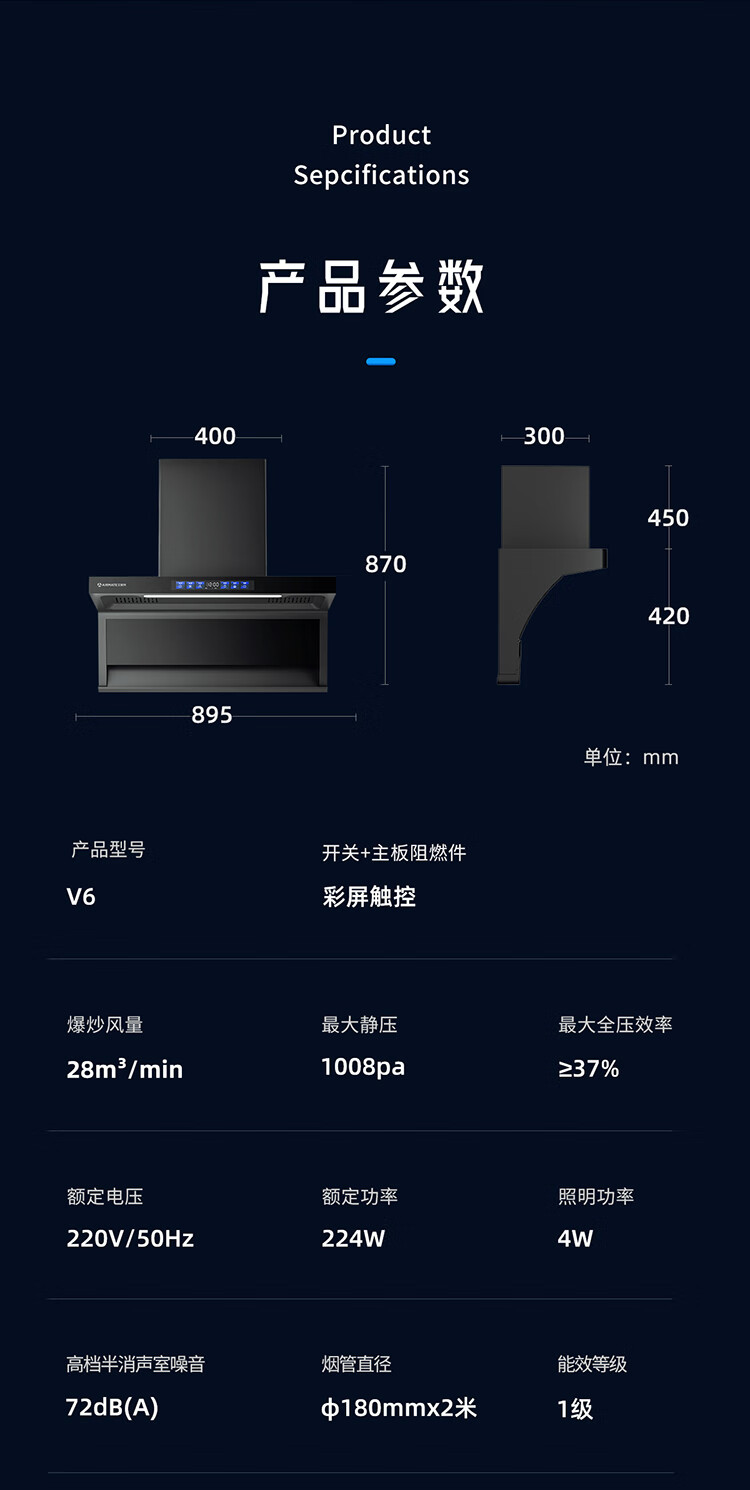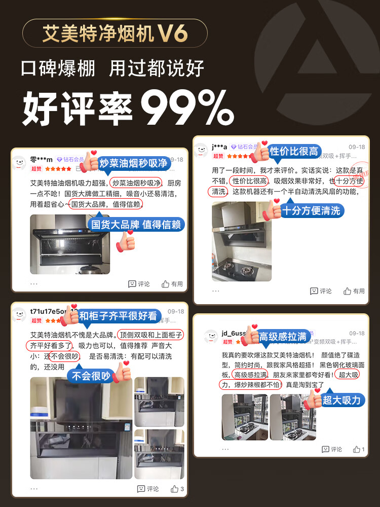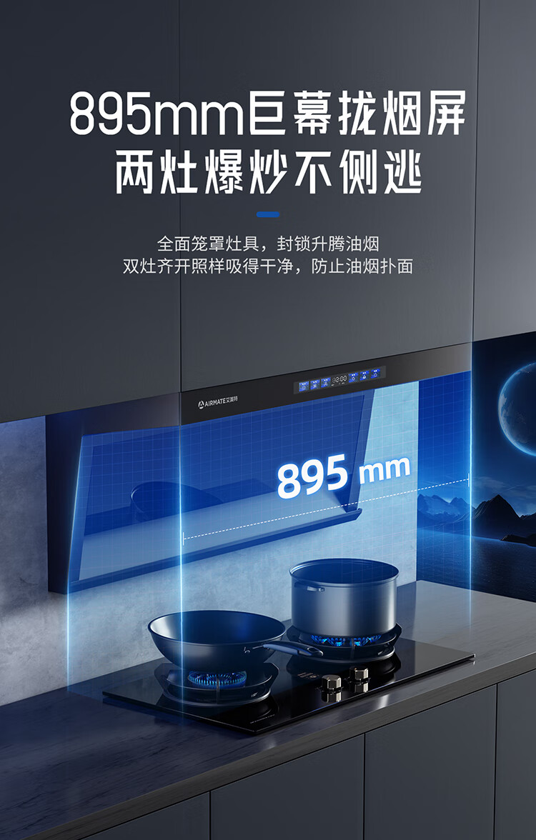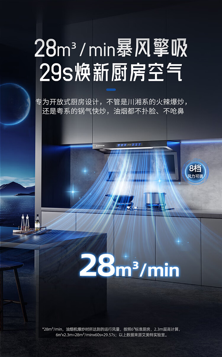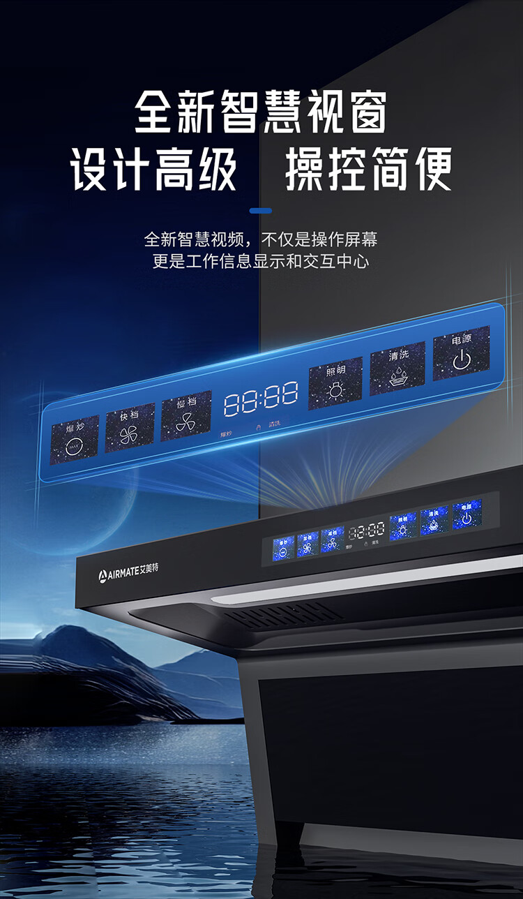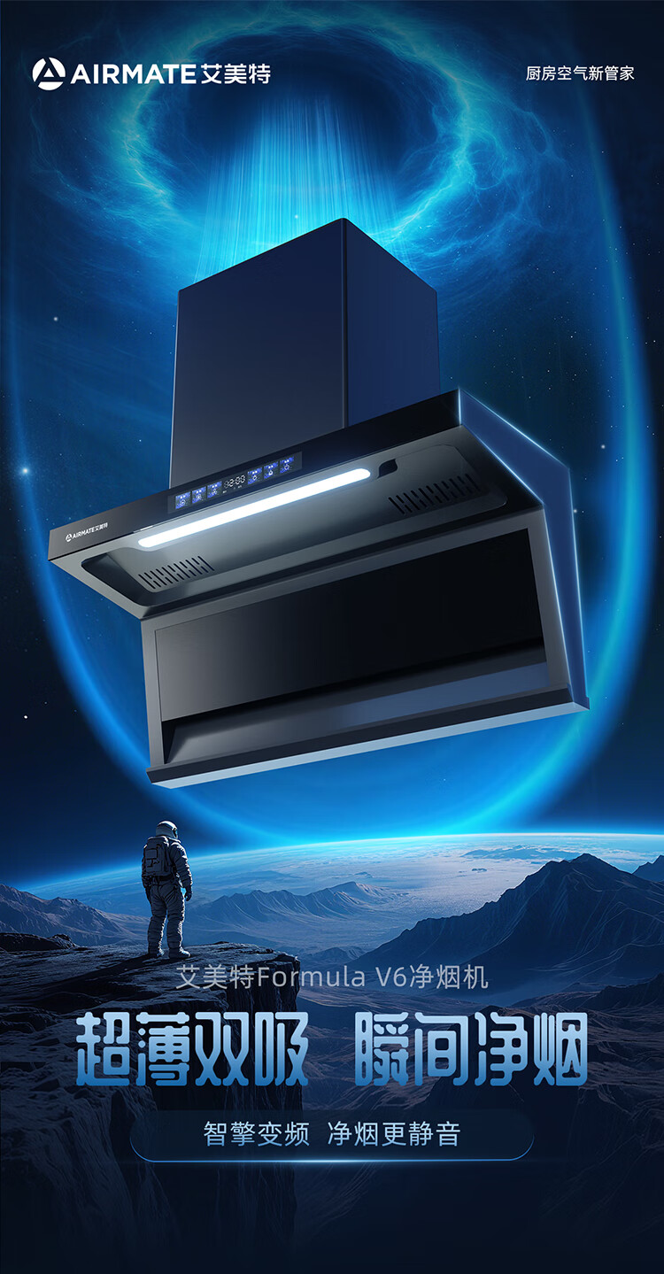 艾美特 AIRMATE油烟机 28大风量家用变频一级能效顶侧双吸大吸力 挥手控制低噪音自动清洗抽烟机 V6/V6T 【顶侧双吸烟机】28m³变频+挥手智控