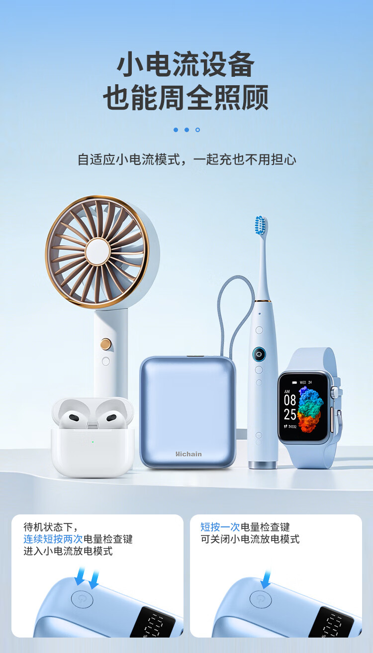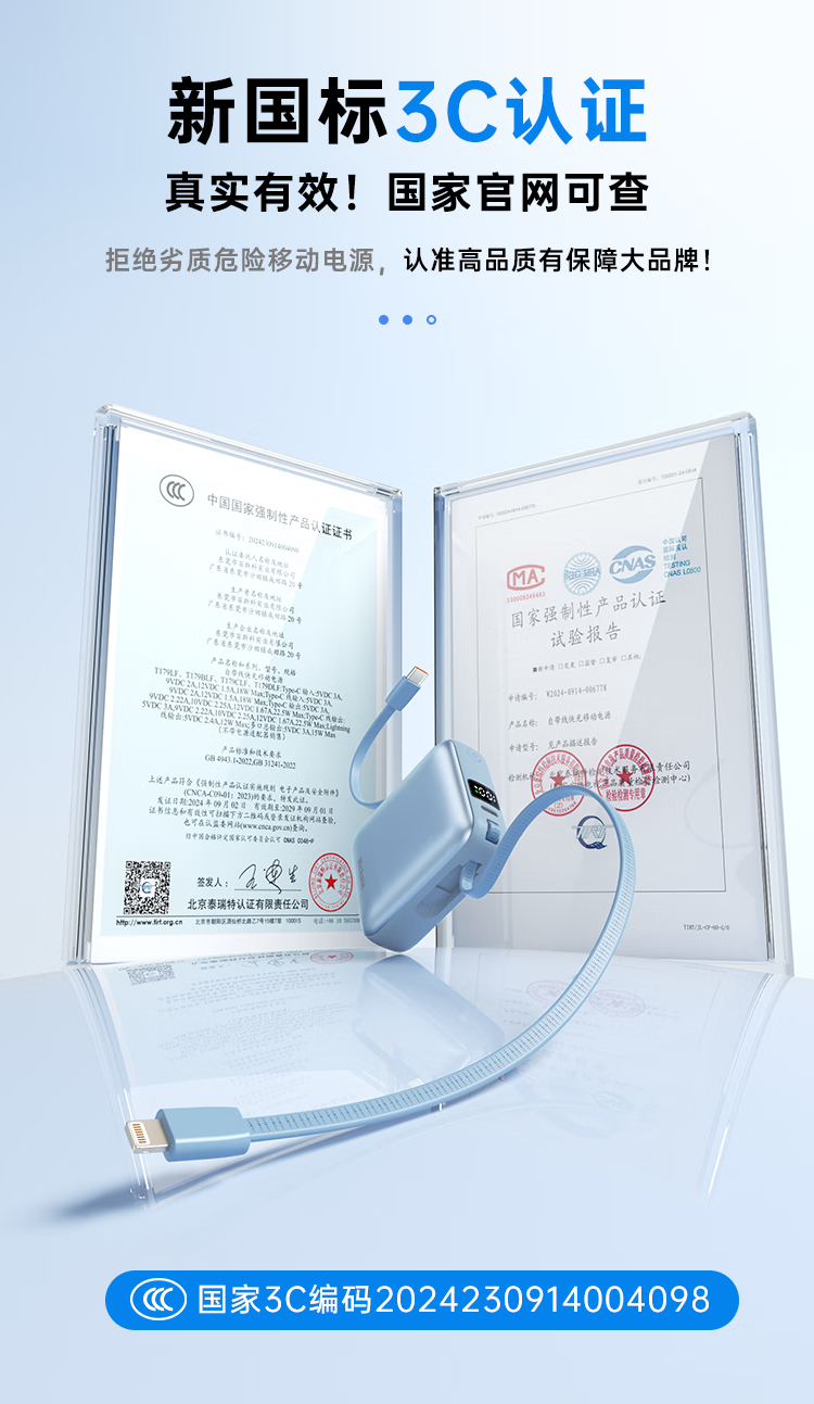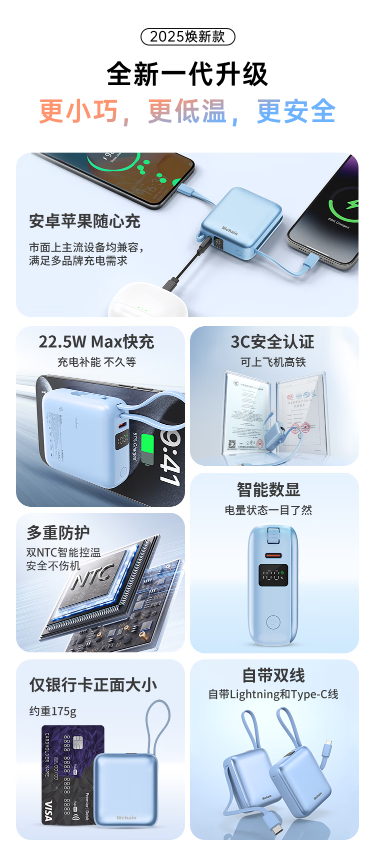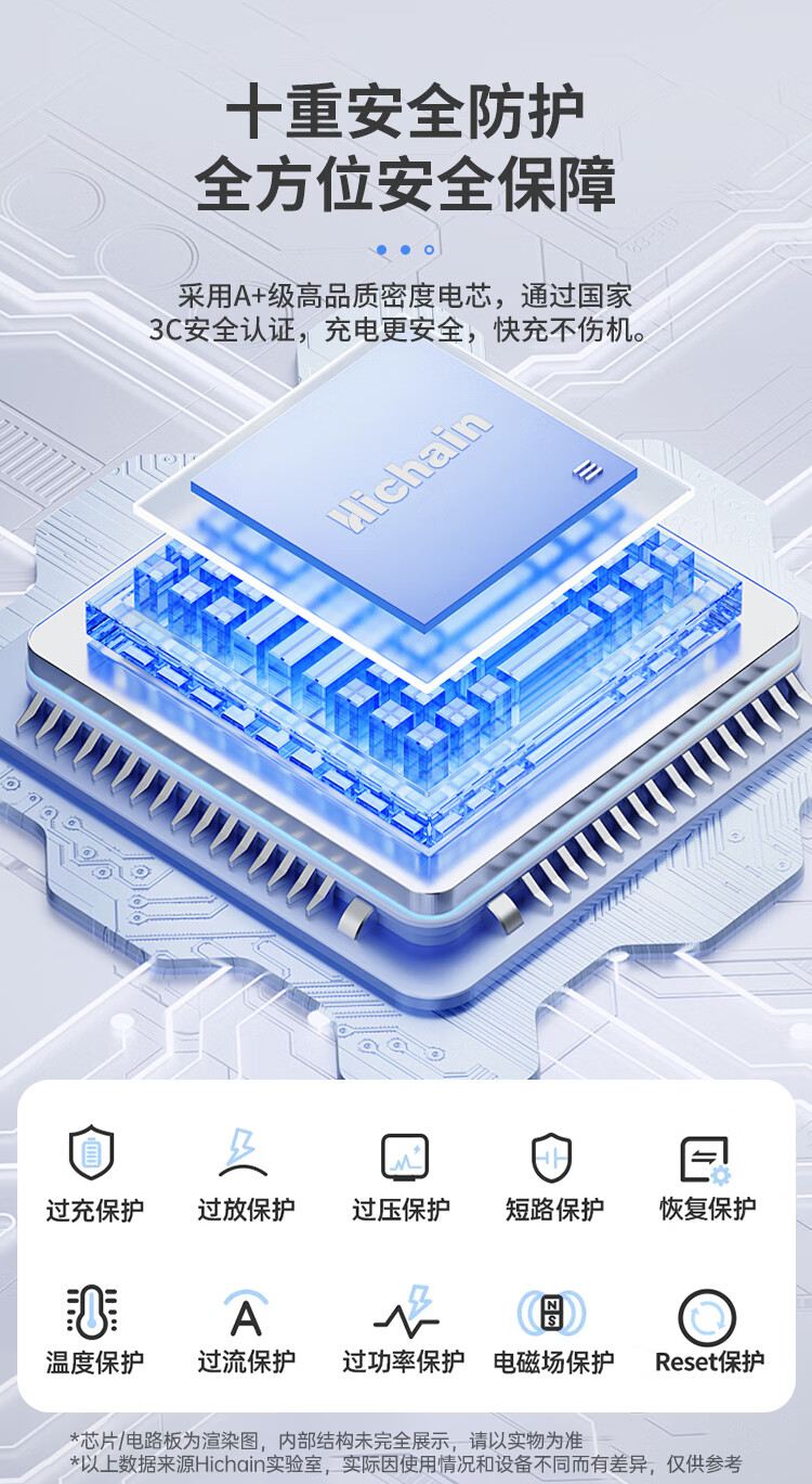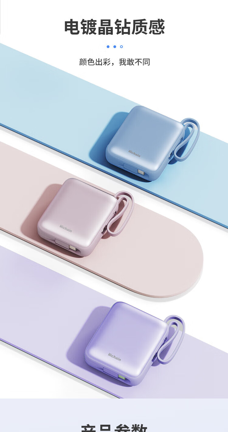 Hichain和昌【国标3C认证可上飞机】充电宝10000毫安22.5W自带双线迷你小巧快充移动电源适用苹果17华为