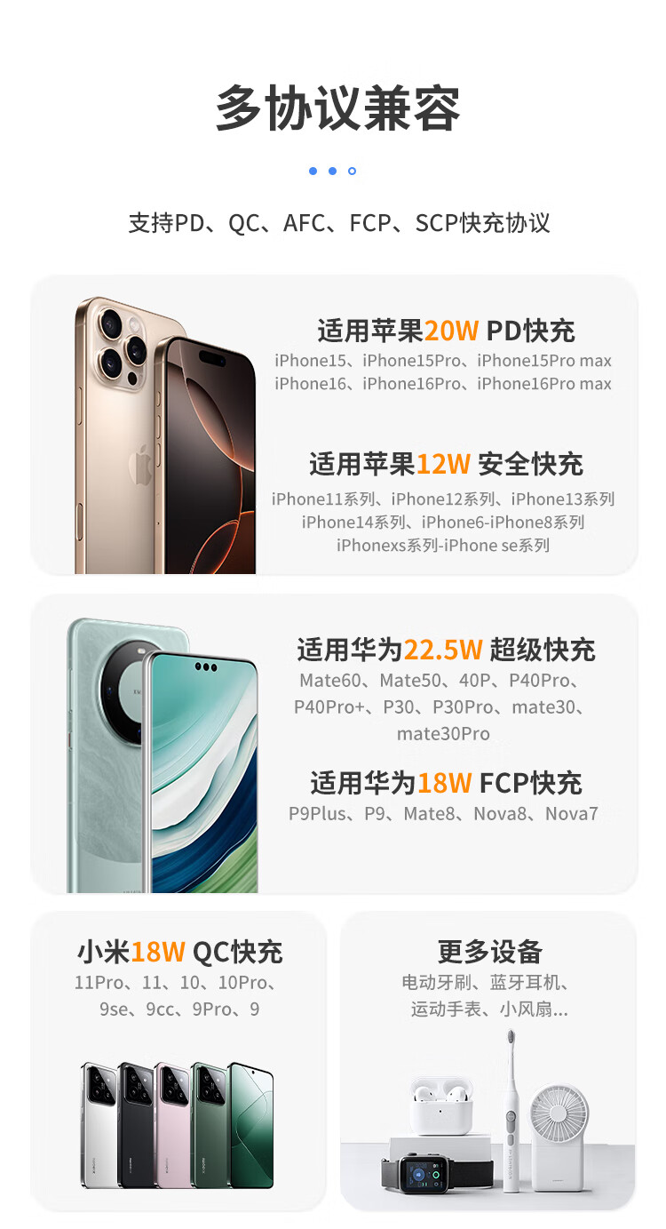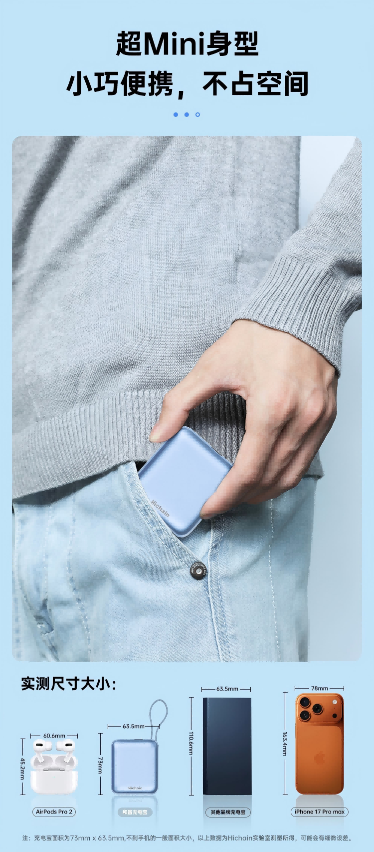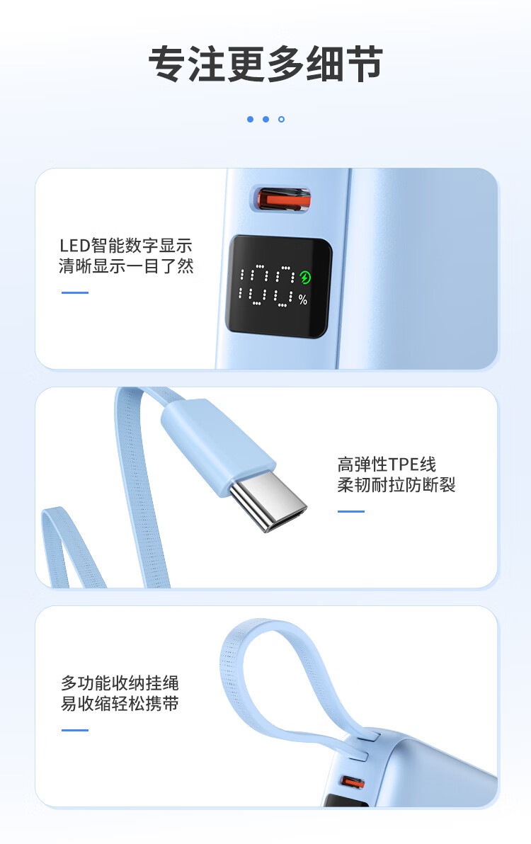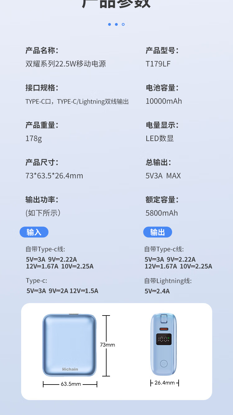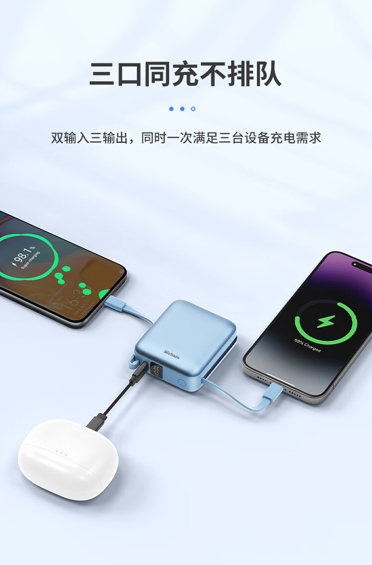 Hichain和昌【国标3C认证可上飞机】充电宝10000毫安22.5W自带双线迷你小巧快充移动电源适用苹果17华为