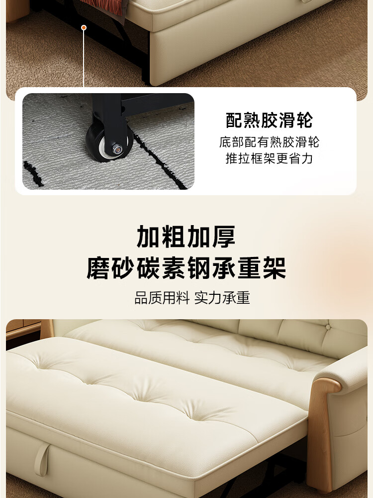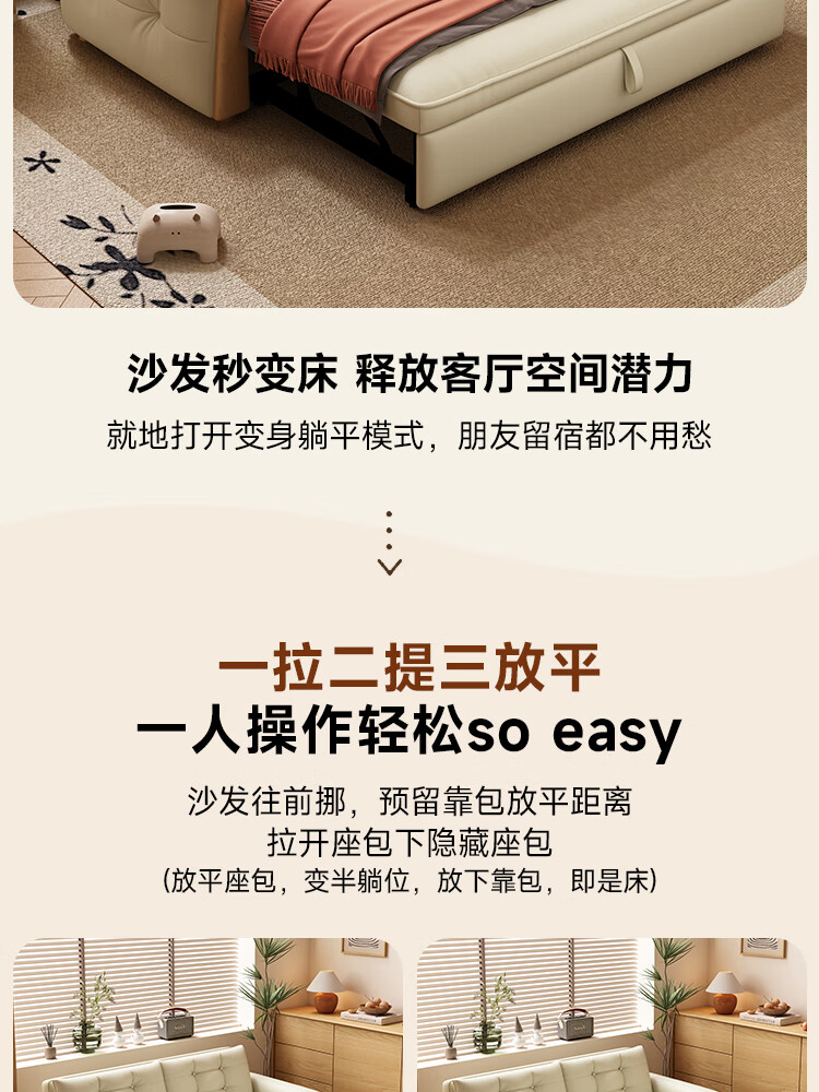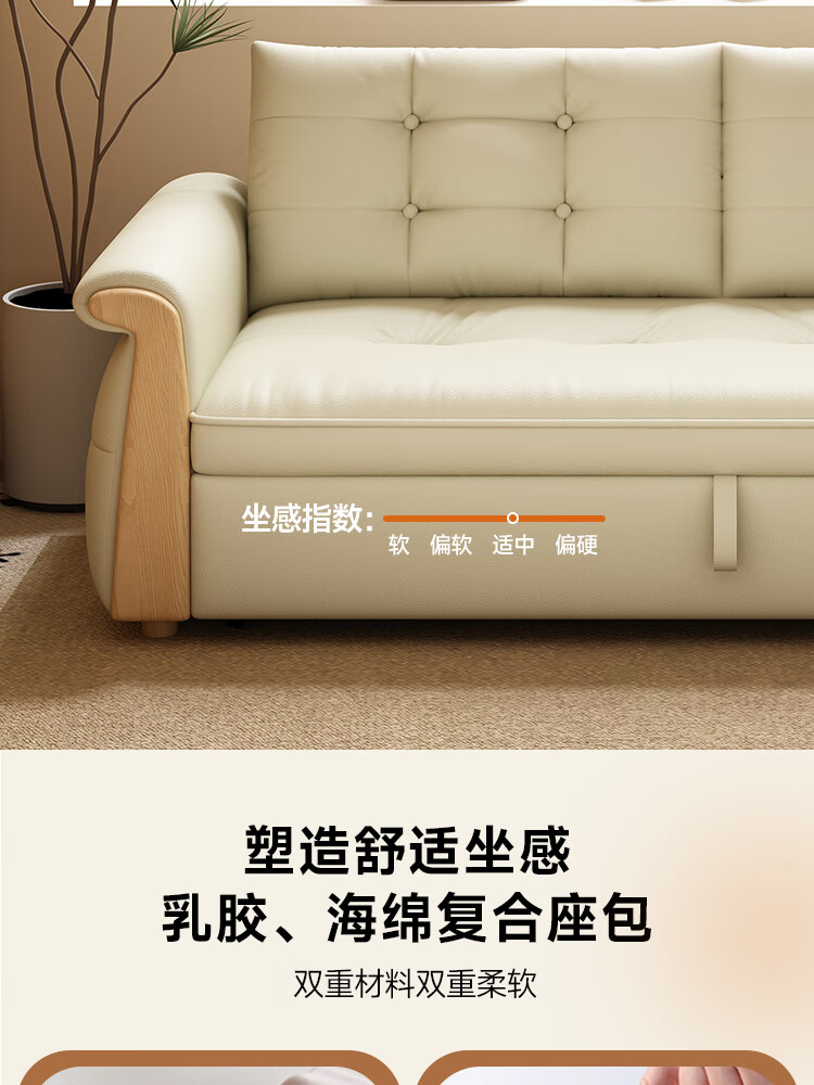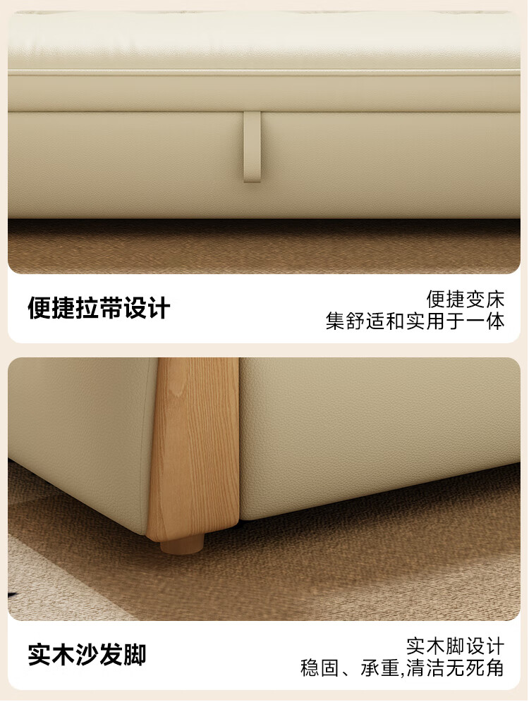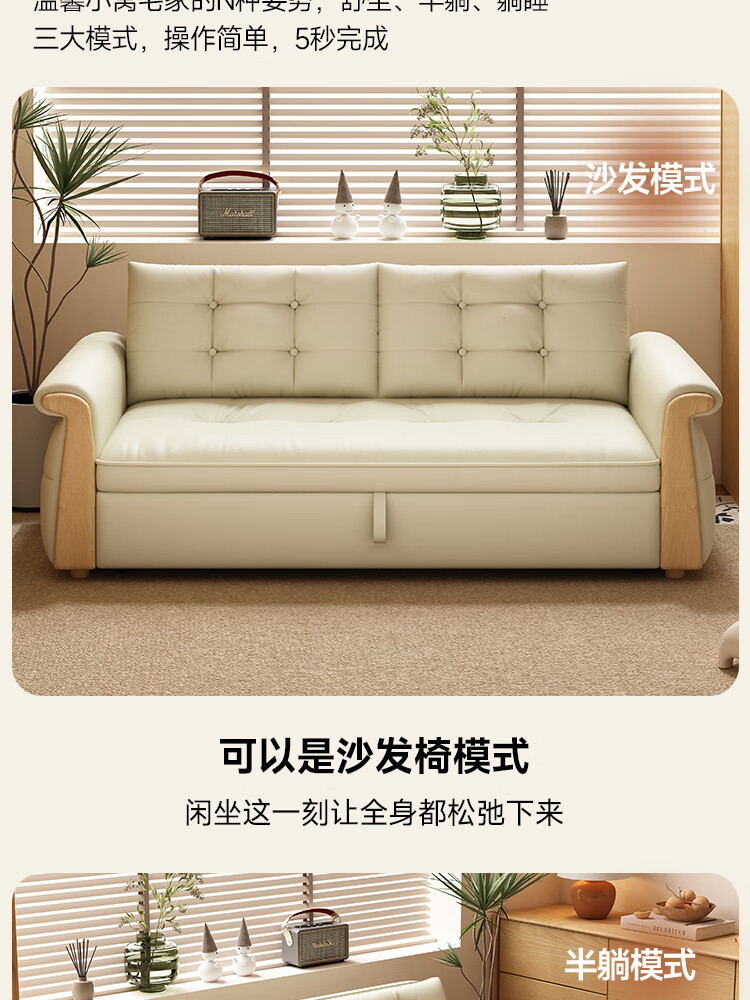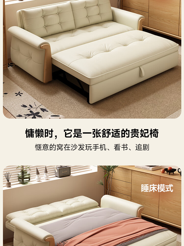 哈森诗丹折叠沙发床一体两用2025新款可睡觉小户型客厅二合一伸缩真皮沙发 外宽:1.28m(三档调节靠背) 45D无粉海绵款(加厚1.5MM猫抓皮)