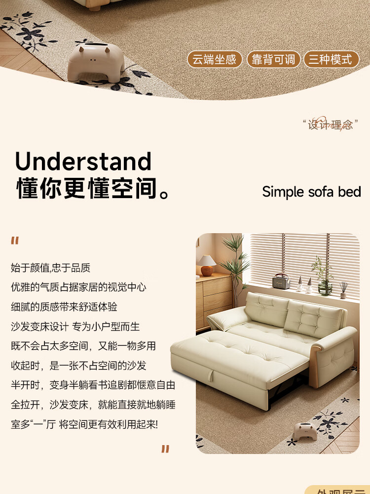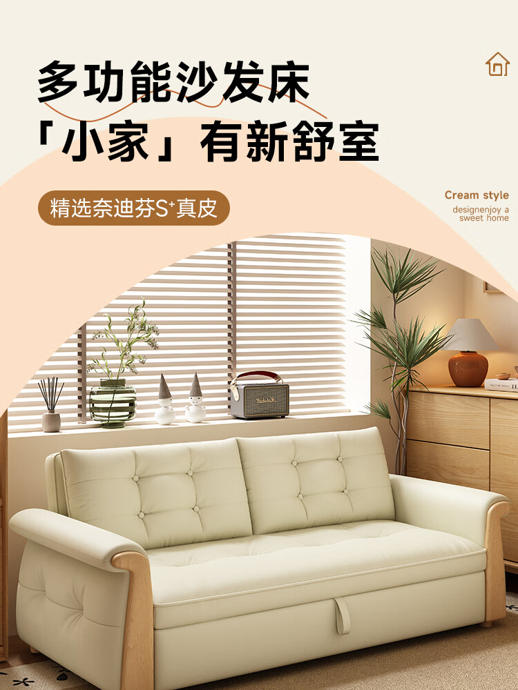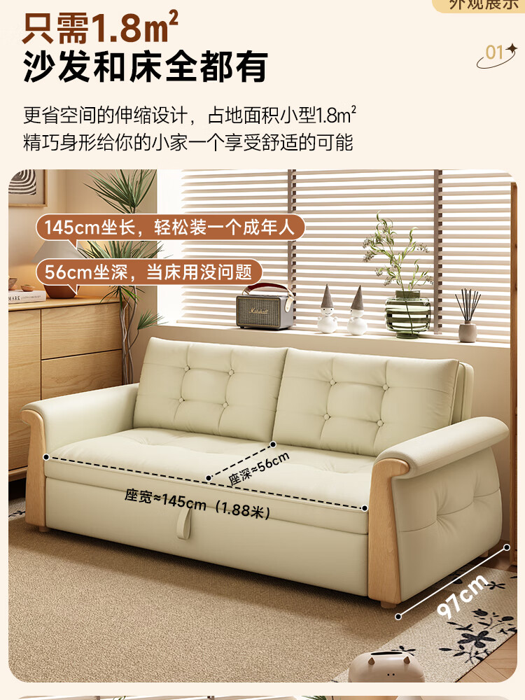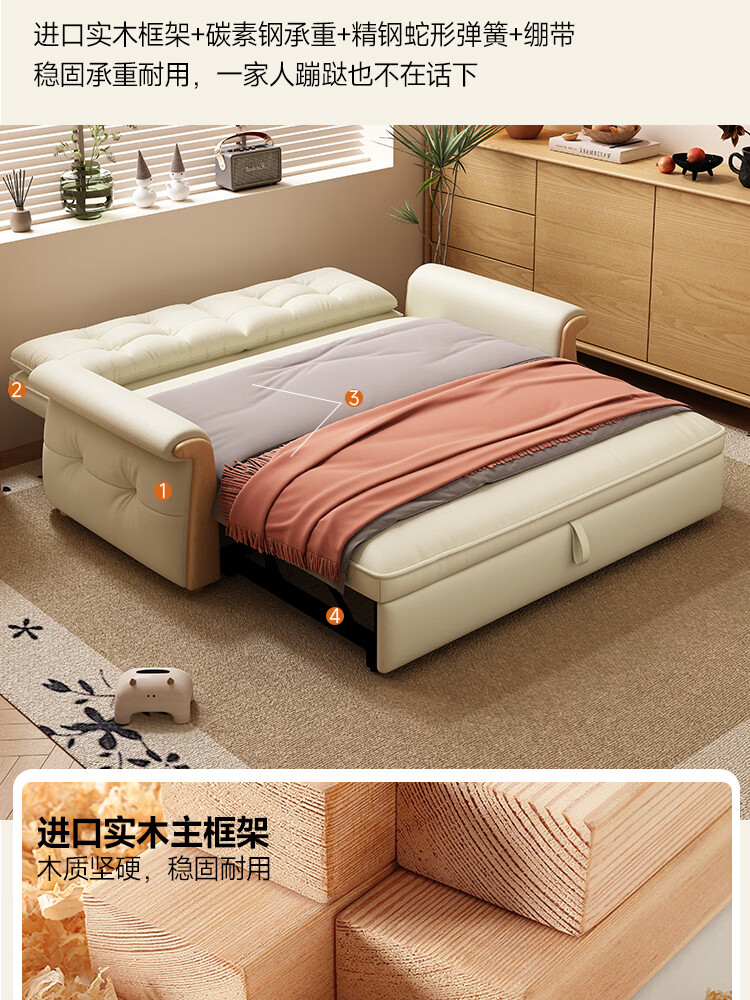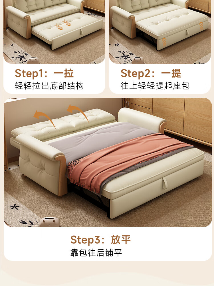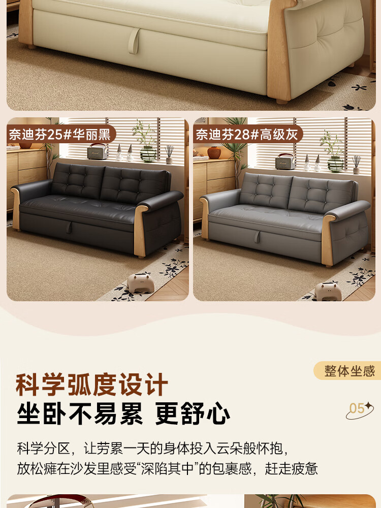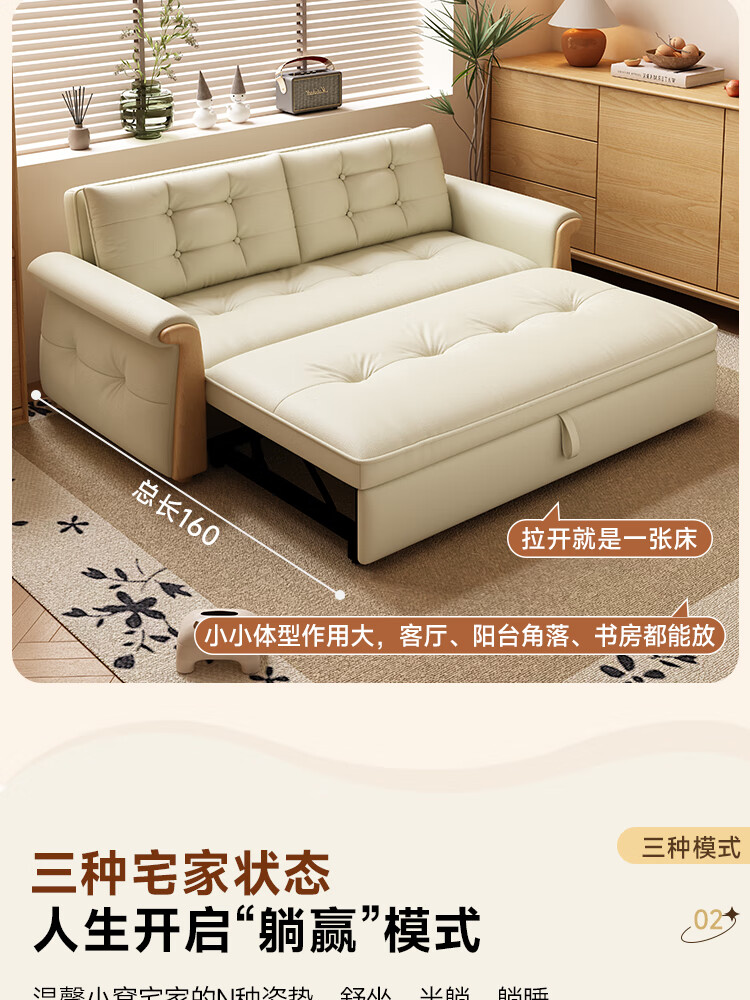 哈森诗丹折叠沙发床一体两用2025新款可睡觉小户型客厅二合一伸缩真皮沙发 外宽:1.28m(三档调节靠背) 45D无粉海绵款(加厚1.5MM猫抓皮)