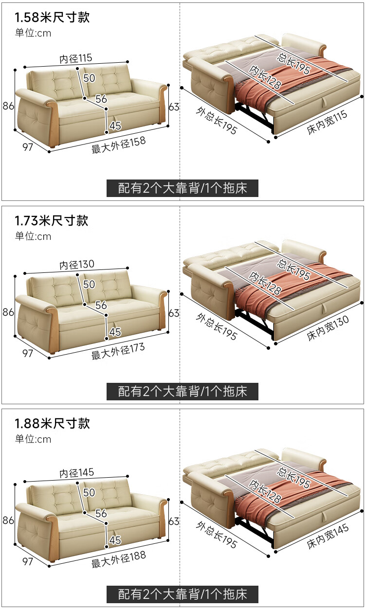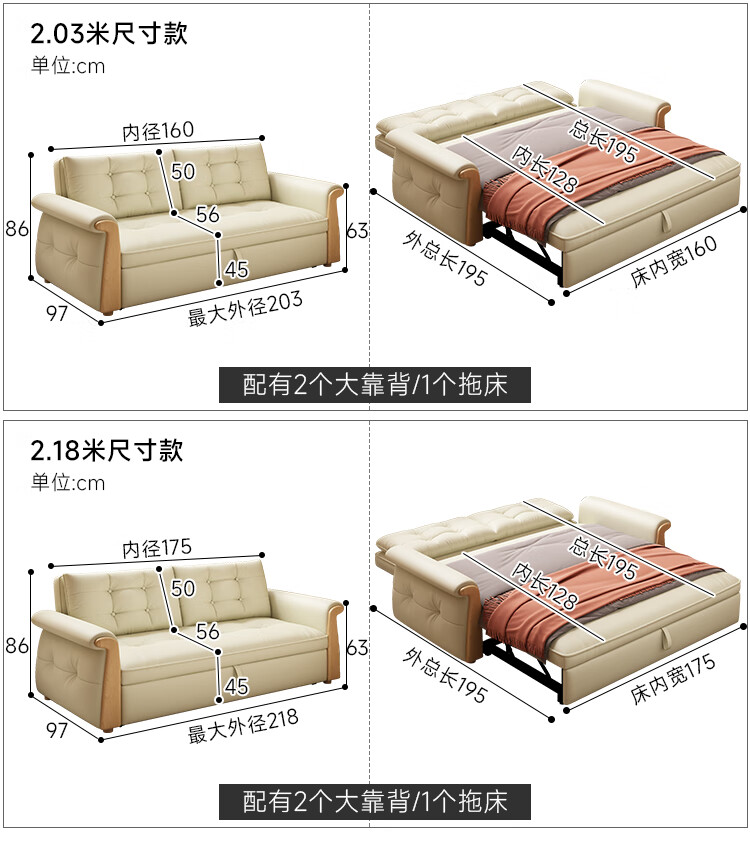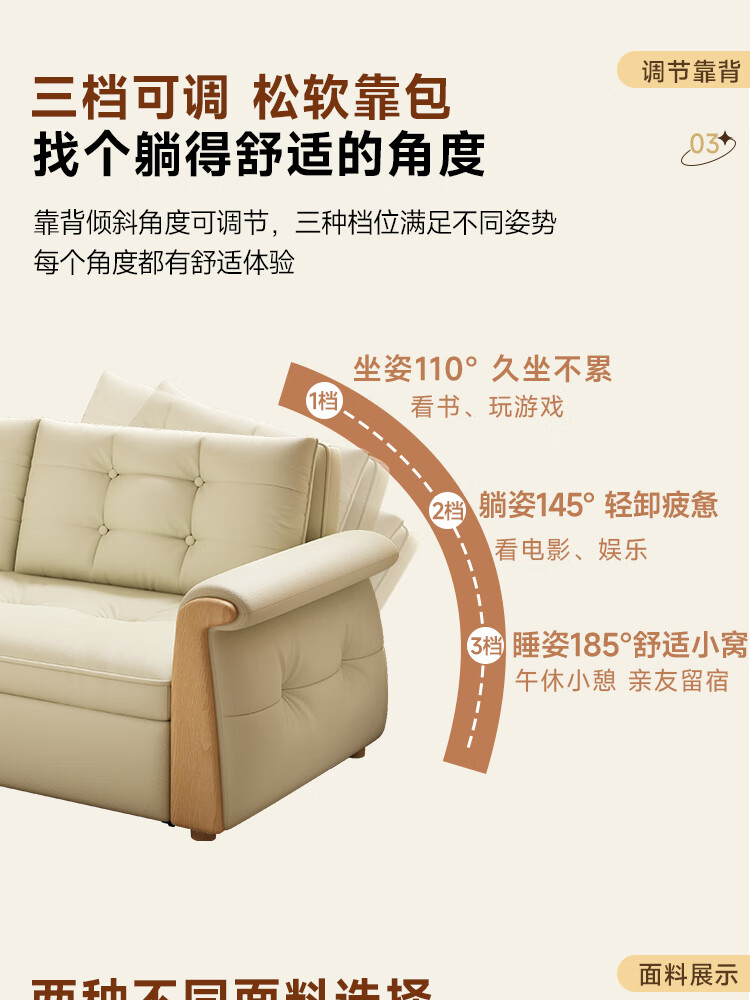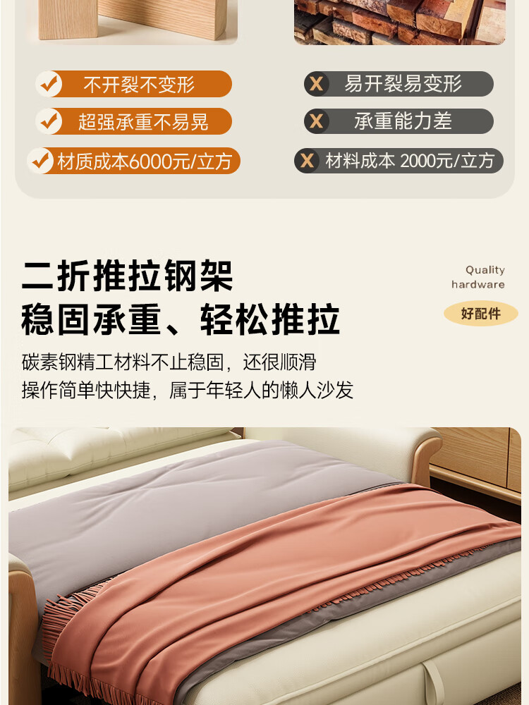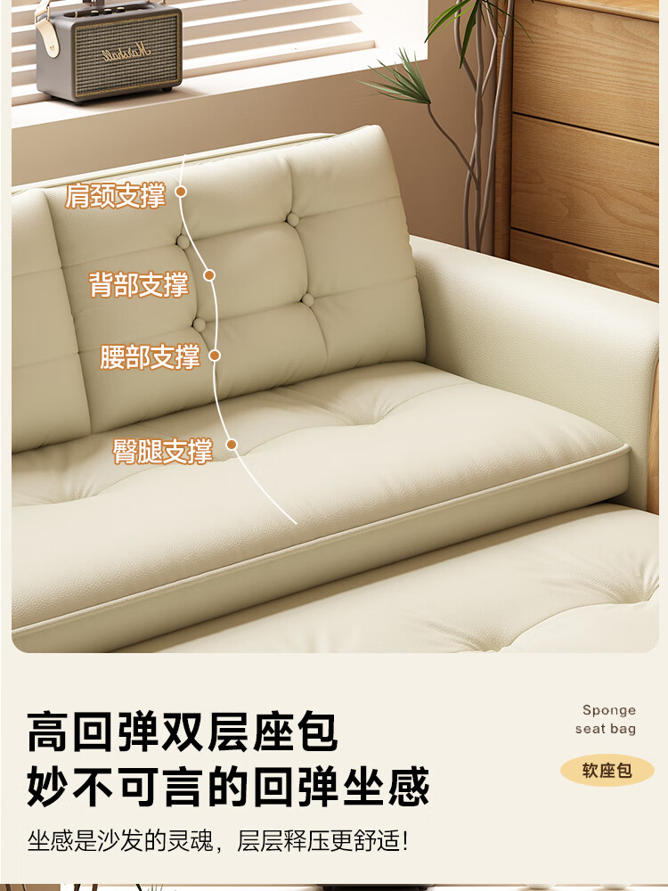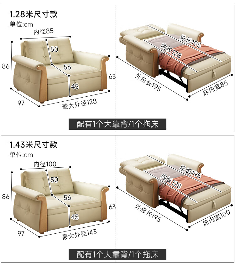 哈森诗丹折叠沙发床一体两用2025新款可睡觉小户型客厅二合一伸缩真皮沙发 外宽:1.28m(三档调节靠背) 45D无粉海绵款(加厚1.5MM猫抓皮)