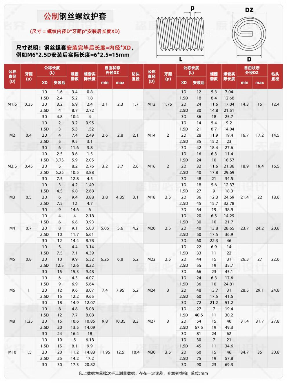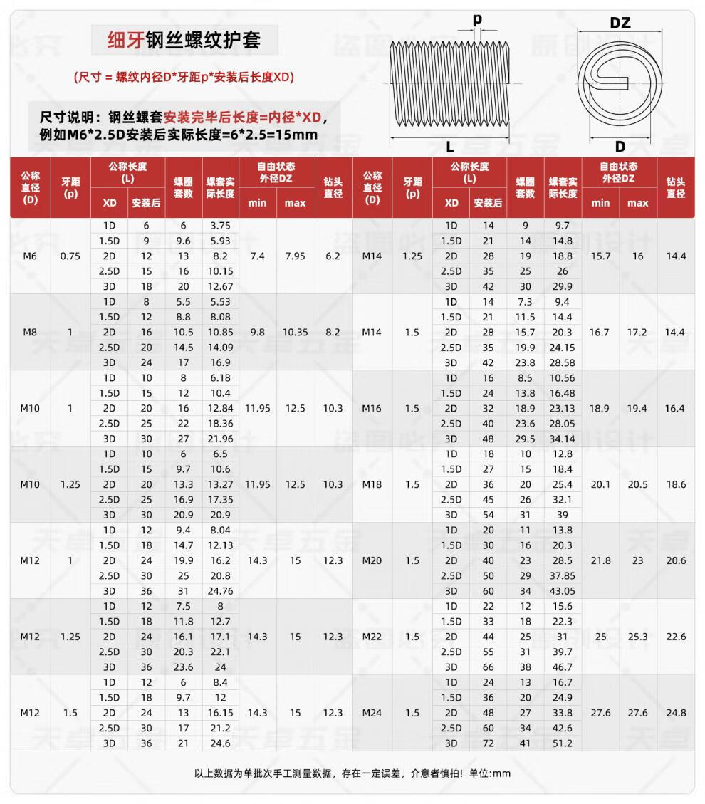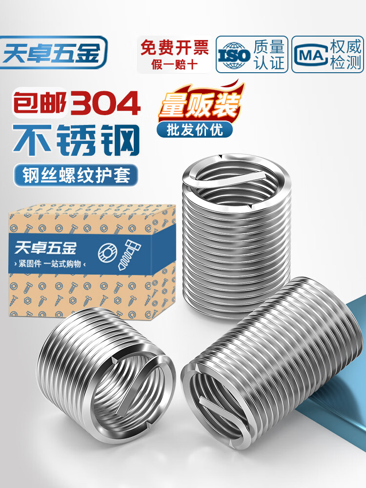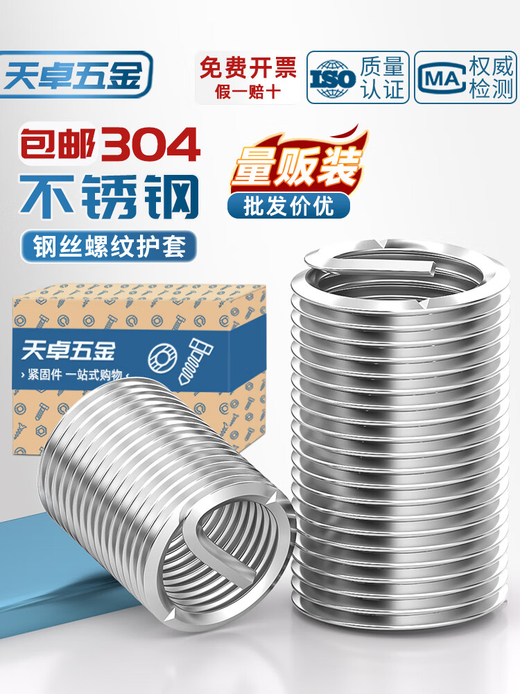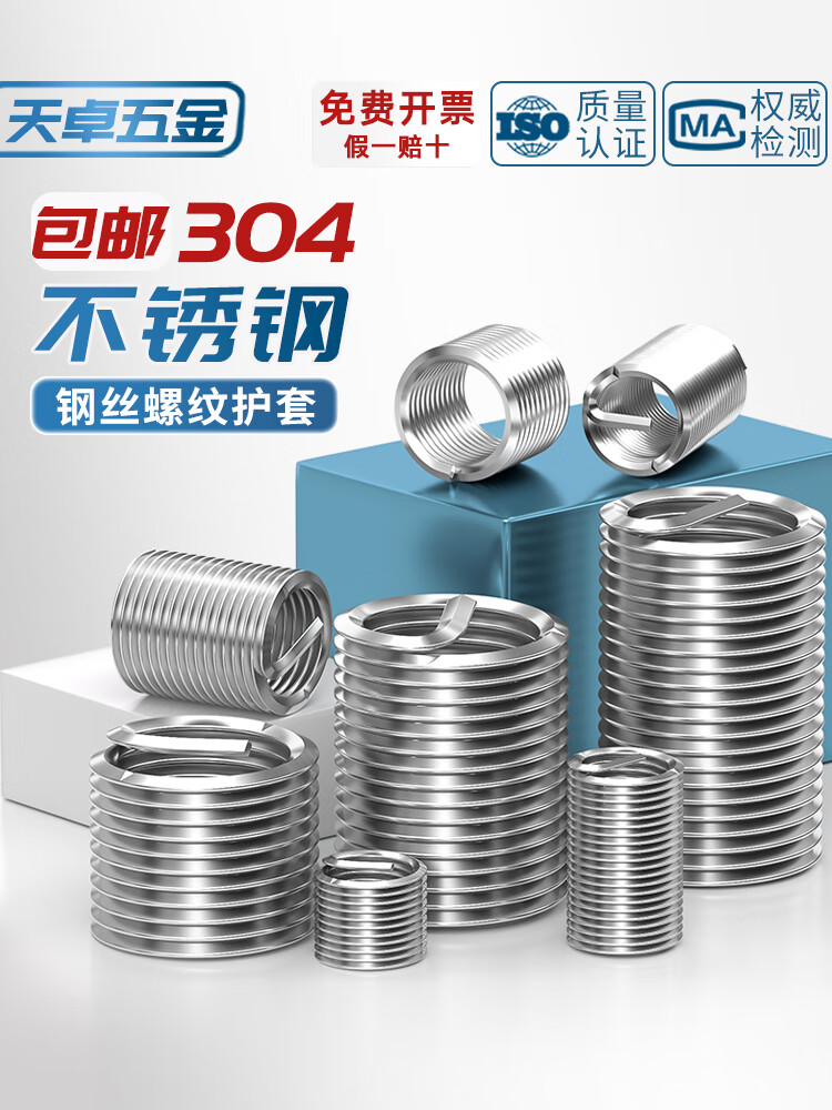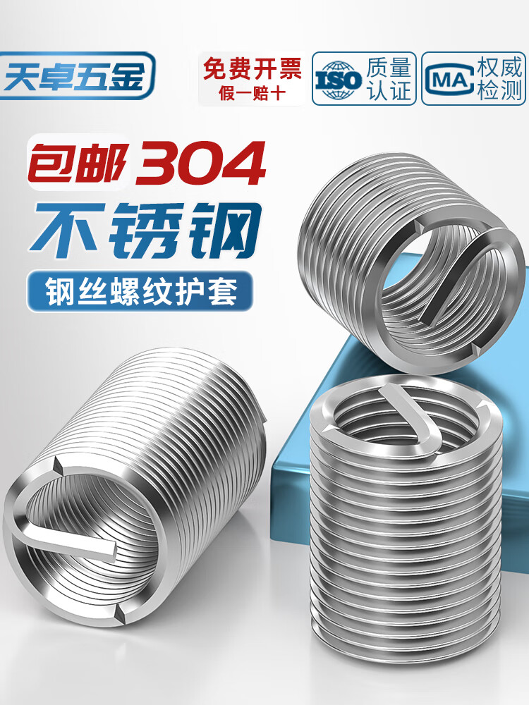 天卓五金304不锈钢钢丝牙套螺套螺纹护套螺丝套美制细牙M2M3M4M5M6M8-M24 M8*1.25*3D-30个