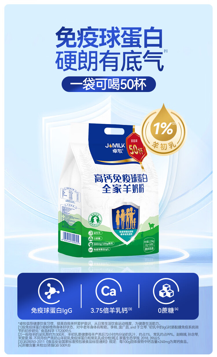 卓牧(JOMILK)羊奶粉免疫球蛋白中老年羊奶粉羊初乳成人羊奶粉老年奶粉 羊初乳羊奶粉400g*3盒