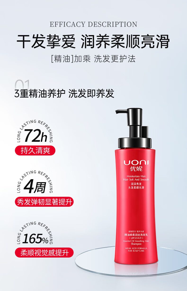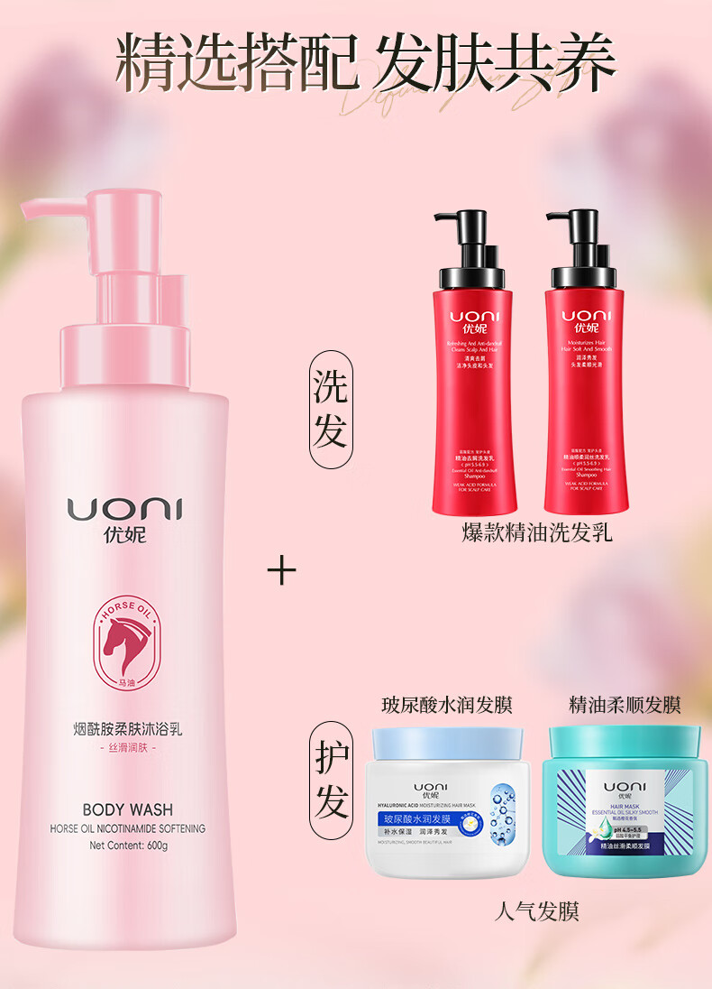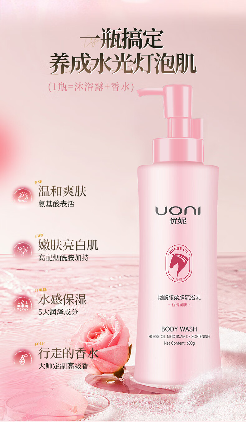 优妮精油洗发水控油清爽去屑洗发露柔顺修护发留香洗头膏男女士大瓶装 烟酰胺柔肤沐浴乳600g